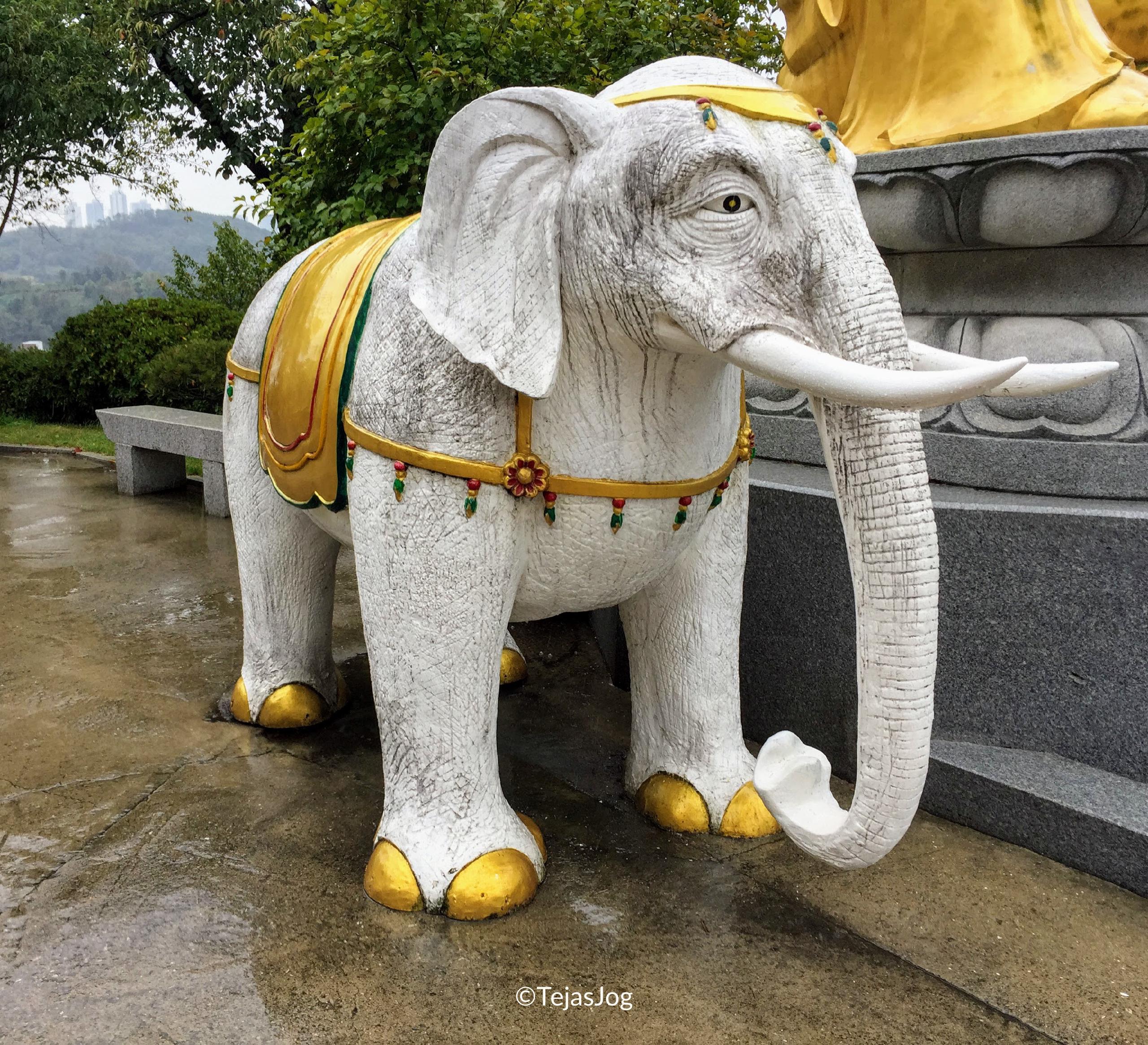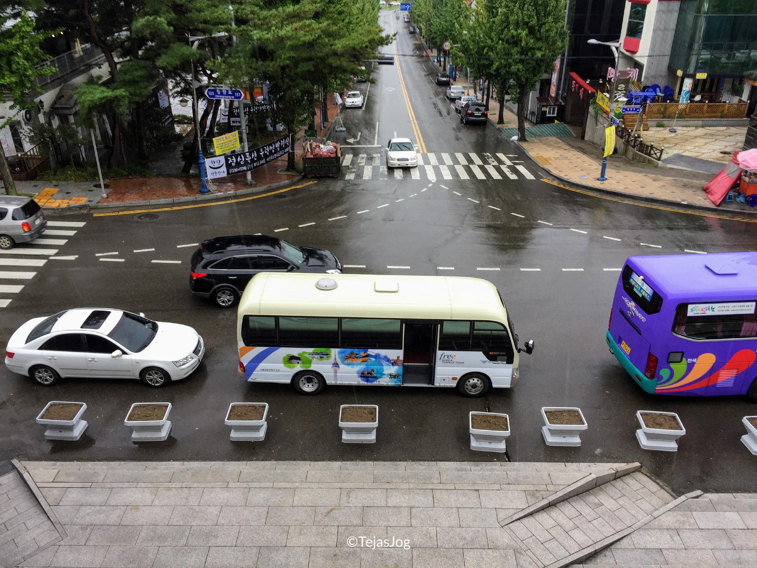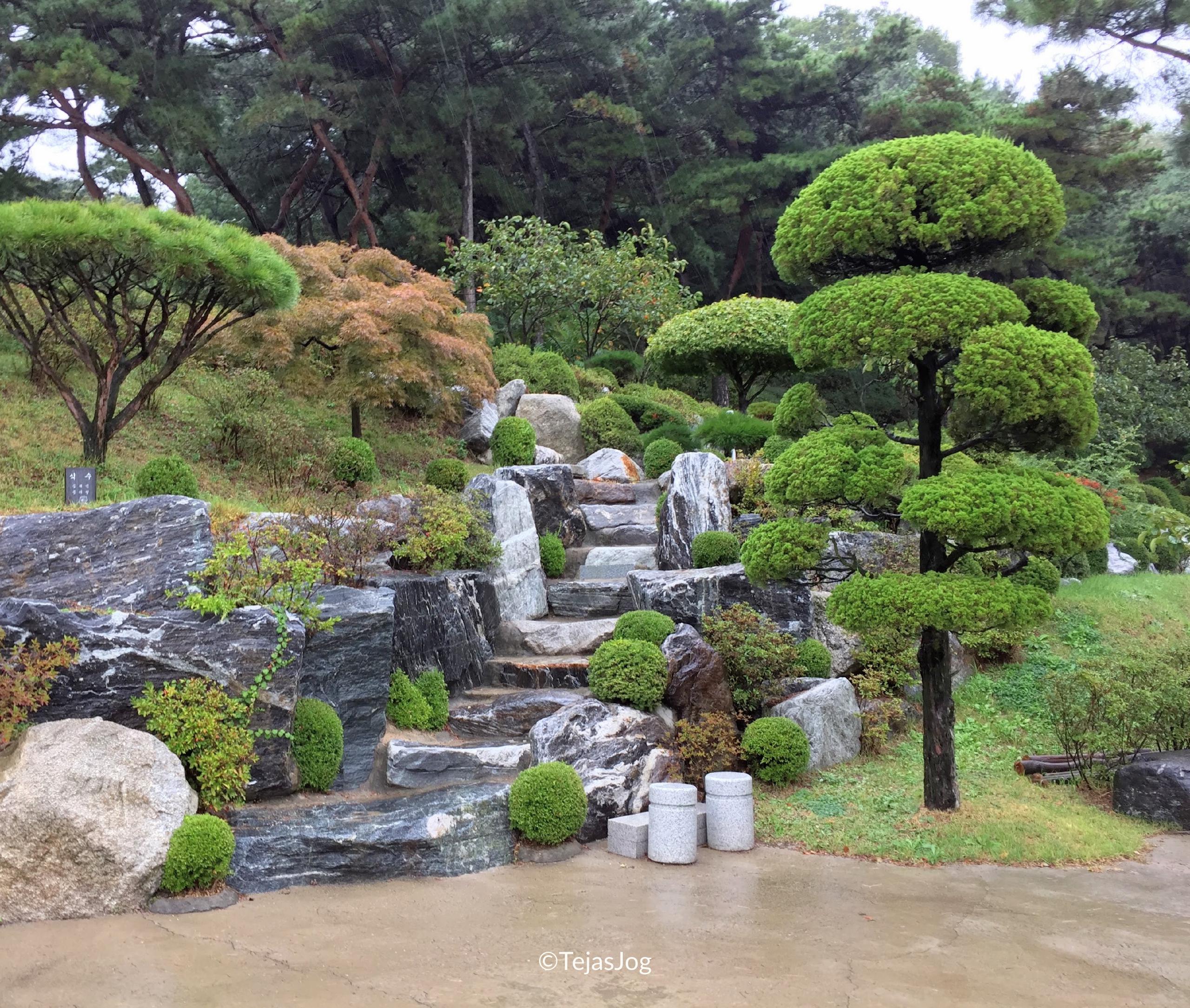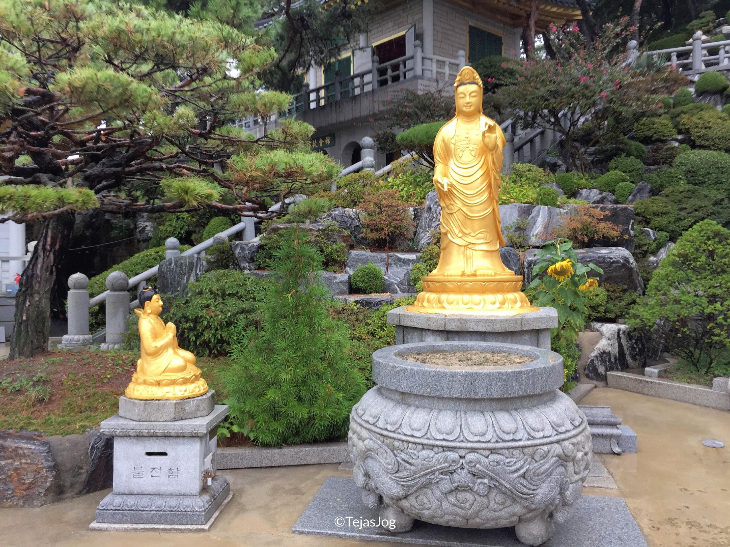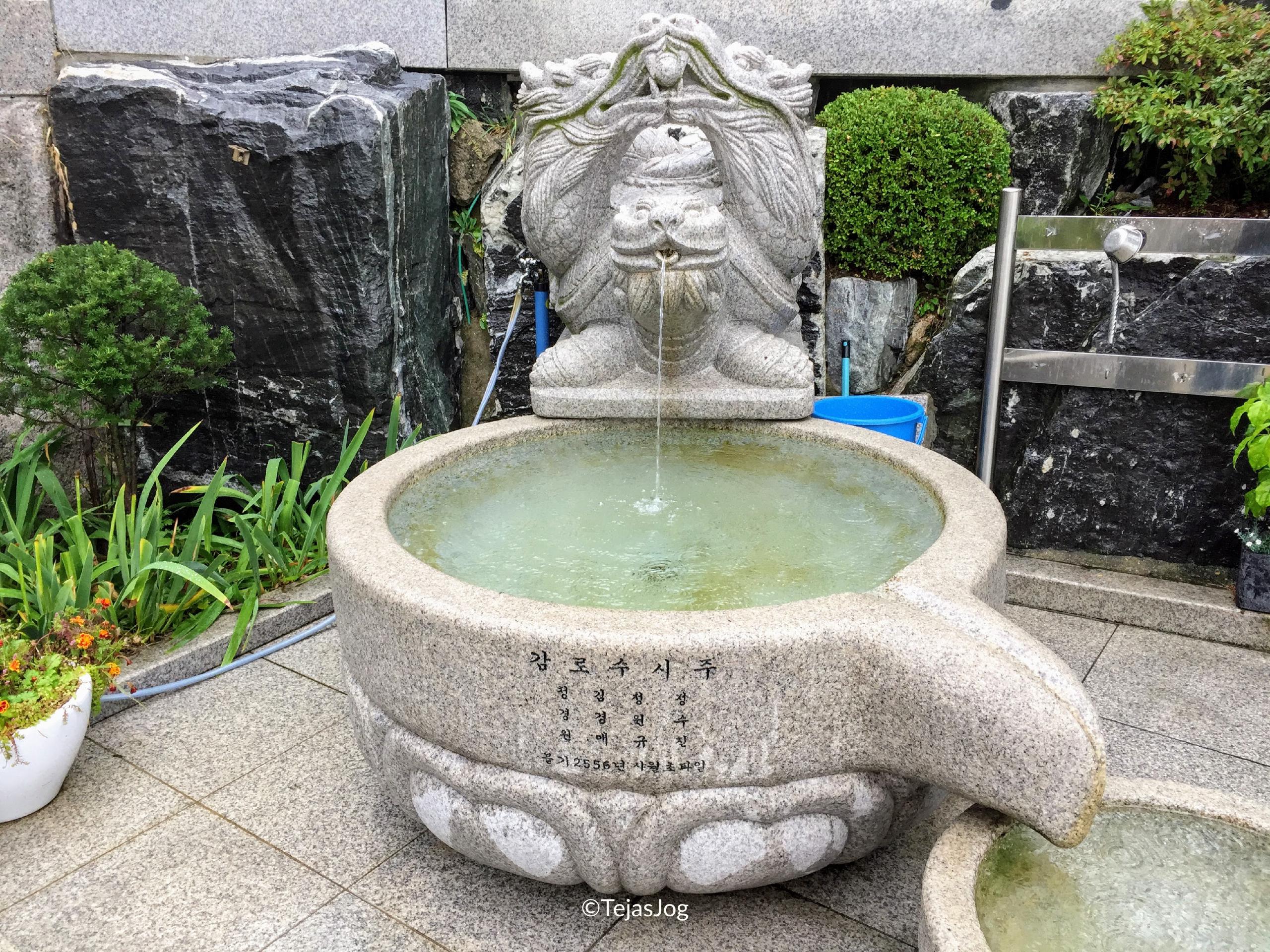 At the time of departure I found out I was the only one on the bus, but the tour still went ahead as scheduled. I met the tour guide and the driver and we were on our way. We drove over the Incheon Bridge, South Korea’s longest spanning cable-stayed bridge. The first stop was the Heungryunsa Temple. The weather was wet, but not cold. The bus also had umbrellas for the passengers to use. So there was no problem in walking around. I spent about an hour roaming around the temple grounds and the landscaped gardens.