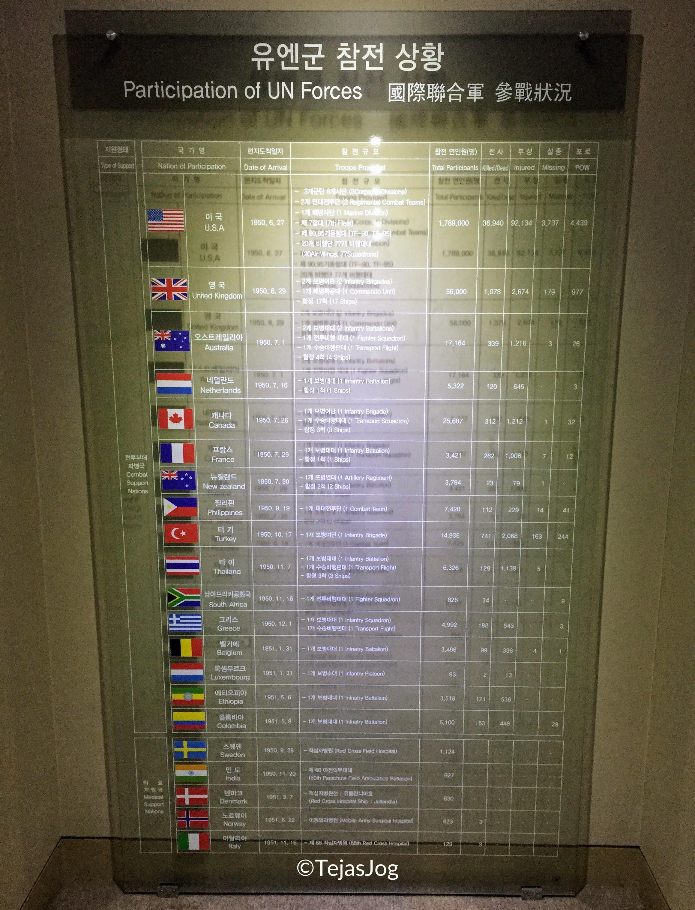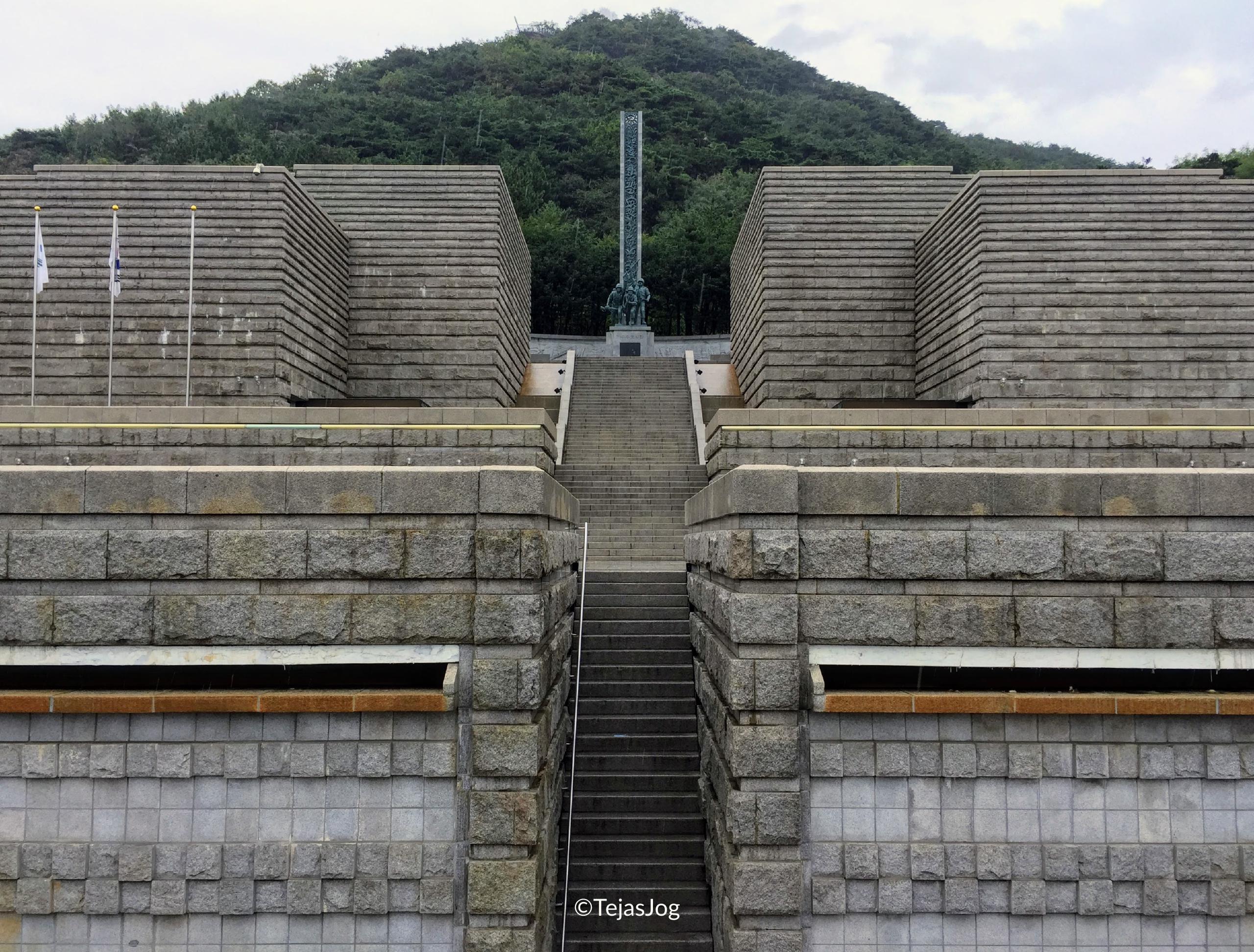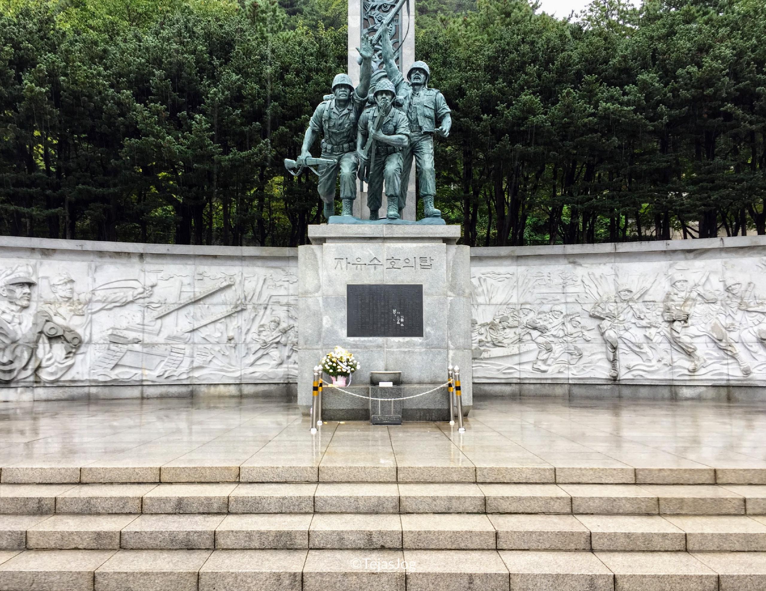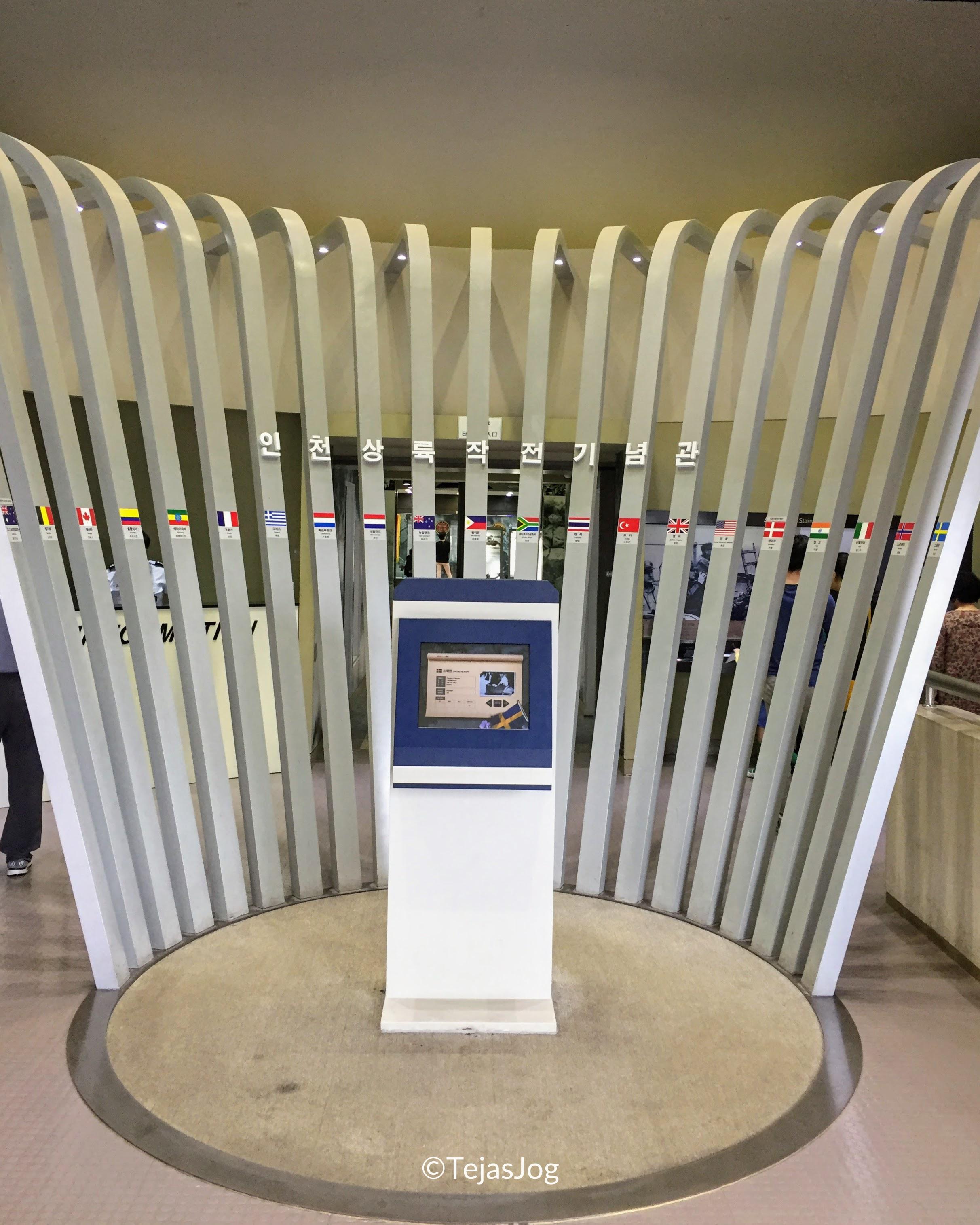 Next was the Memorial Hall for Incheon Landing Operation. Inside the building, there are photos of military armaments used by the South and North Korean military as well as photos showing what life was like back then. Outside, there is an 18 meter-long memorial tower and the national flags of the 16 countries that participated in the Korean War.