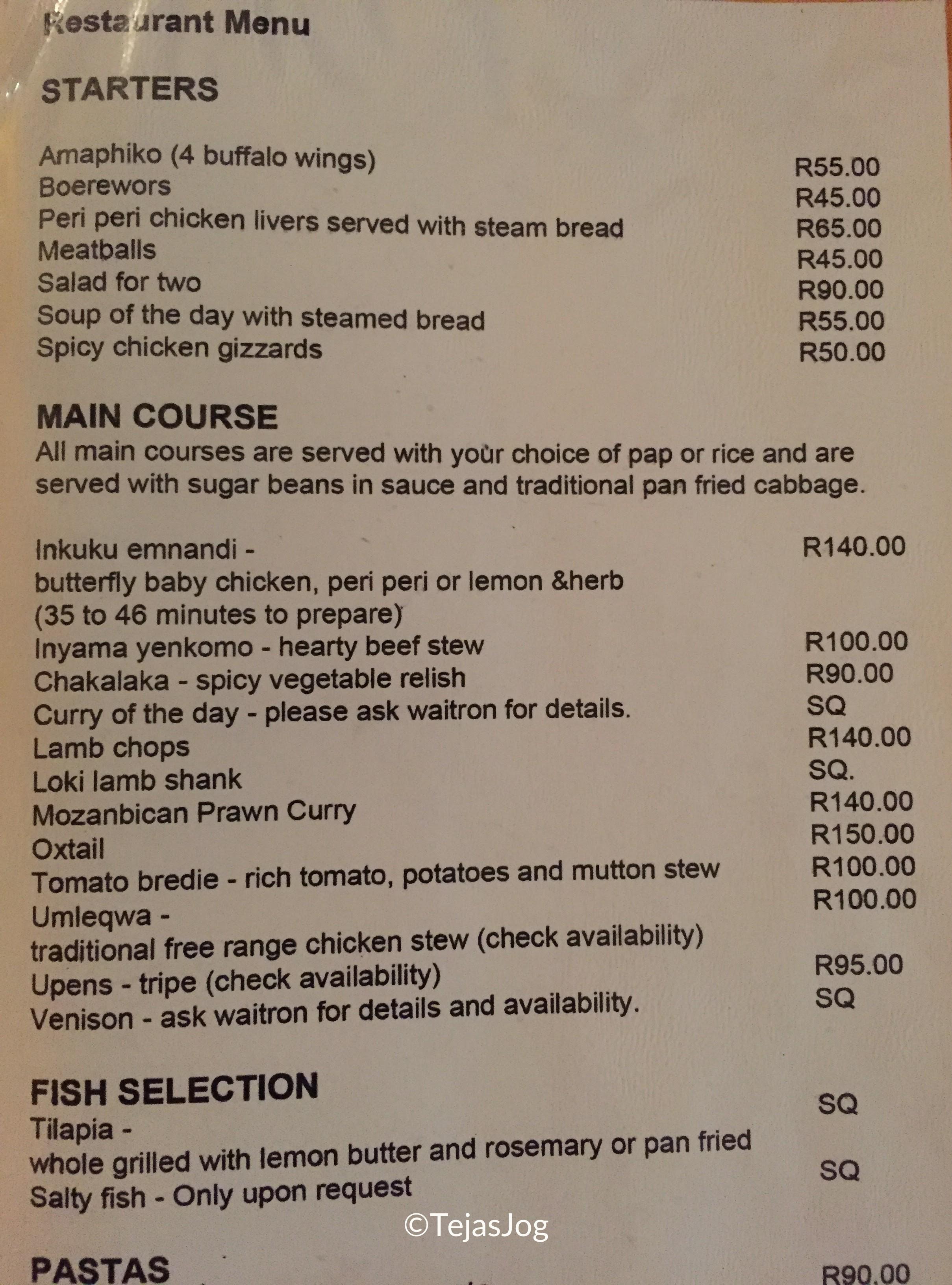 We walked around Green Market Square for a while and then we decided to go to The Diplomatic Bar and Restaurant to have some African food for dinner. The food was nice and tasty and very different from all the other cuisines we had tried so far. We enjoyed it.