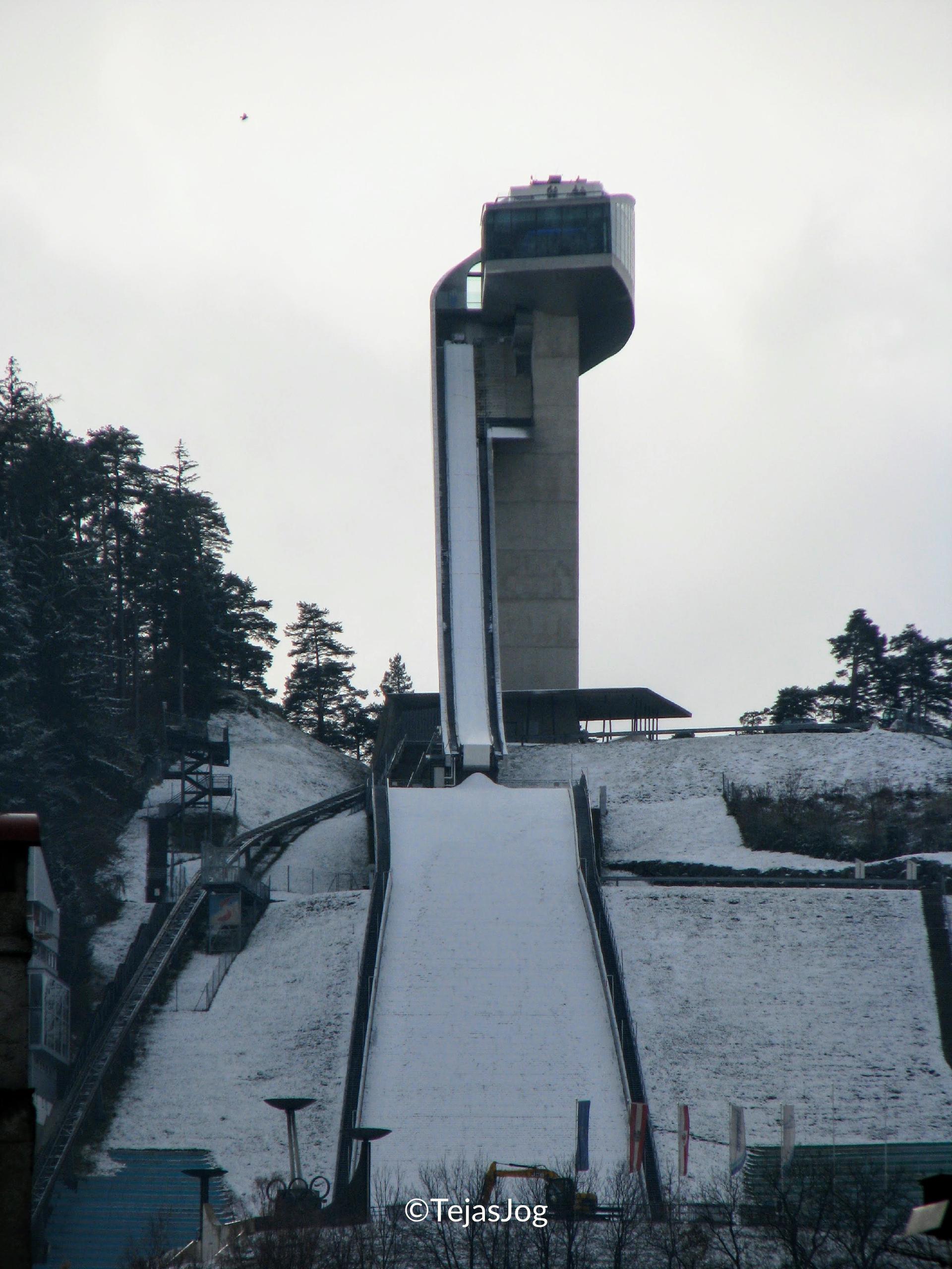 There was no snow on the ground at Innsbruck. I got out of the railway station and headed to my first stop, walking towards the Wilten Basilica and Wilten Abbey. From there I could also see the Bergisel Ski Jump.