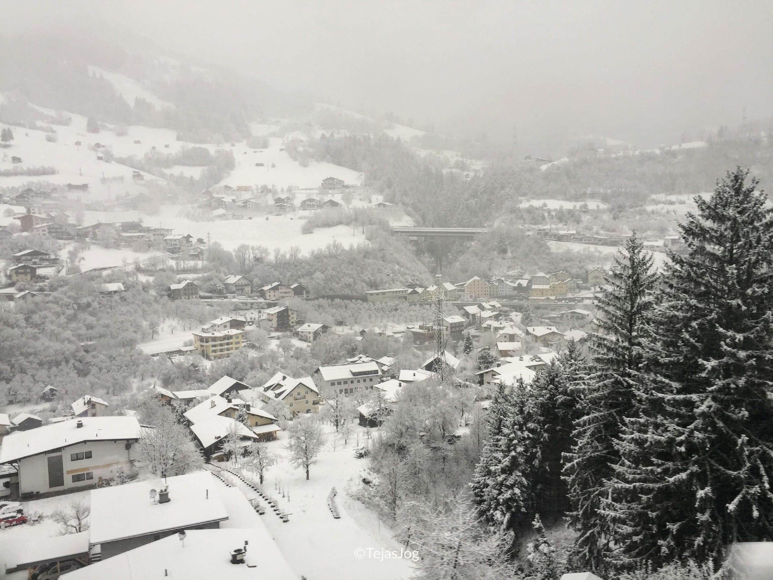 Someone came by to check my ticket and passport as the frozen Swiss countryside rolled by.We crossed Liechtenstein non-stop into Austria and were soon climbing towards the Arlberg Pass. It was snowing outside and I imagined how nice it must have been in warmer weather, but even now it was a winter wonderland. As we descended towards Innsbruck, we had the Inn River for company on our right all the way until Innsbruck.