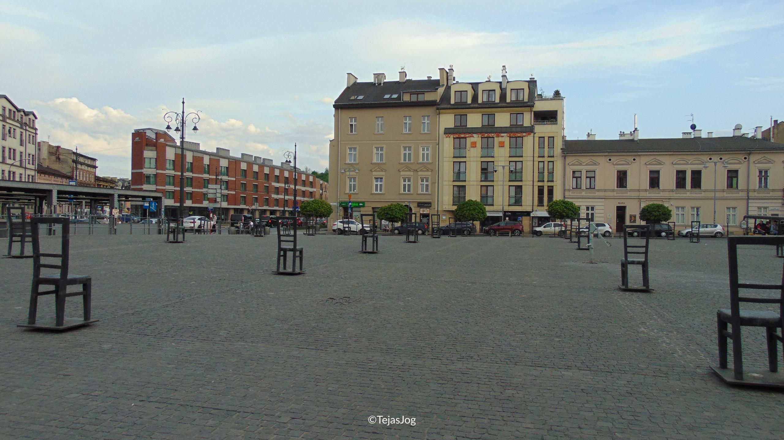 Laid out with 70 large, well-spaced metal chairs meant to symbolise departure as well as subsequent absence, the entire square has essentially been turned into an odd, but iconic memorial to the victims of the Kraków Ghetto.