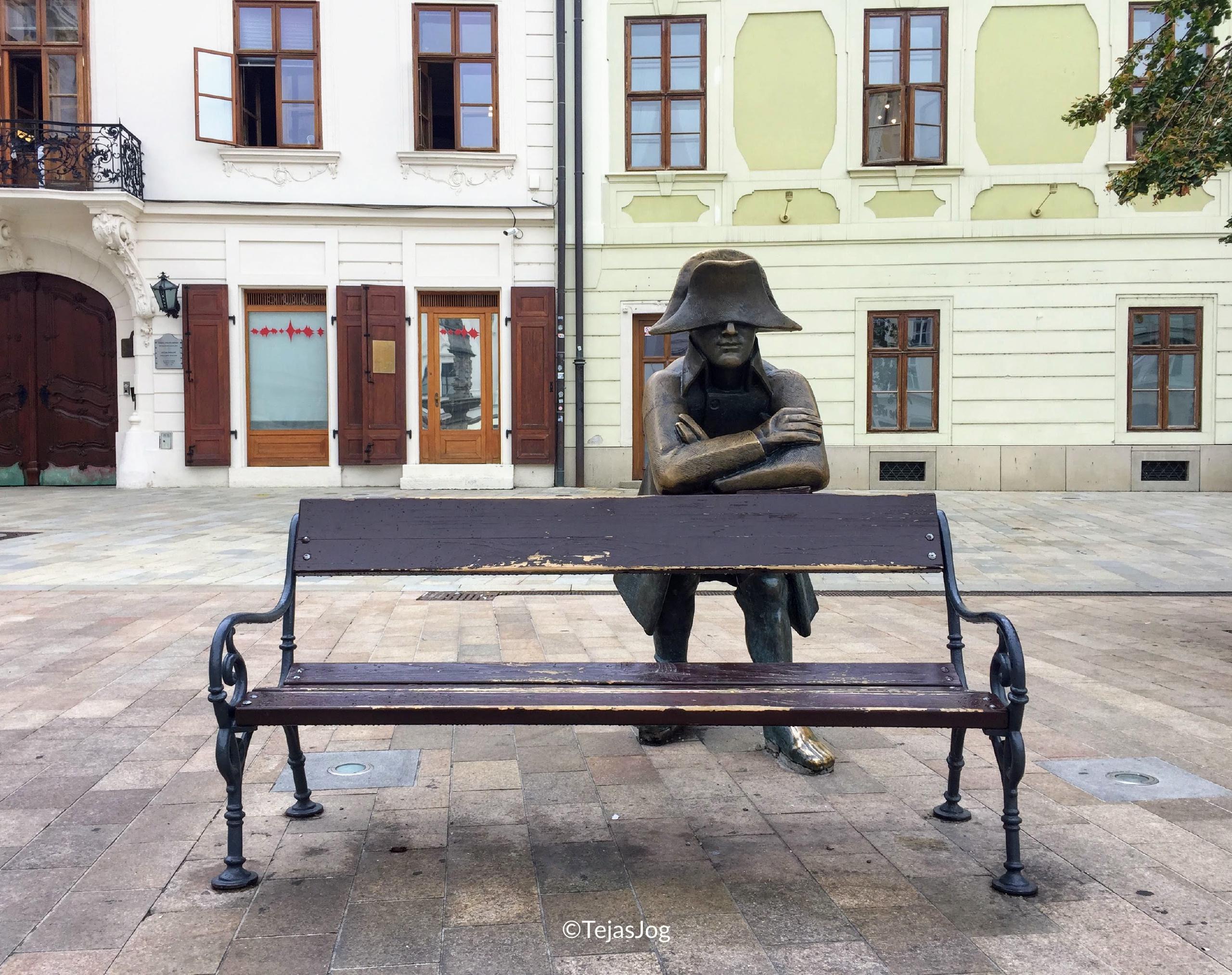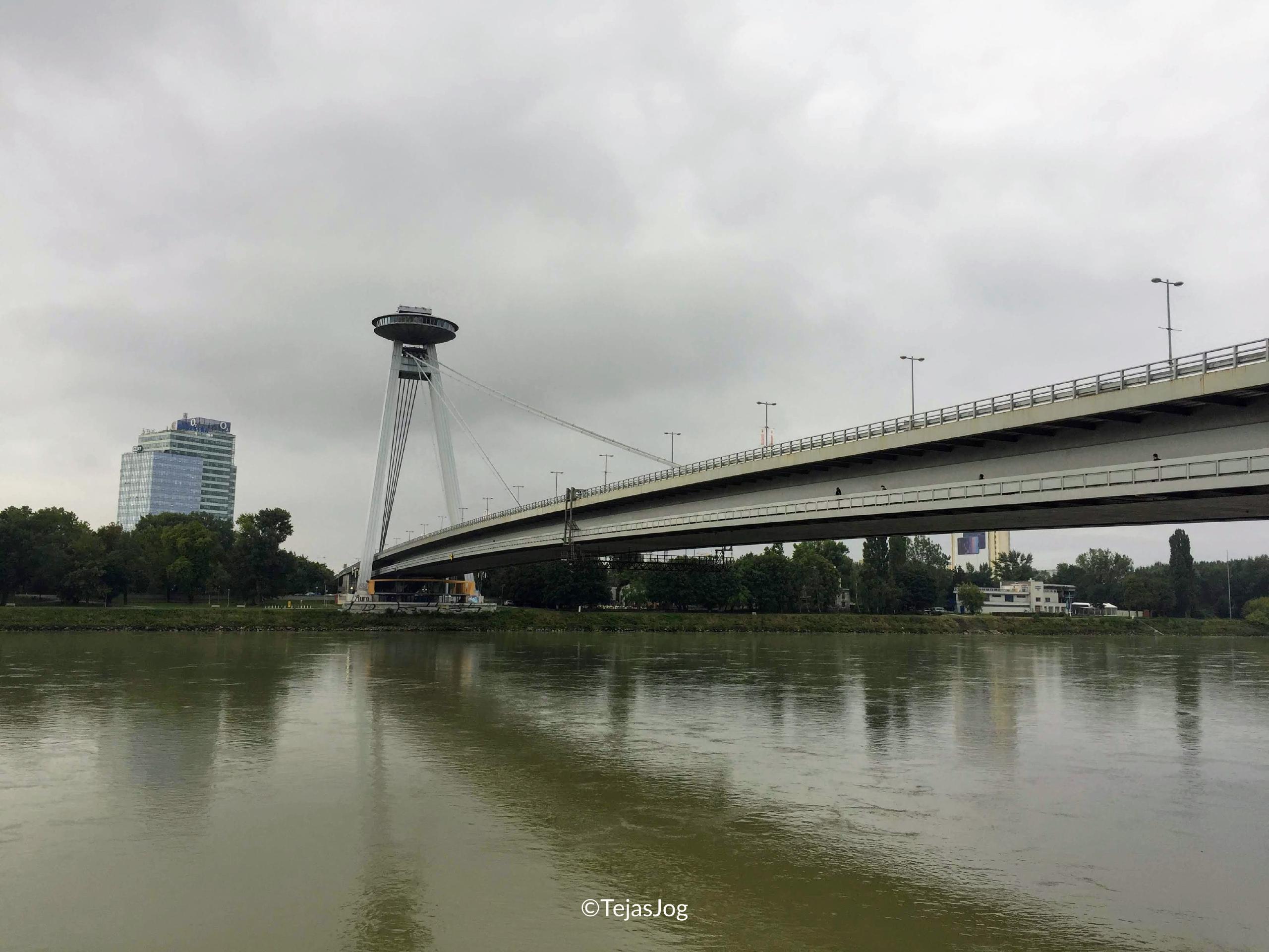 Most of the ride was in Austria and we entered Slovakia shortly before reaching Bratislava. I wanted to head into the old town so I alighted at the Einsteinova bus stop and took the overbridge towards the Slovak National Uprising bridge with the UFO Observation Deck on top. There was a walking/cycling track one level below the main roadway and it was a nice walk across the Danube river with the Bratislava Castle seen across on the hill.