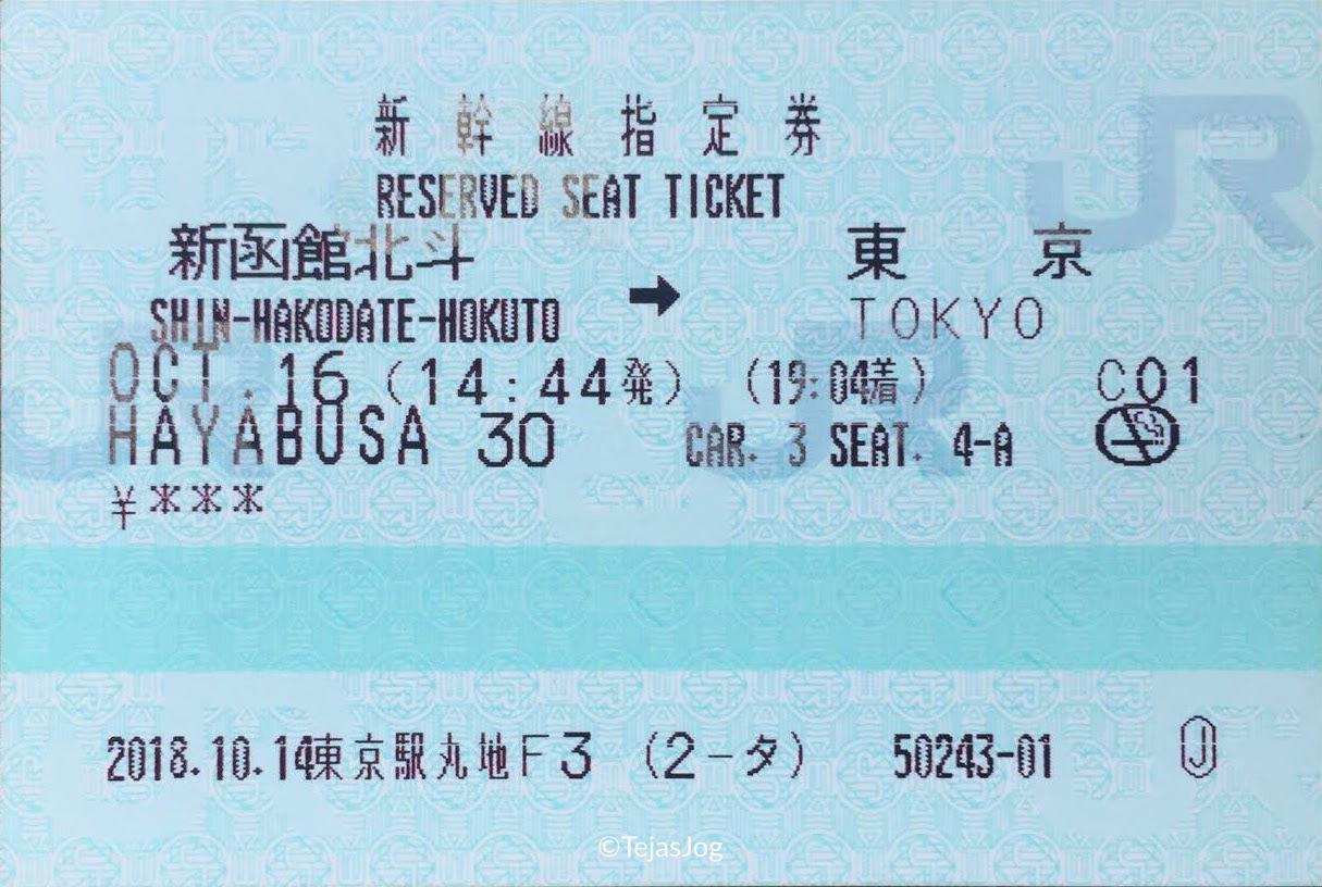 | SHINKANSEN HAYABUSA 34 | 14:44 | SHIN-HAKODATE-HOKUTO | 19:04 | TOKYO | 862.5 | ¥12,100 |