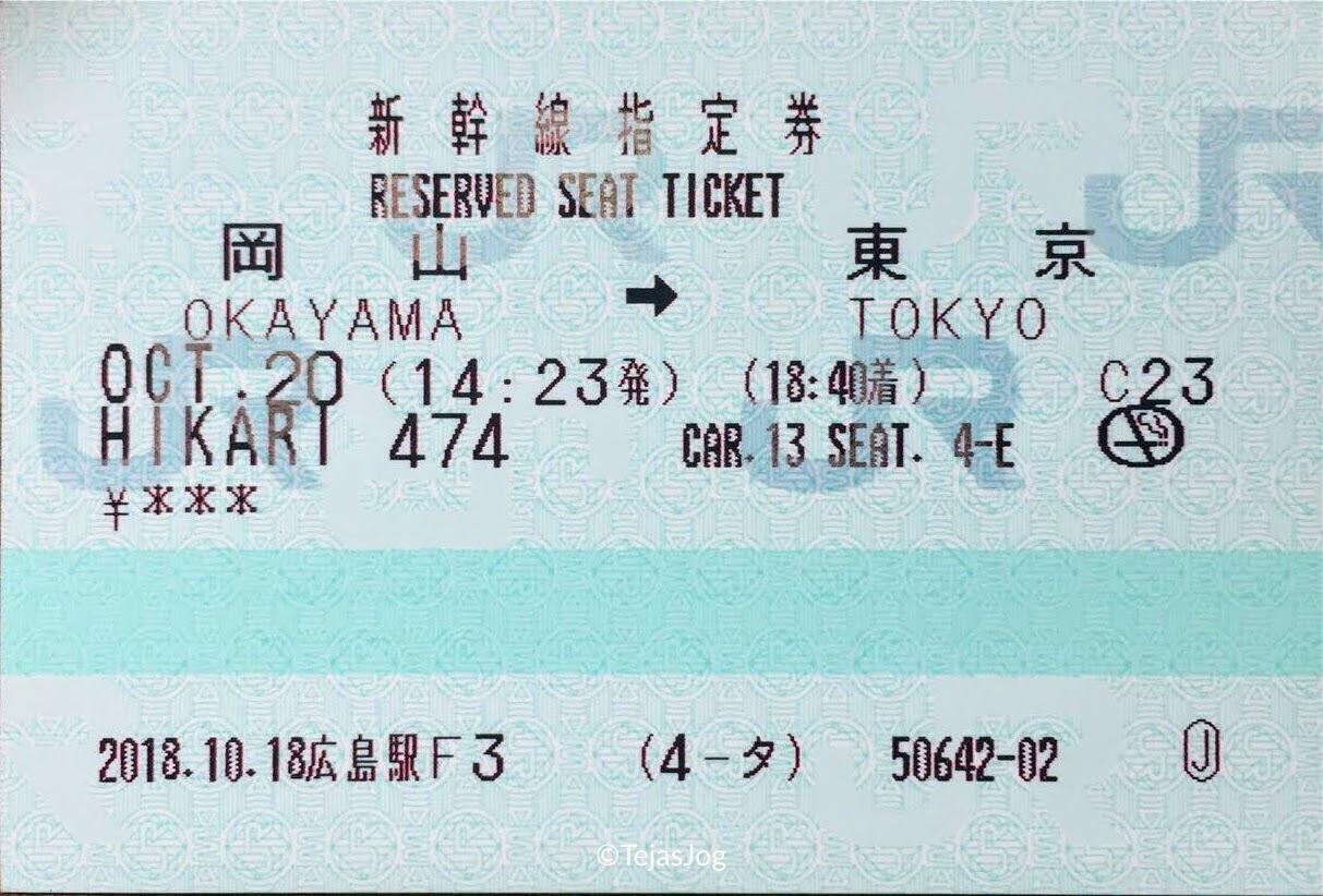 | SHINKANSEN HIKARI 474 | 14:23 | OKAYAMA | 18:40 | TOKYO | 732.9 | ¥10,670 |