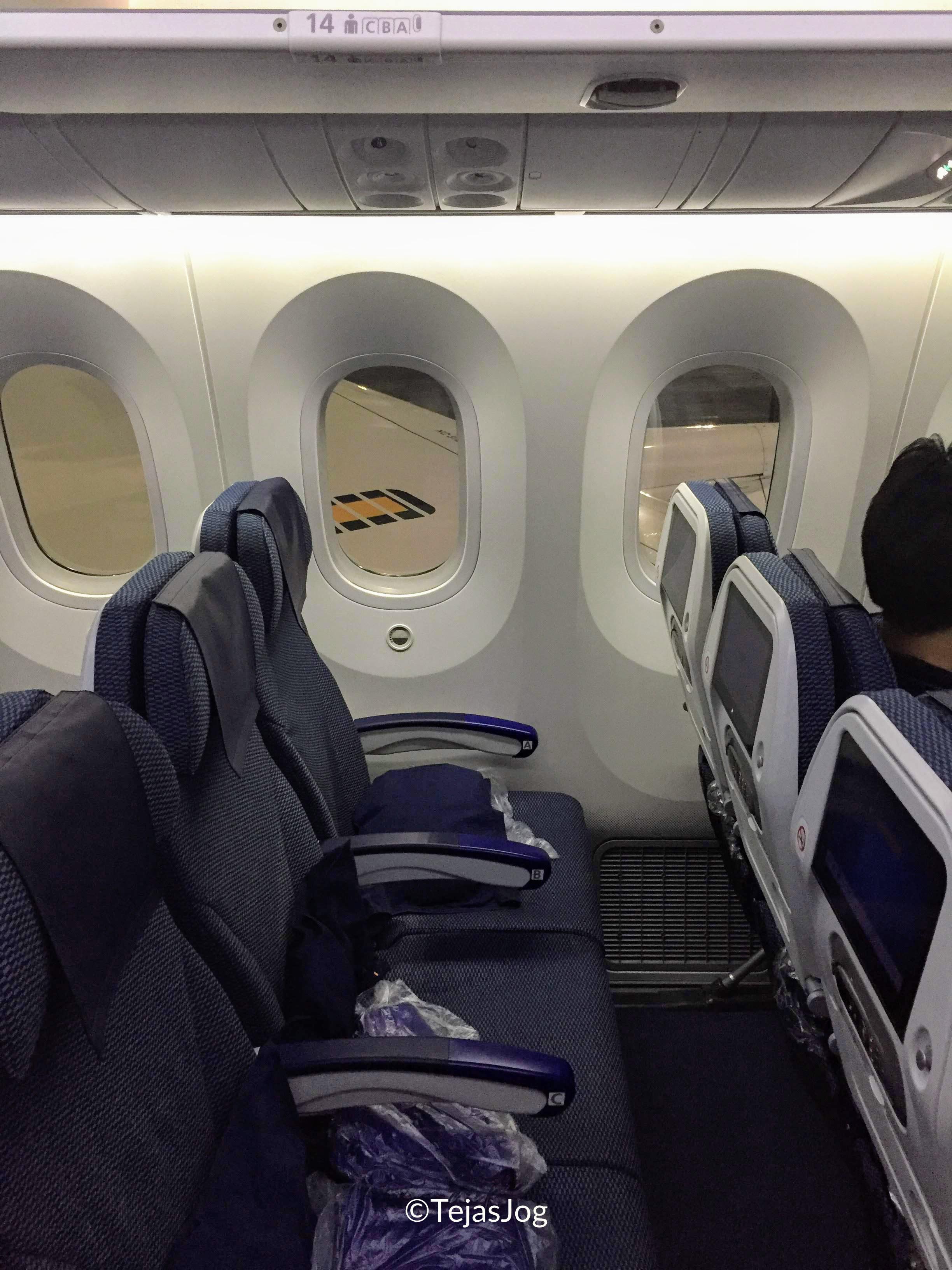 We were able to use the business class check-in counters thanks to my Star Alliance Gold Status on United MileagePlus. I had originally chosen seats 13A and 13C in the first row of economy hoping that the middle seat would remain empty. The check-in agent was very nice and offered to seat us separately in the same row with two empty seats next to each of us. Of course we accepted and were assigned 14A (with 14B and 14C unoccupied) and 14D (with 14E and 14F unoccupied). We also got invitations to visit the GVK Lounge before departure. The lounge was nice and had a very good selection of food and drink. We had a quick dinner before heading to the gate for boarding.