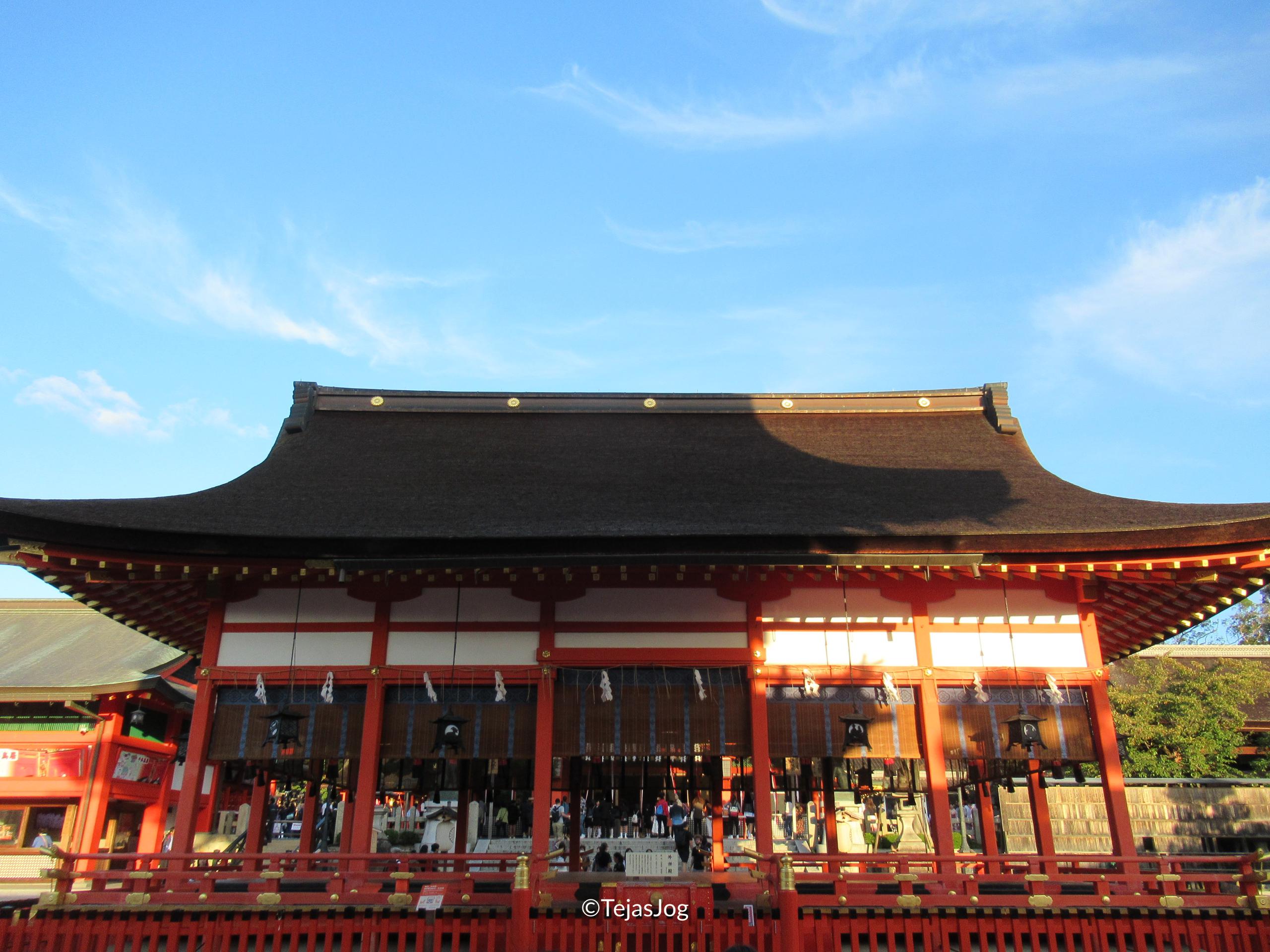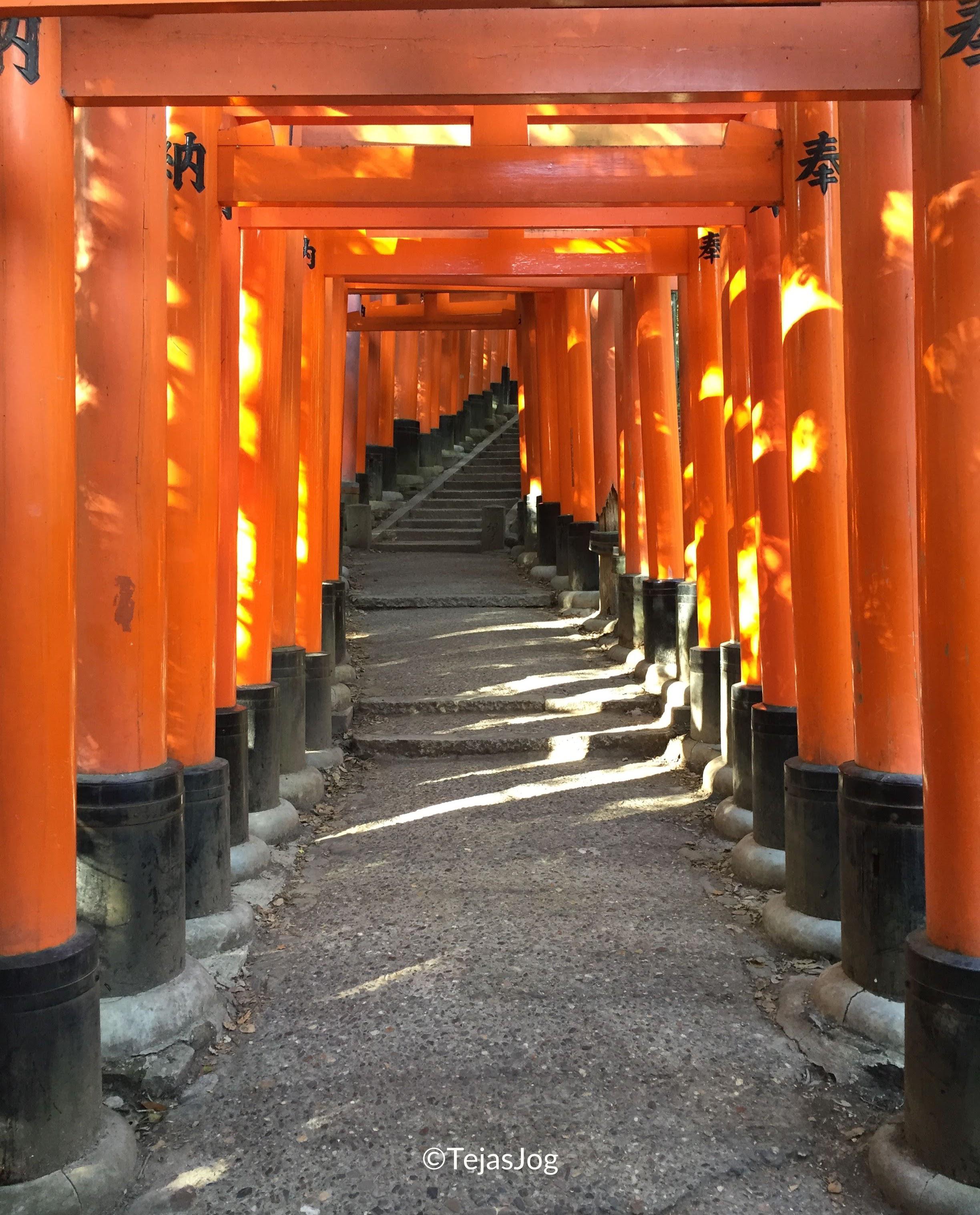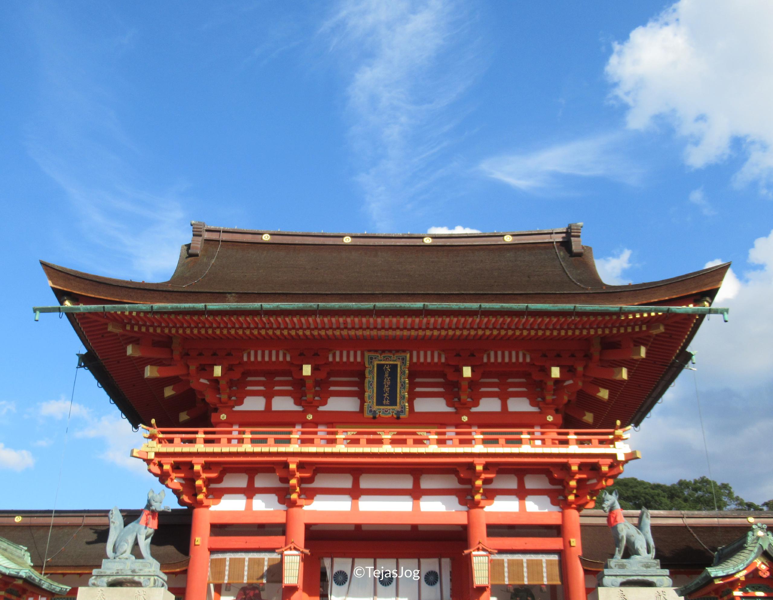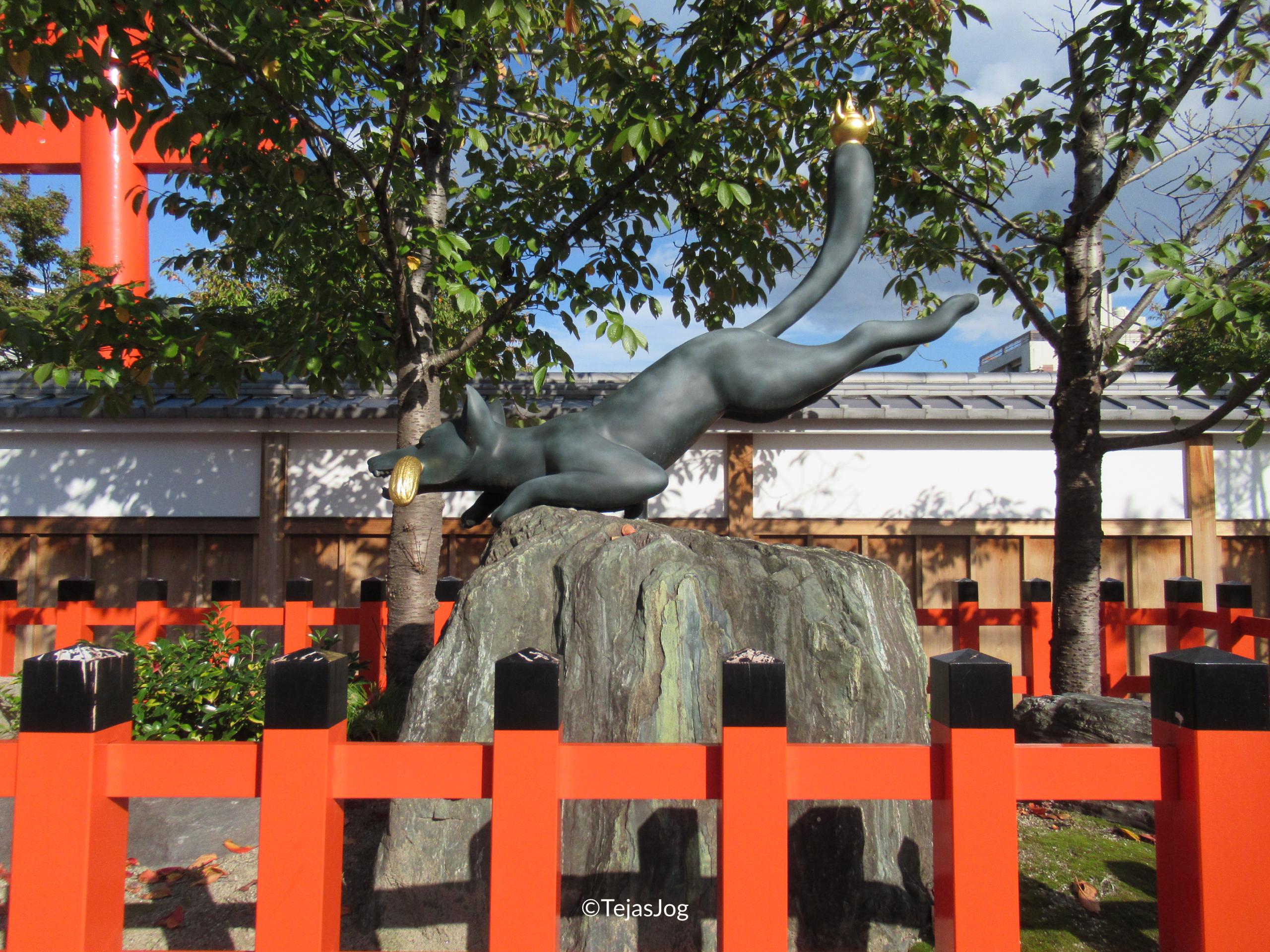 The plan for the afternoon was to visit the Fushimi Inari Shrine. We used our Japan Rail Pass 🔗 and took the train on the Nara Line to Inari Station. It was a quick five minute ride and the Fushimi Inari Shrine was a couple of minutes by walk from the station. The Shinto shrine is dedicated to Inari, the god of rice. Foxes are thought to be Inari’s messengers and there were many fox statues across the shrine grounds.