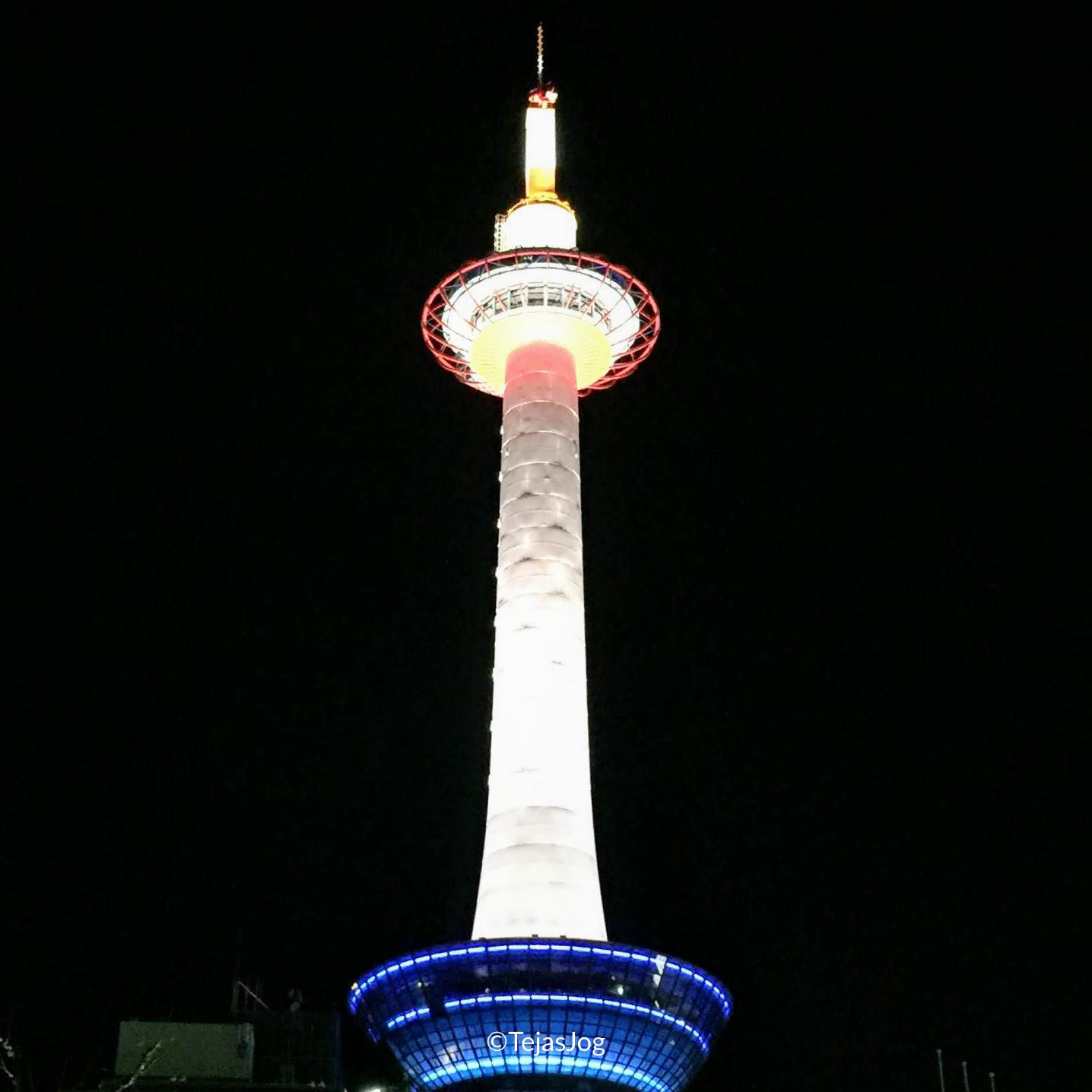 Opposite the Kyoto Station we saw the the Kyoto Tower, the tallest structure in Kyoto at 131m and standing on top a building. It was beautifully lit up at night. It had been a long and tiring day and so we headed back to Piece Hostel Kyoto and retired for the night.