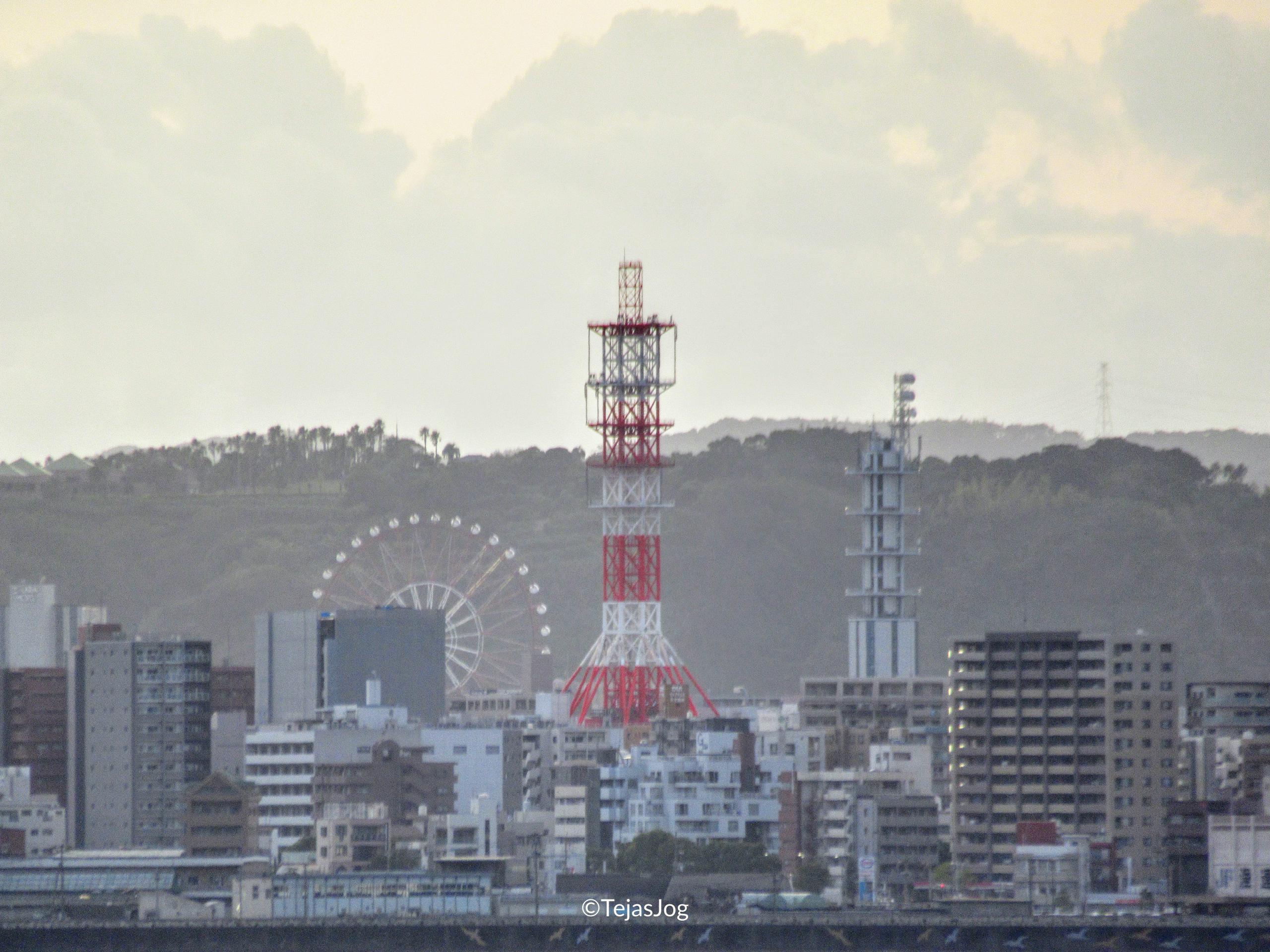 The ferry ride back also gave us splendid views of Sakurajima in the evening lights. We spent most of the time on the upper deck and saw a pod of dolphins in Kinko Bay. As we approached Kagoshima, we could see the Amuran Ferris Wheel near the Kagoshima-Chūō Station in the distance.