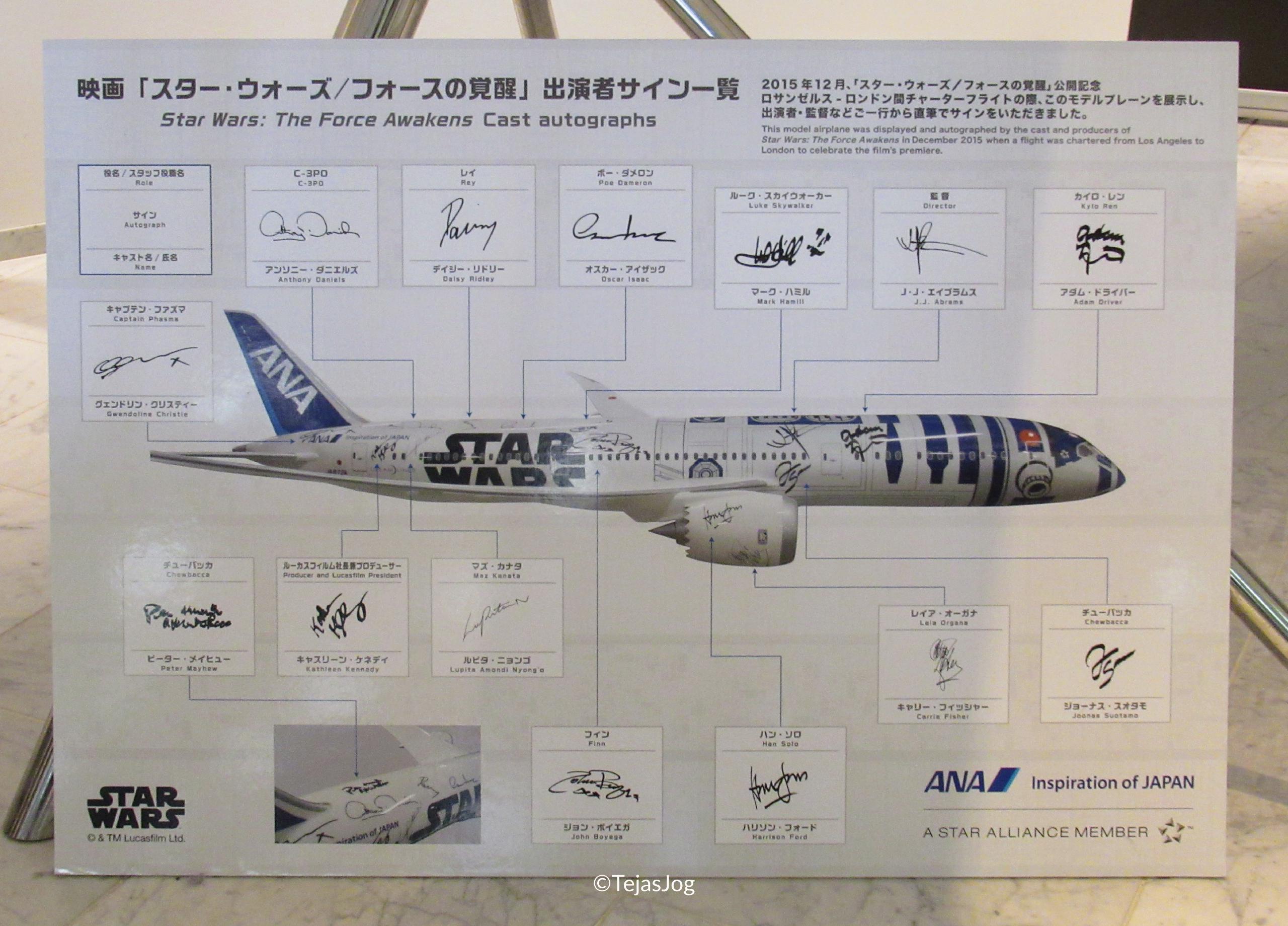 Right after the entrance was a large model of ANA’s “Star Wars R2-D2” Boeing 787-8. It was autographed by all the cast members from the Star Wars: The Force Awakens movie.