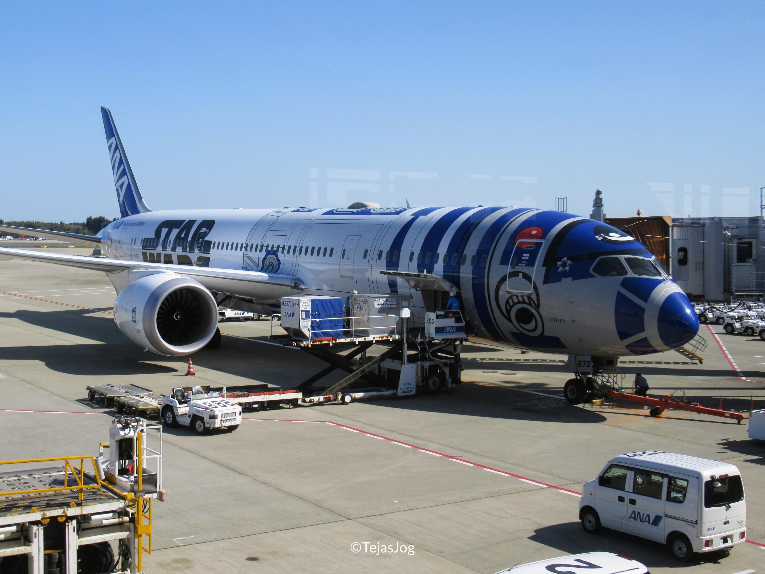 We spent the last of the JP¥ we had at one of the stores at the airport. Walking around the terminal it was great to see the actual ANA “Star Wars R2-D2” Boeing 787-8 jet parked at one of the gates, having just seen the model in the ANA Lounge. Little did I know that this same aircraft would be our ride back to Mumbai in some time and make this journey evening more memorable.