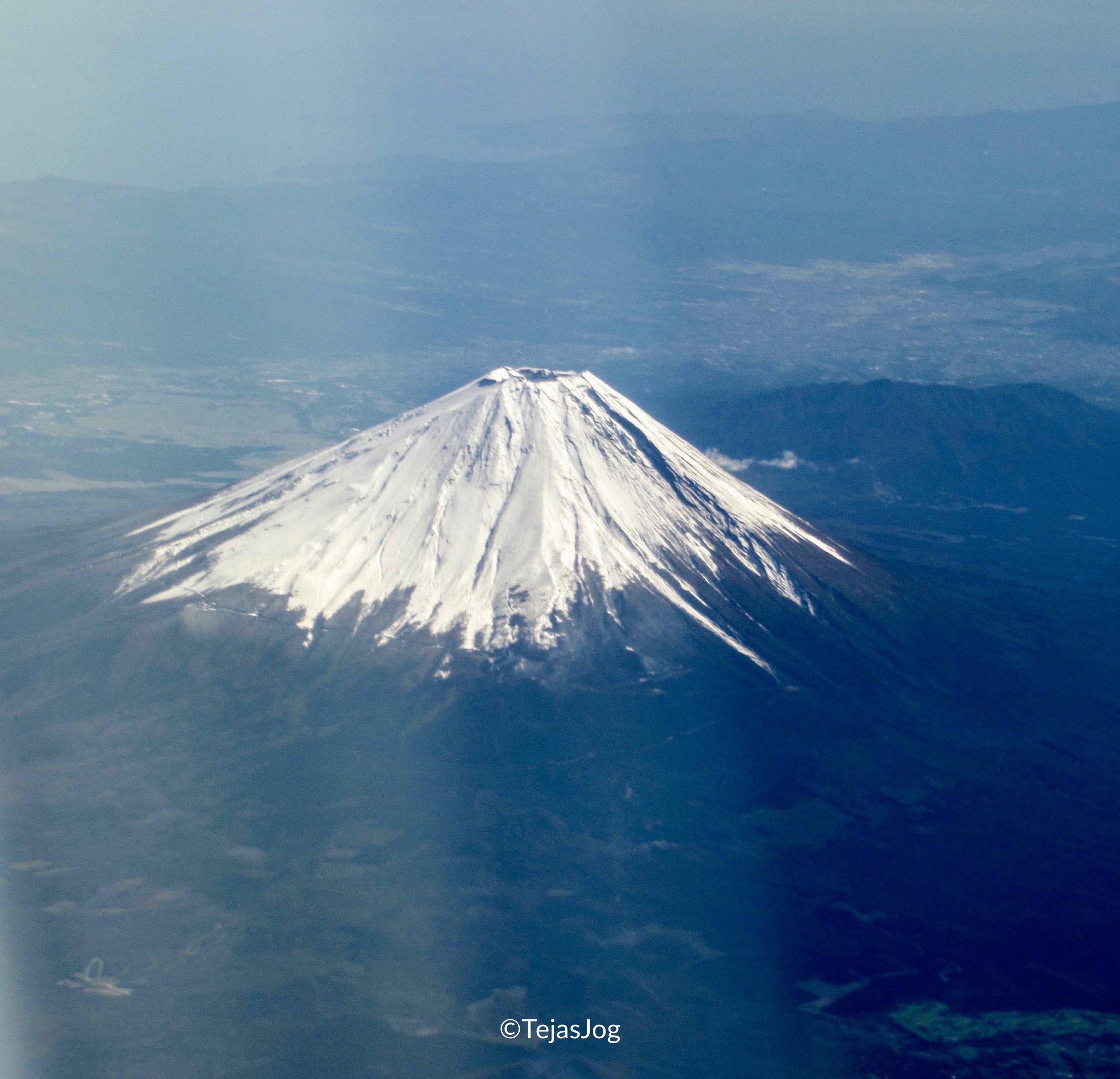 We got a good view of Tokyo Narita Airport after took-off as the plane climbed and turned. A few minutes later the captain made and announcement that we were passing by Mt. Fuji and passengers on the left of the aircraft would be able to see it from their windows. We were, of course, stuck in the middle and window seat on the right side of the plane. We requested the passenger in the aisle seat that we wanted to get out and she was nice enough to oblige quickly. We scrambled to get to the middle galley from where we could finally get a nice view of Mt. Fuji from the windows. In all likelihood, it was a better view than what we would have got from the Shinkansen. This was the one thing which we had really missed out on seeing and now we were able to complete our Japan trip without any regrets.
