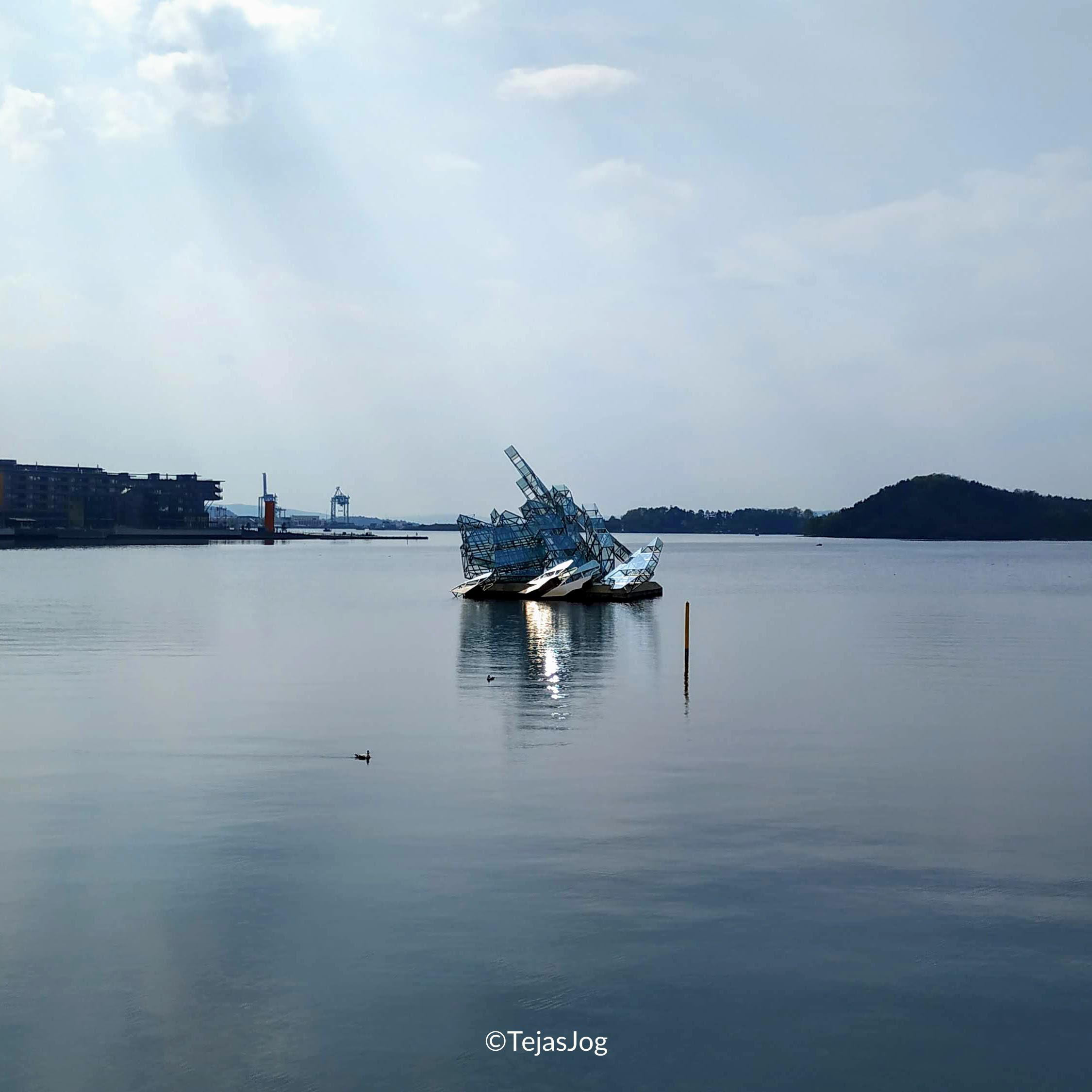 We walked by the Christian Frederiks plass to our first stop the Oslo Opera House. We were given some time there to explore around and walk to the roof. There were great views of the floating sculpture She Lies.