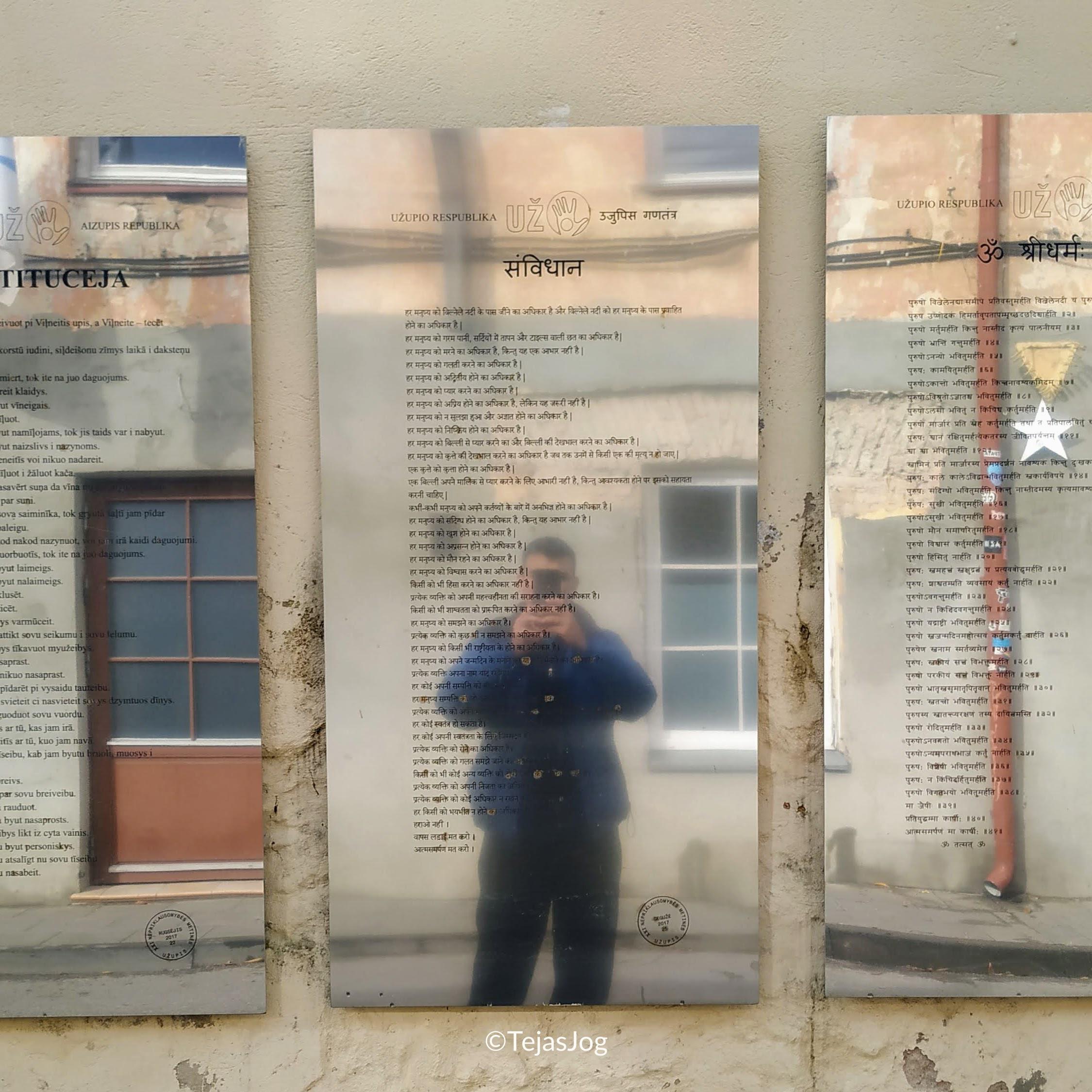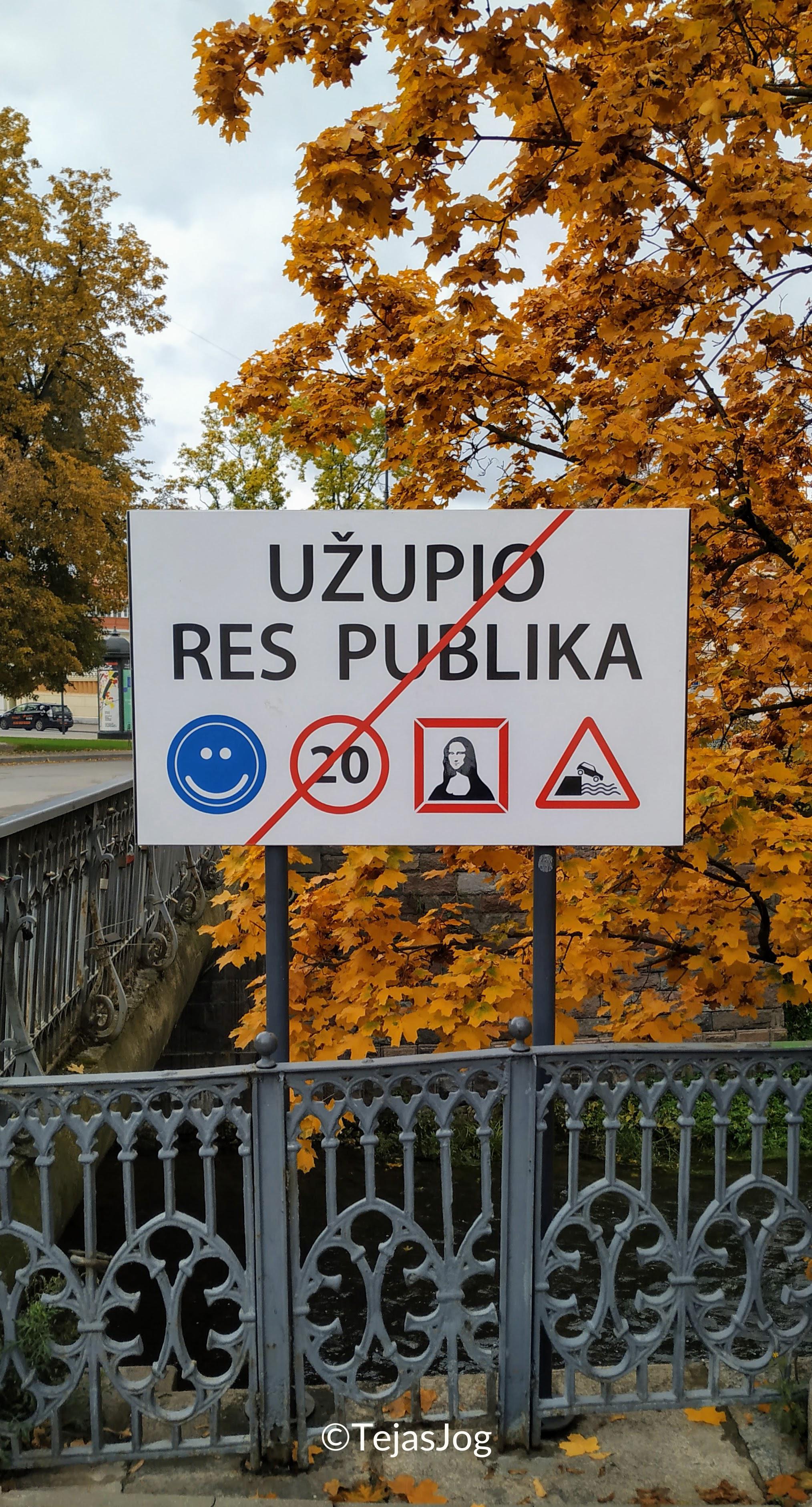 Our next stop was across the Vilnia river, the self-declared Republic of Uลพupis with its own constitution and flag and all.