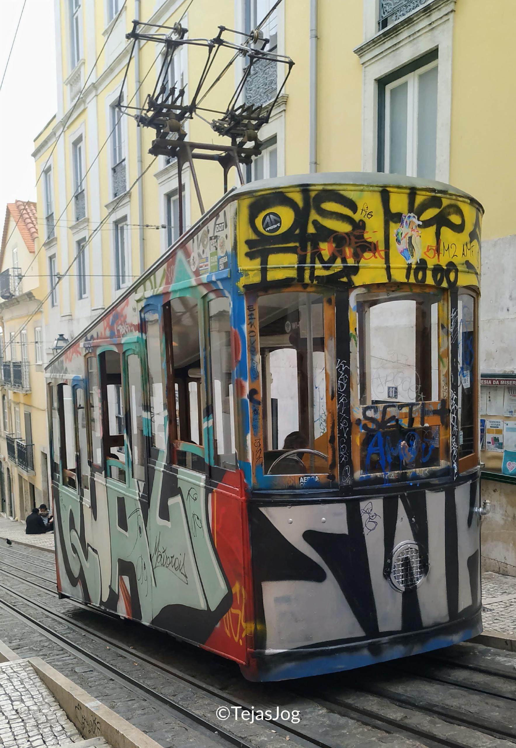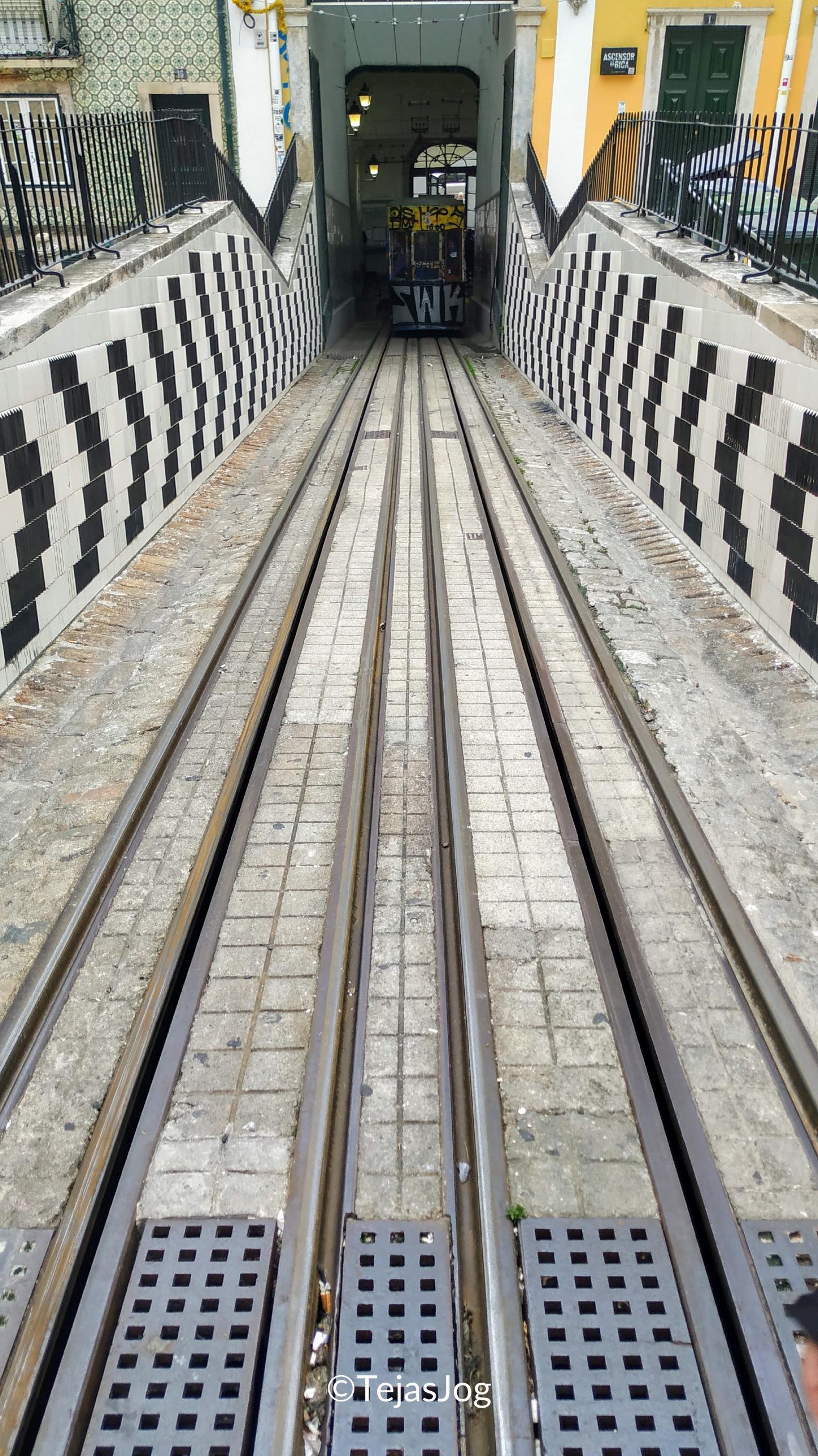 Our path took us through Bairro Alto to Elevador da Bica where we walked down along the track to the base. Our our ended at Jardim Dom Luis.