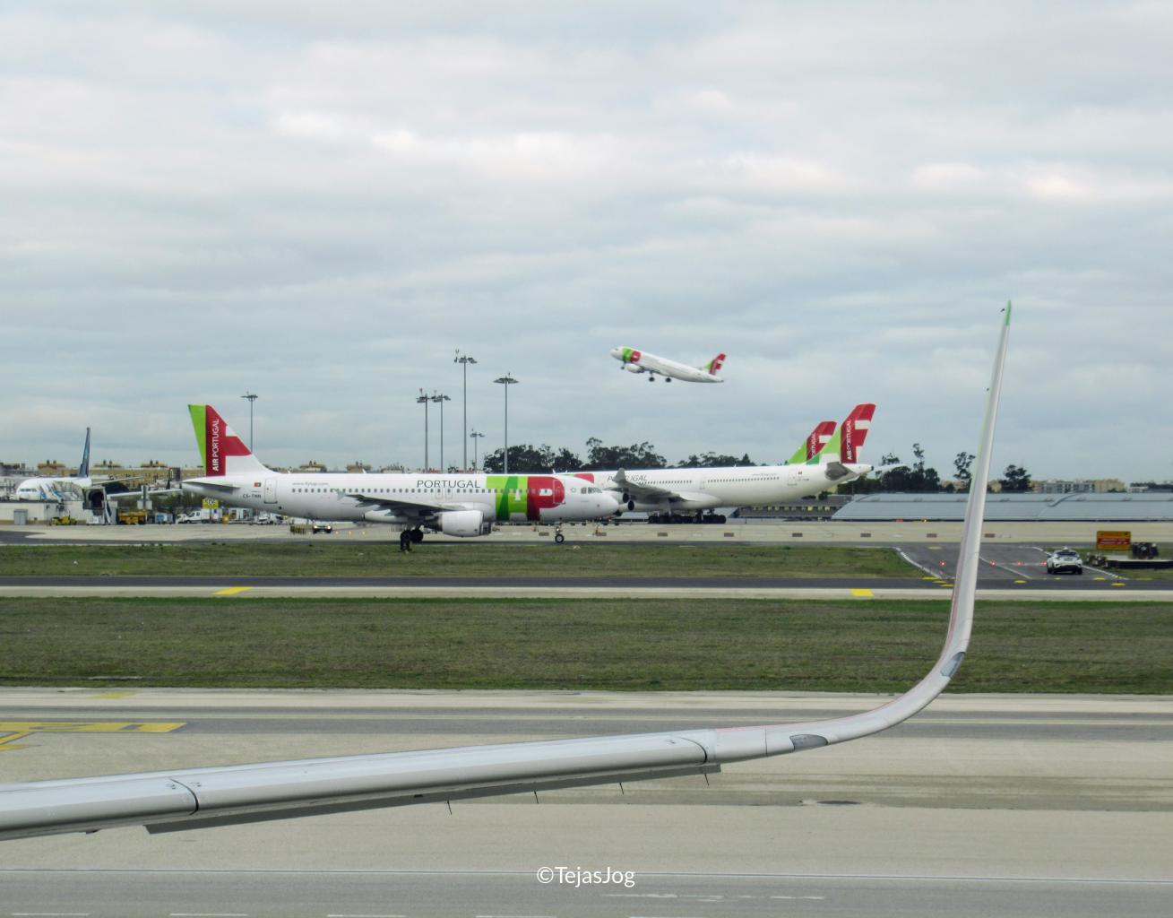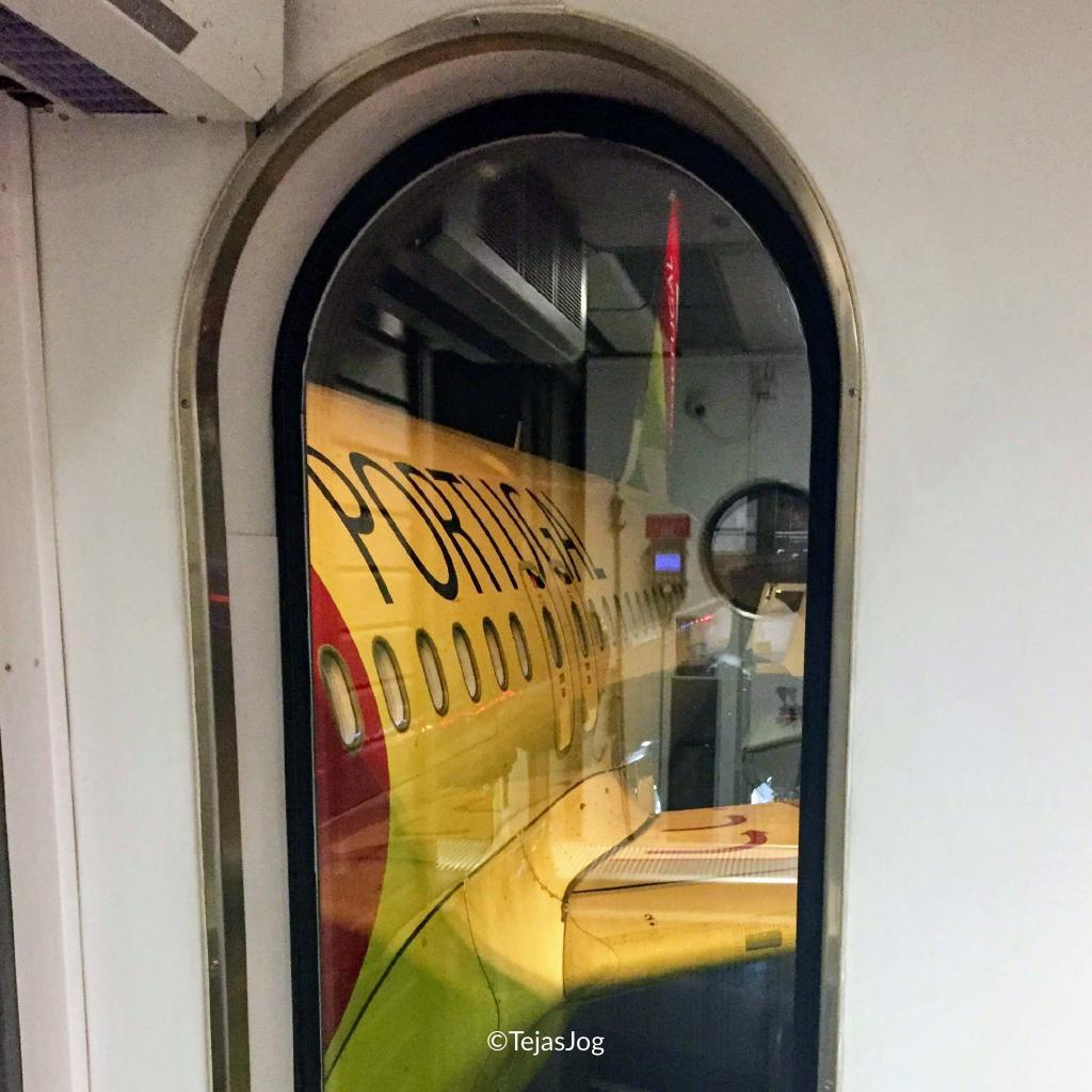 After breakfast I realized that my phone needed some juice and looked around to find the in-seat charging point. Unable to do so, I walked back to the galley and asked one of the flight attendants. She told me that only the priority seats (red headrest) in the forward economy cabin had in-seat power; my existing seat (green headrest) didn’t. Maybe I should have taken the priority seat at check-in after all. She told me to check with someone in the forward section if I could charge my phone at their seat. Luckily for me, I found an empty seat in the priority section and the person in that row was kind enough to let me to leave my phone there for charging. I got back to my seat in the back took a nap. Soon we were beginning our descent towards Lisbon. After landing I didn’t need to collect by bags, so I quickly made my way out of the airport to catch the metro to the city for a day in Lisbon.