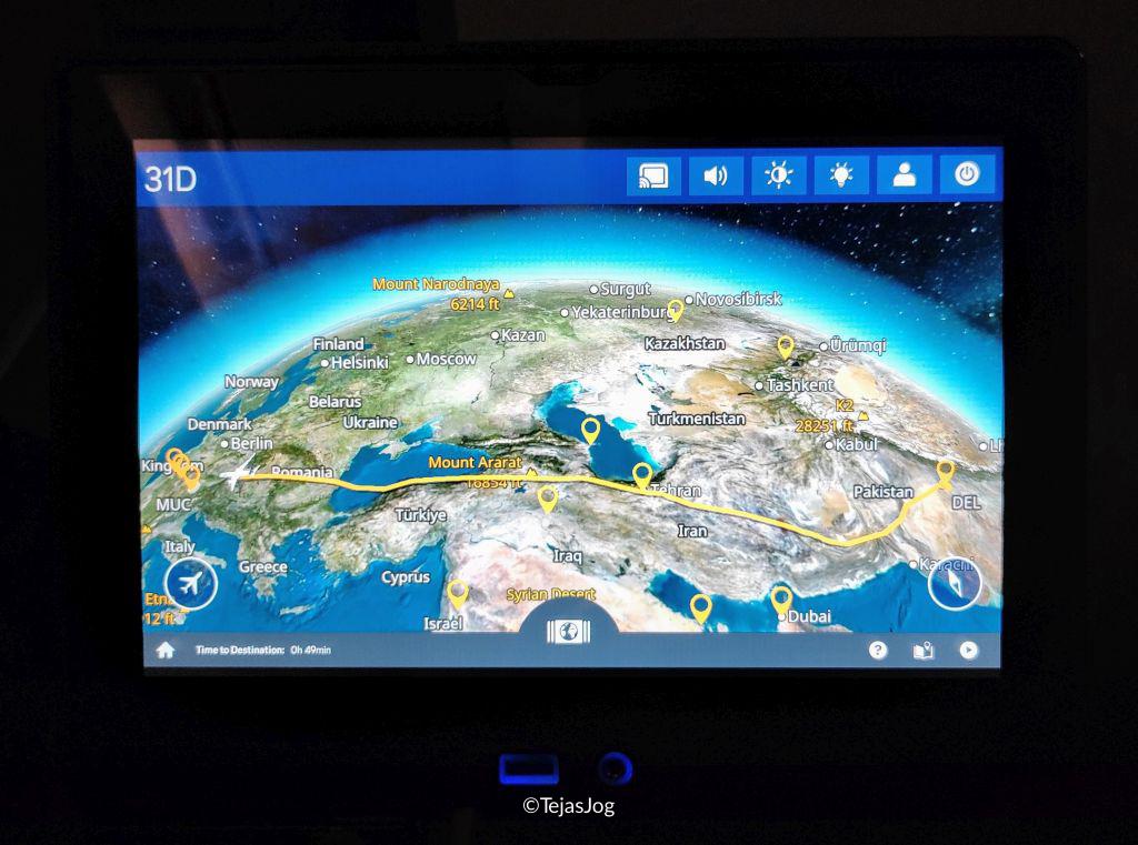 After just making the connection from Pune, we boarded LH763 from Delhi to Munich. We had bulkhead seats on this flight. 31D and 31G, both aisle seats in the middle 3 seats in a typical 3-3-3 widebody configuration. The seats had the tray tables in the armresrts and the armrest for 31D was fixed on both sides and the armrest between 31F and 31G was movable. The flight attendant in the galley in front of our seats suggested that since we were traveling together we should take seats 31F and 31G and offer 31D to anyone who shows up for the middle seat, but from his records that seat was still empty. We thanked him for the tip and sat in our originally assigned seats hoping that no one would turn up on the middle seat. Soon the cabin crew announced that boarding was completed and we had 3 seats for the 2 of us to stretch out a little more.