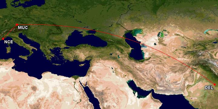 We had a 1 hour 10 minute connection at Munich, but landed 40 minutes late. So effectively that was only 30 minutes to exit the aircraft after landing, clear passport control and go to the next gate and board our connecting flight. It was like the previous night in Delhi all over again, actually worse. We ran out as soon as we could and stood in line for passport control. Luckily there was no crowd there and after showing our return tickets and all the hotel reservations, we were stamped into Germany and the Schengen zone. Our next flight was leaving from the main terminal building and we had to take the train to get there. We ran through the terminal and as luck would have it our flight was from one of the gates at the far end of the terminal. I ran ahead and down the stairs as we heard them announcing that they are closing the flight to Nice. I reached the gate and showed them my boarding pass and told them my wife was running to get there a minute behind me. We were the last two to get in and they closed the flight after that. Of course our bags were not going to make it but we had an overnight in Nice and a full day in Lisbon so I was hoping that our bags would eventually catch up with us and meet us in Terceira. We boarded LH2280 from Munich to Nice. The flight was uneventful. The only service was a bottle of water after take off and a small chocolate before landing. We got some nice views of the Alps but as we flew south the weather got more cloudy and by the time we landed in Nice it was raining heavily. We had to run to the bus from the aircraft in the rain and then we were dropped off at the terminal building ready for the first day of our trip.