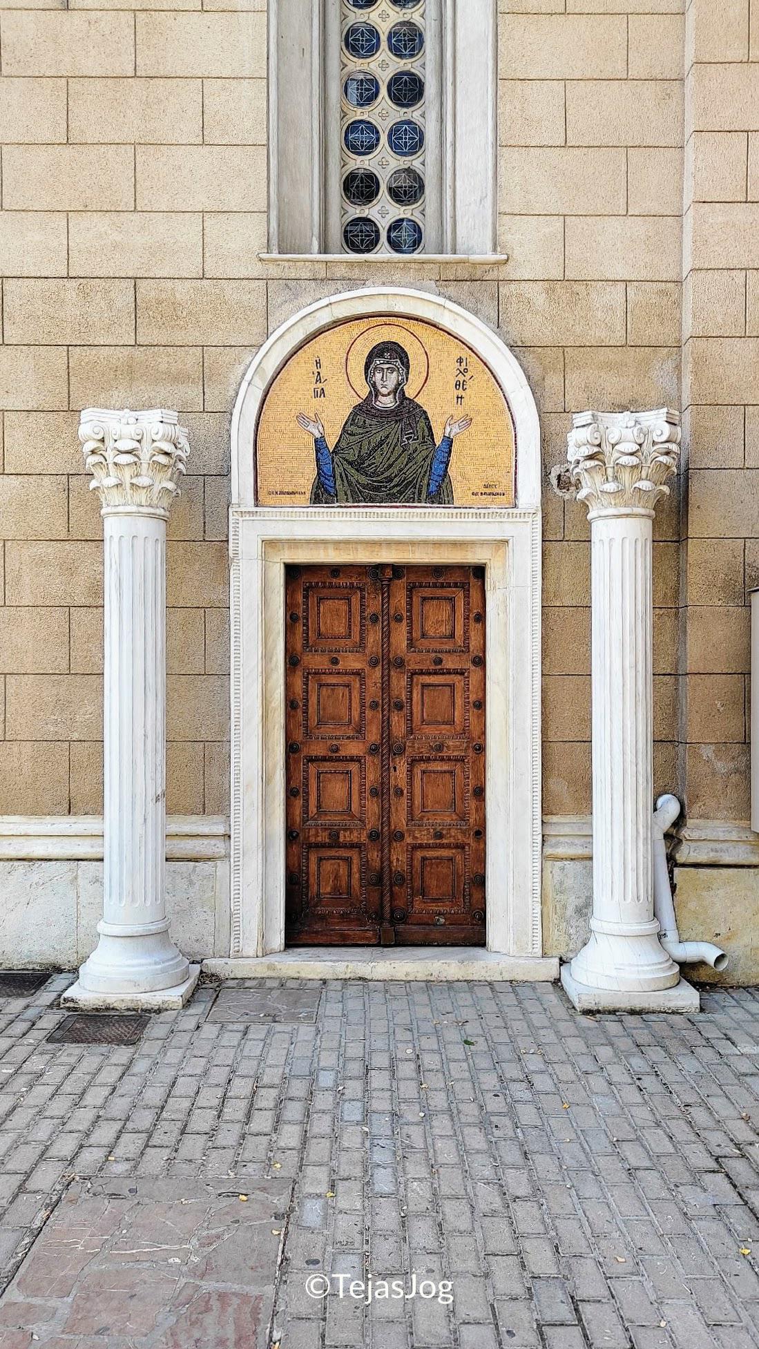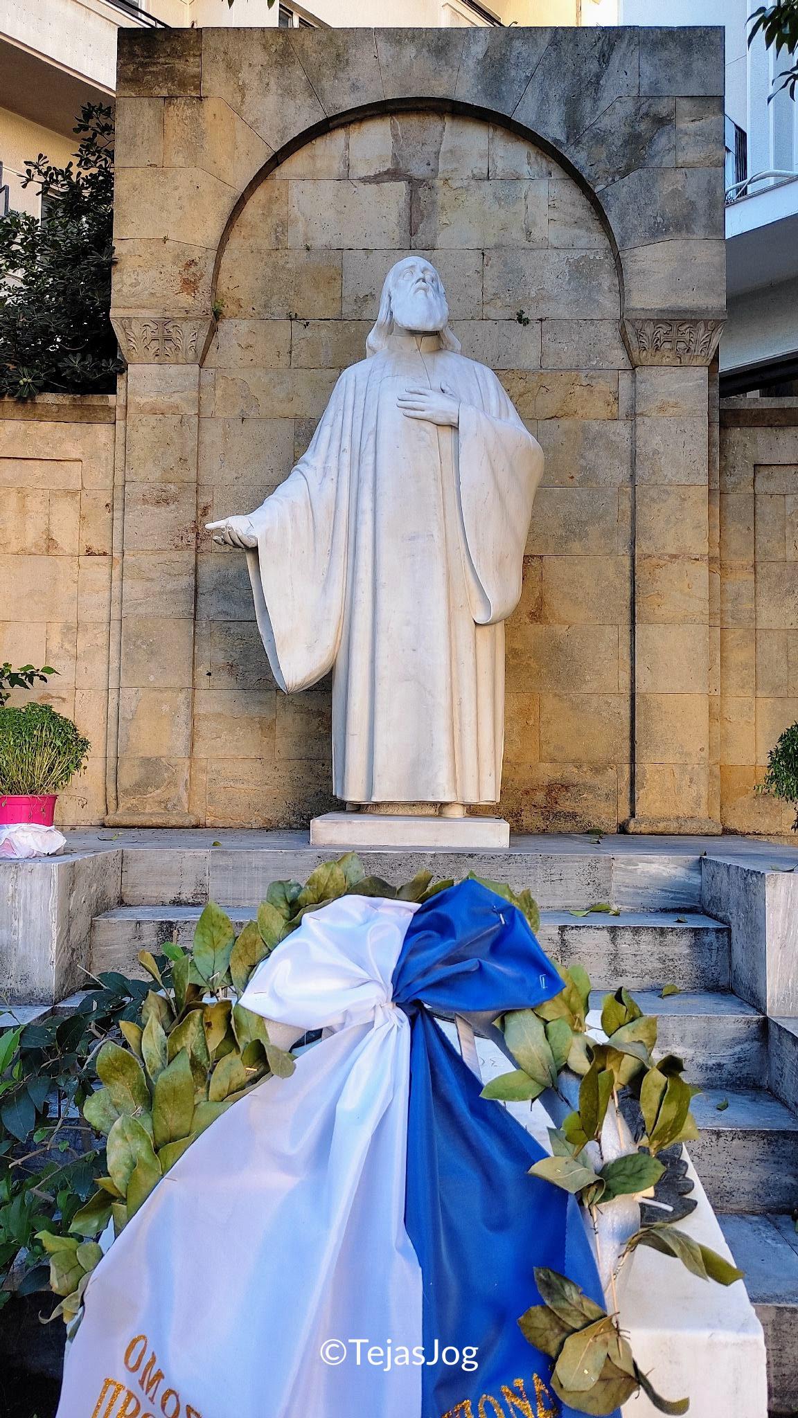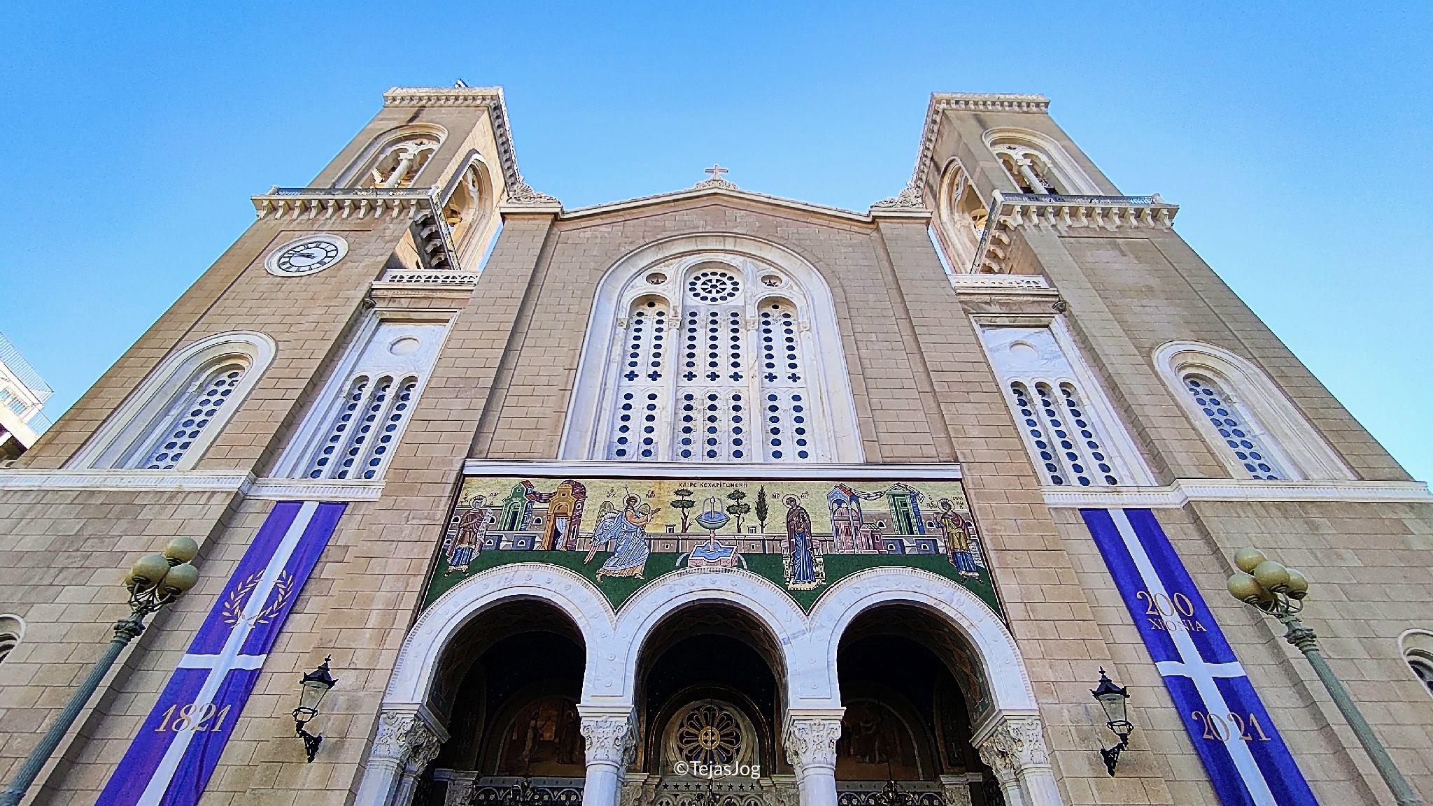 We took the X95 bus from the airport to the city and it took a little over an hour for us to reach there, giving us a chance to have a quick nap. We got down at Syntagma Square and started to walk towards Monastiraki Square. We saw the Statue of St. Chrysostom Smyrna in the park around the Holy Metropolitan Church of the Annunciation to the Virgin Mary.