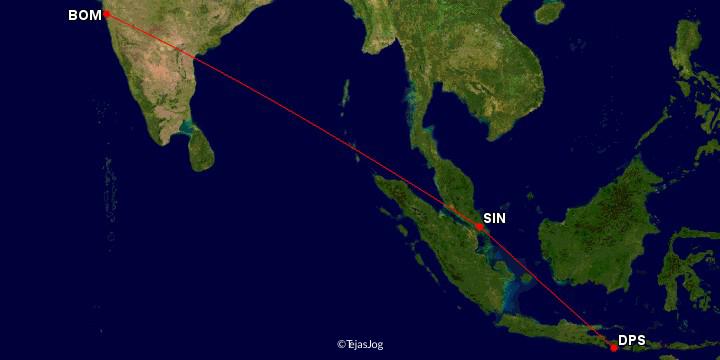 We used the miles for two one-way tickets for us on Singapore Airlines from Mumbai to Singapore, and onwards to Denpasar.