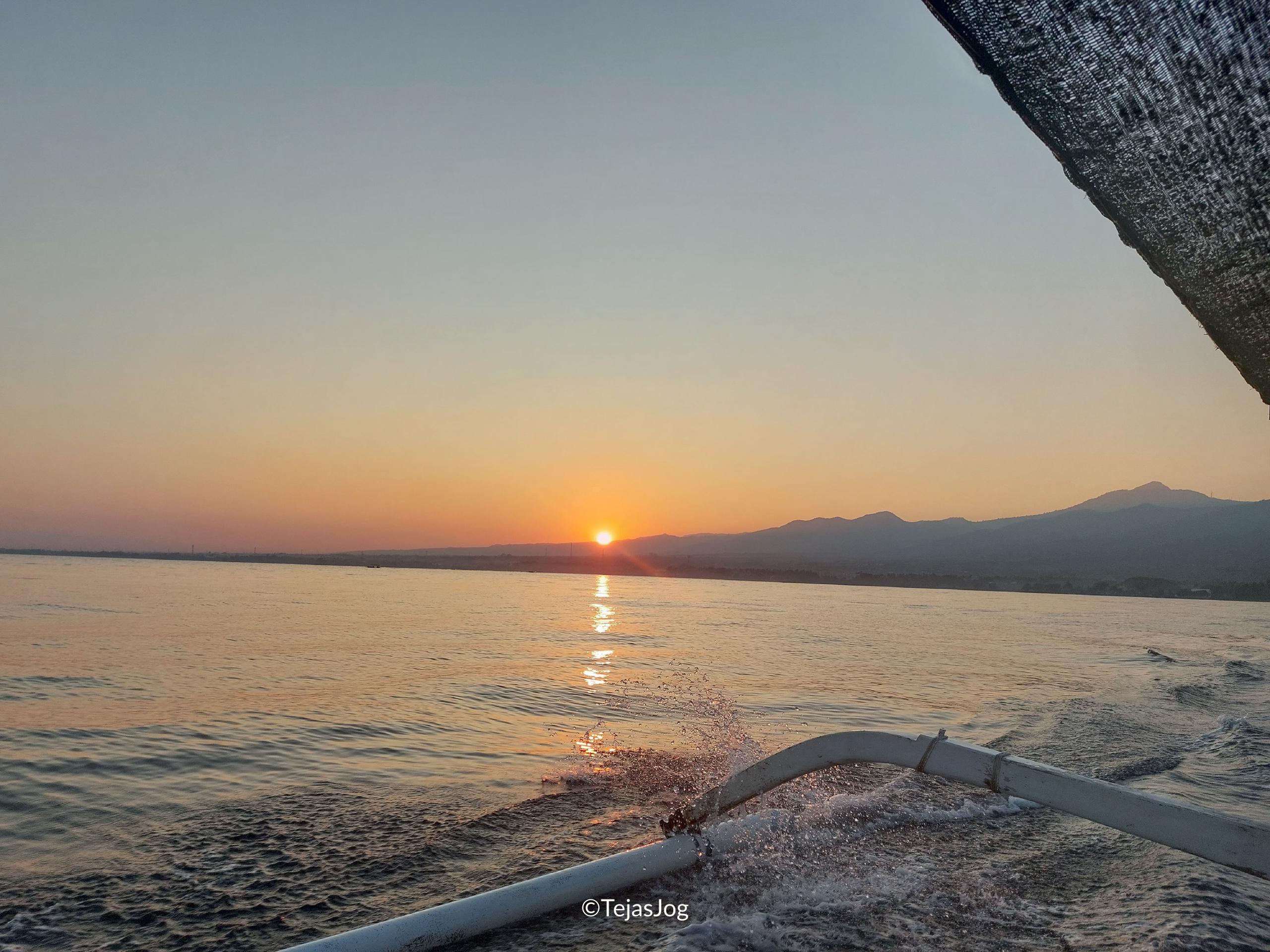We got up early and walked to the beach for our “swimming with dolphins” and snorkeling tour. We had booked it with Saraswati Lovina Dolphin for IDR 500,000. We met our boat operator and we were off. At first, there seemed to be a plethora of boats all heading out to sea, but as we went further out, everyone dispersed in different directions. Soon after, we started seeing dolphins around us.