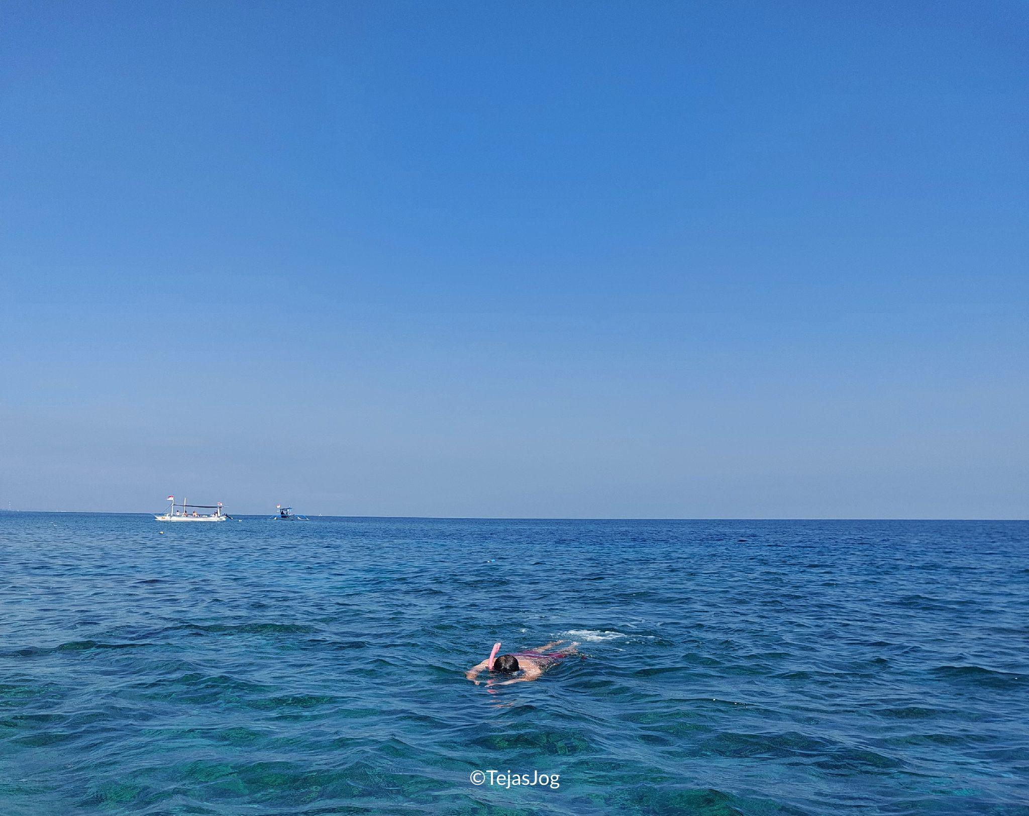 After a while, we were served coffee and fried bananas for breakfast on the boat. The operator asked if we wanted to see more dolphins or head to the snorkeling location. We decided to go snorkeling. We reached an area close to the shore and anchored there. The water was clear and calm, full of fish, at about 10โ20 feet deep. We got into the water and were able to snorkel all around; there were no strong currents, making it easy to swim. There were also very few people at that location. Overall, I think this was a far more enjoyable experience than Nusa Penida, and I would highly recommend making the trip to the north coast for this.