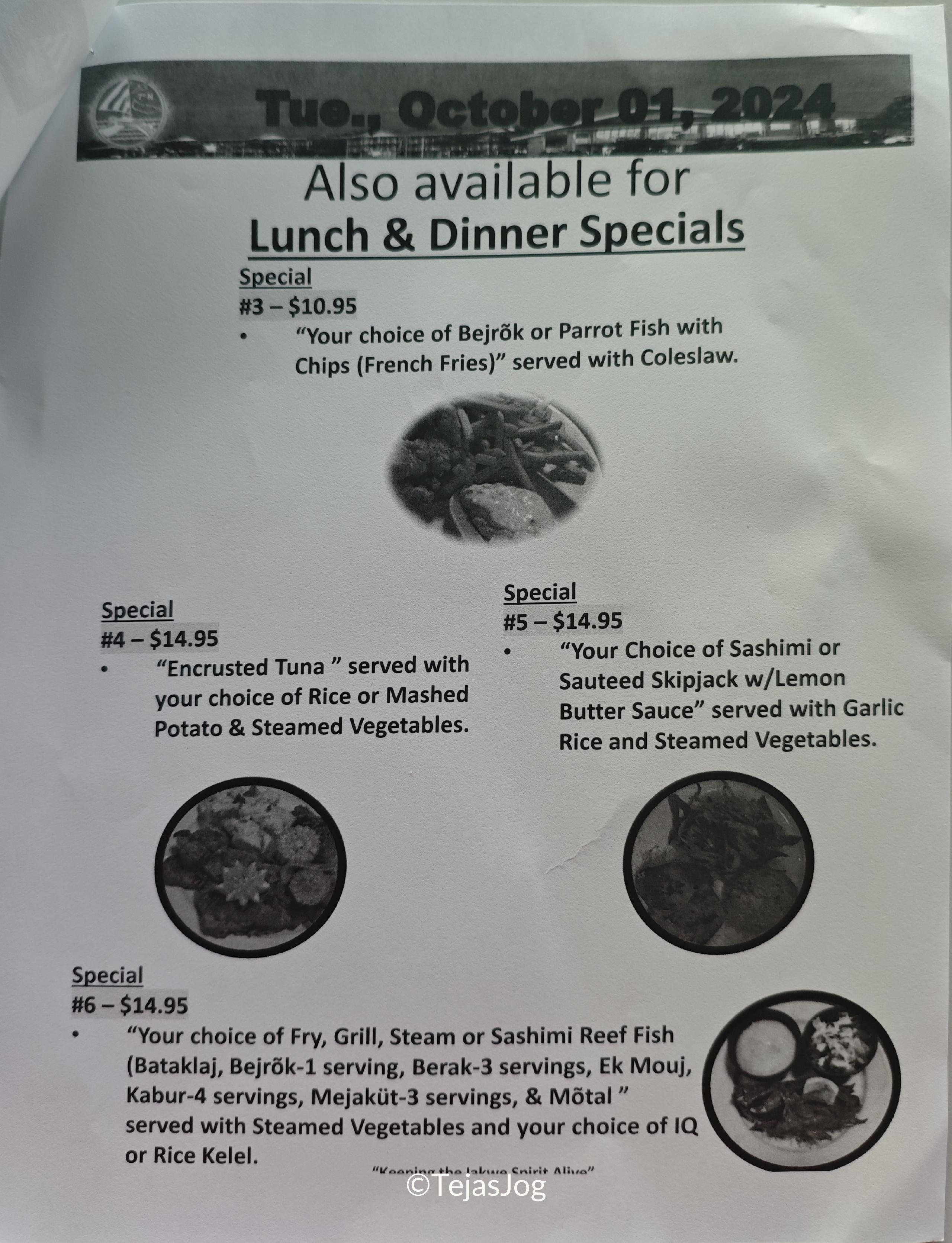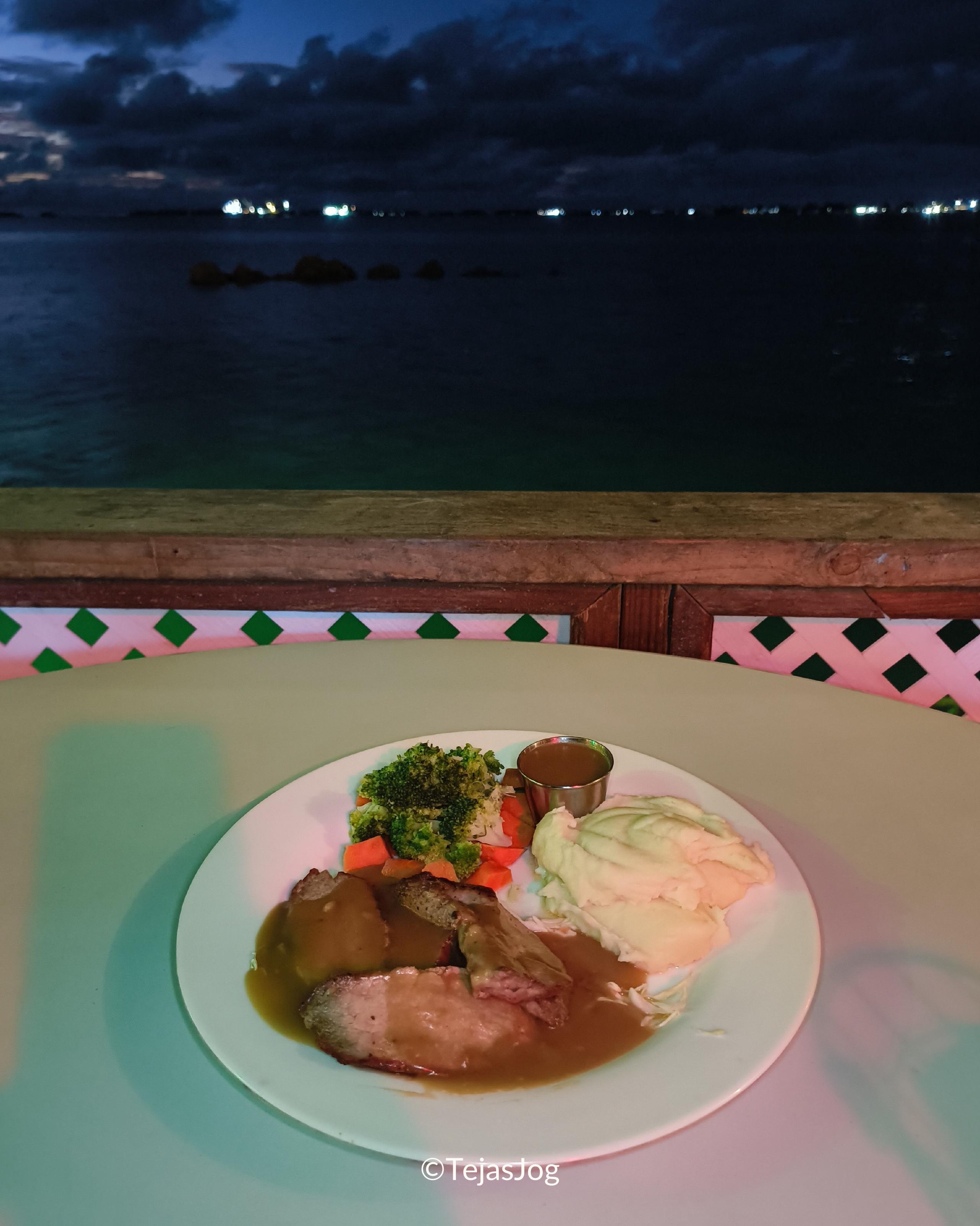 By evening, we decided to have dinner at the Enra Restaurant at the Marshall Islands Resort. They have a lovely patio with outdoor seating overlooking the lagoon.