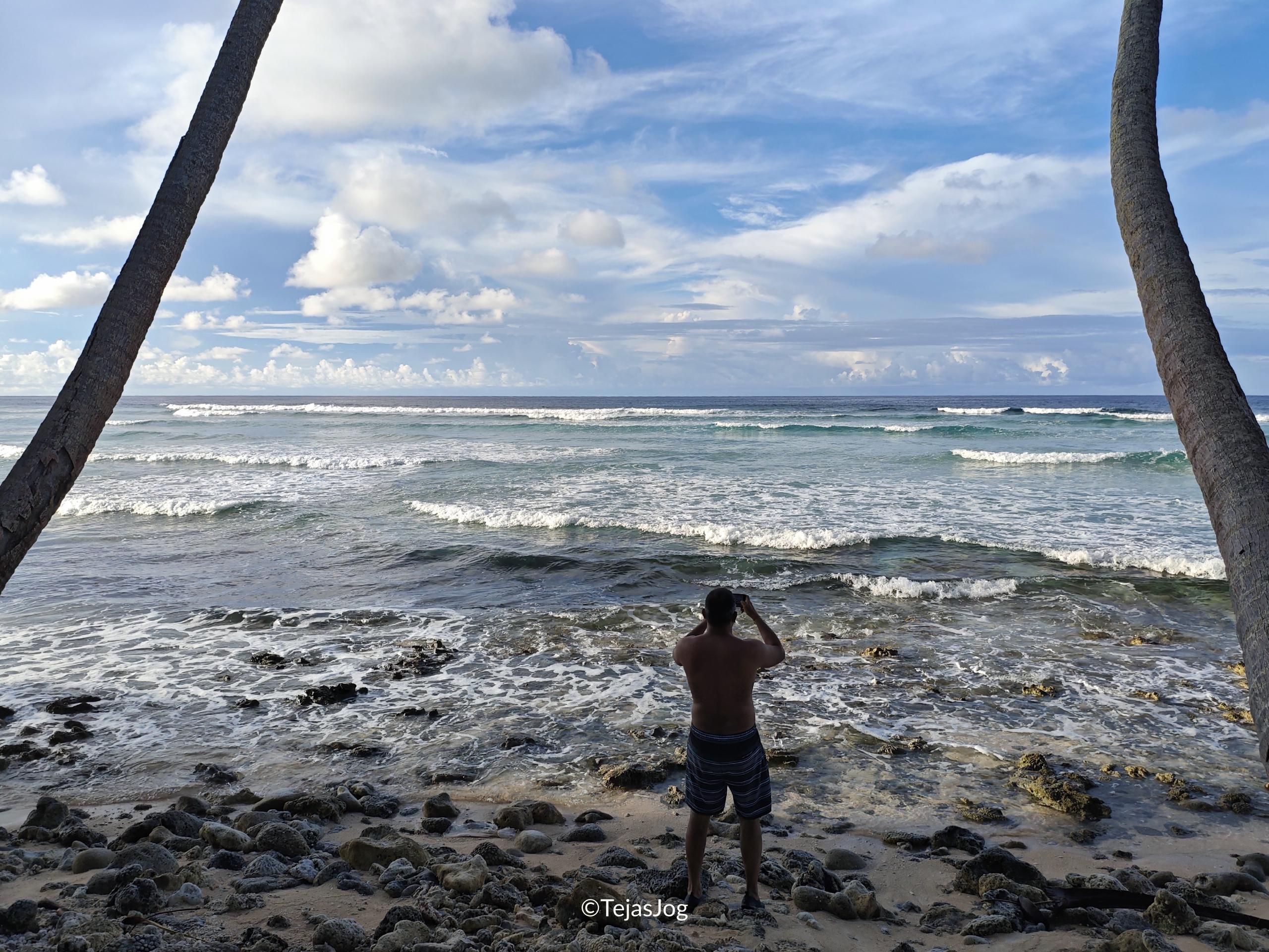 The island is quite narrow, and we enjoyed walking through the tropical vegetation to reach the northern beach facing the Pacific Ocean.