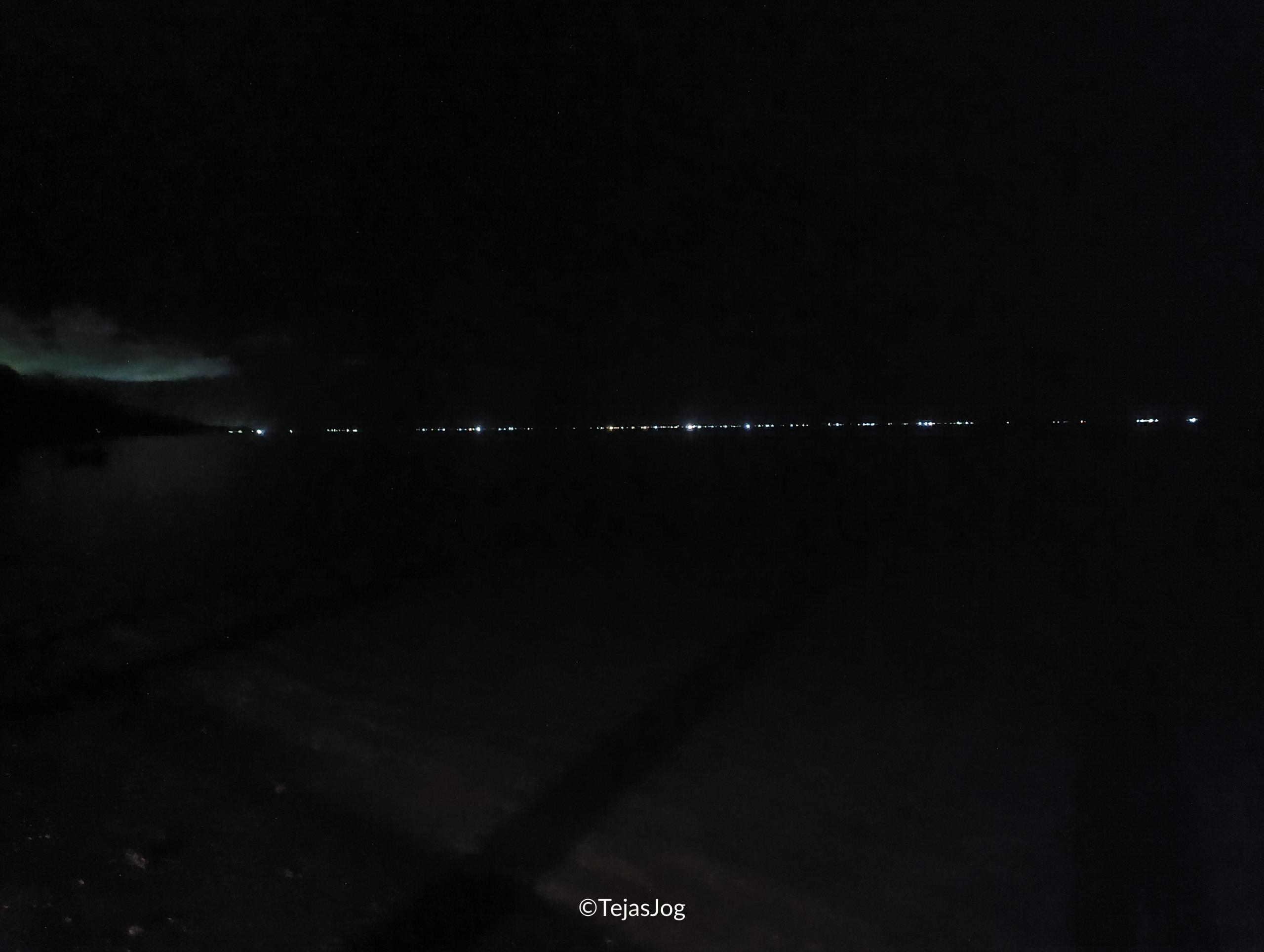 As it became dark, we prepared dinner and enjoyed our meal right on the beach. From our quiet spot, we could see the distant lights of Majuro flickering across the lagoon.