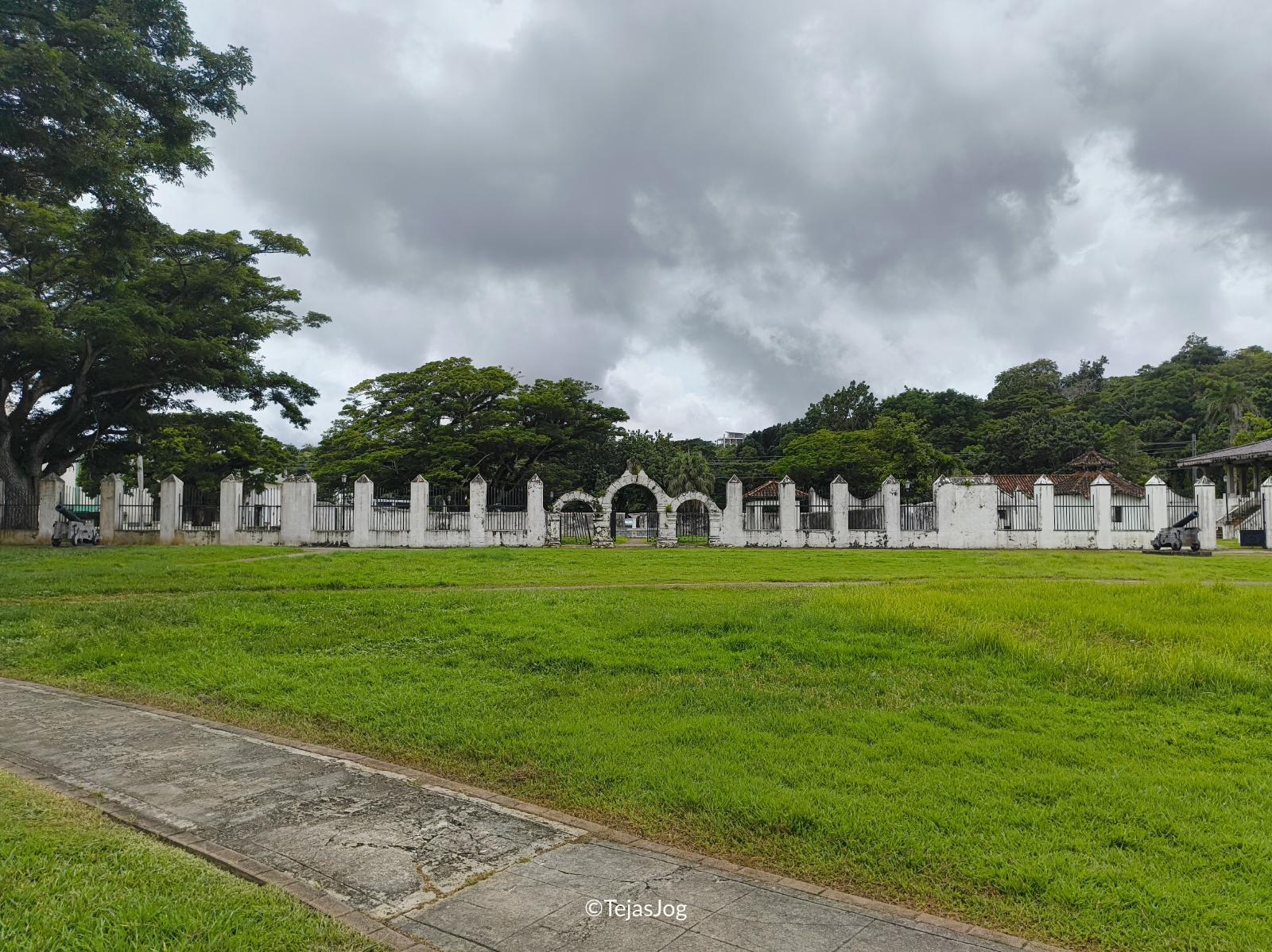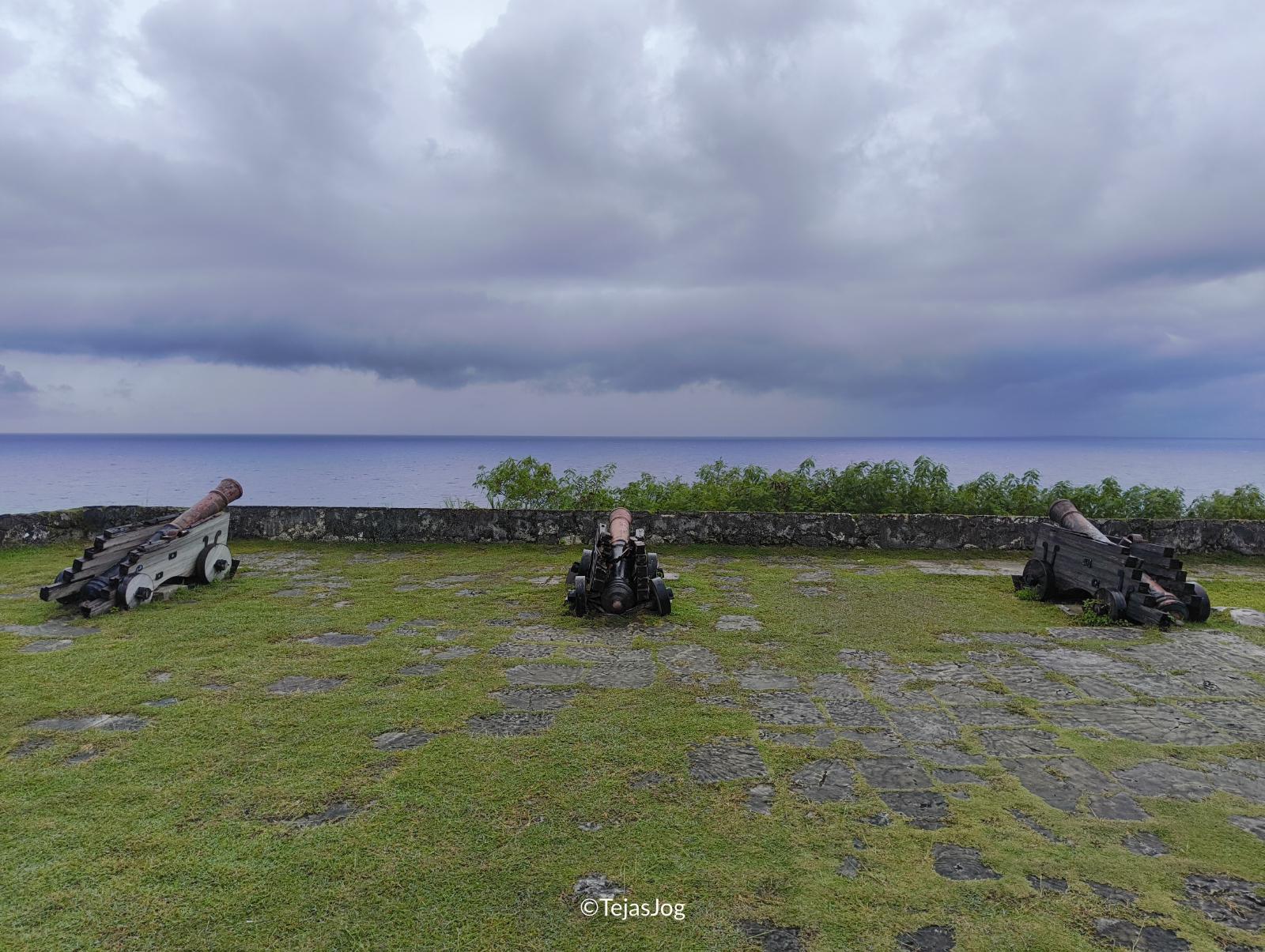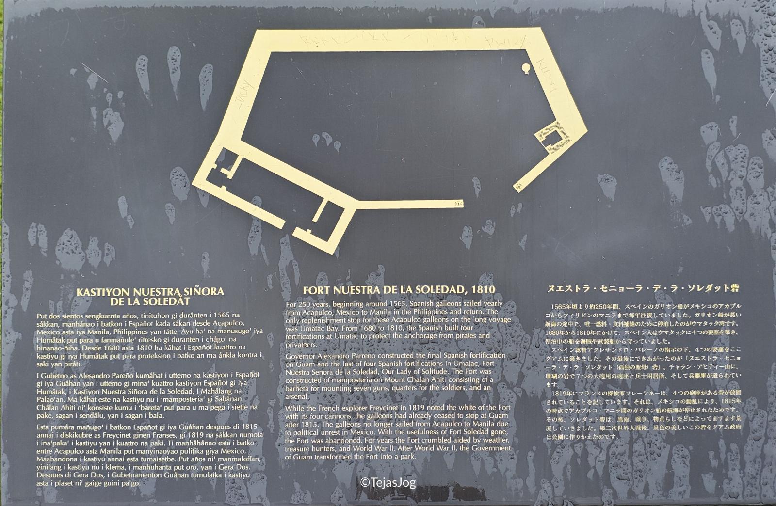 Perched on a cliffside overlooking Umatac Bay, Fort Nuestra Señora de la Soledad was the most famous and well-preserved of the Spanish fortifications on Guam. Looking down, we also saw the San Dionisio Church.