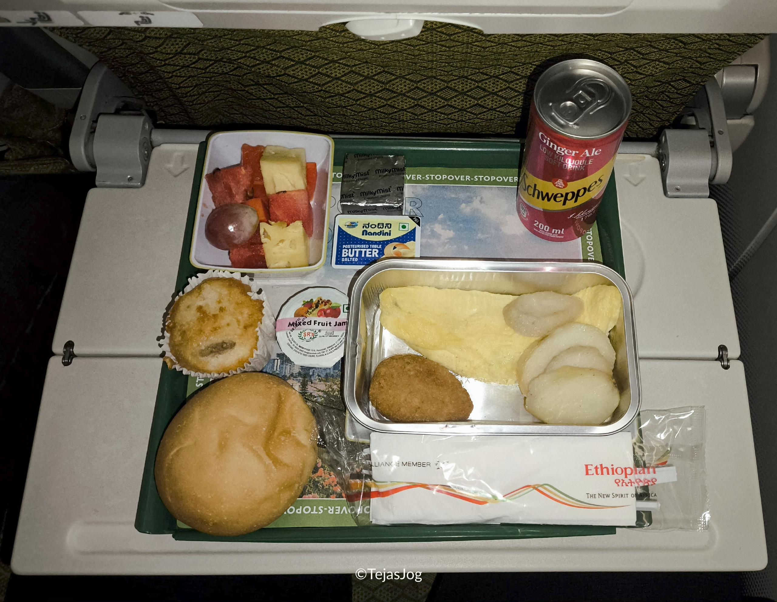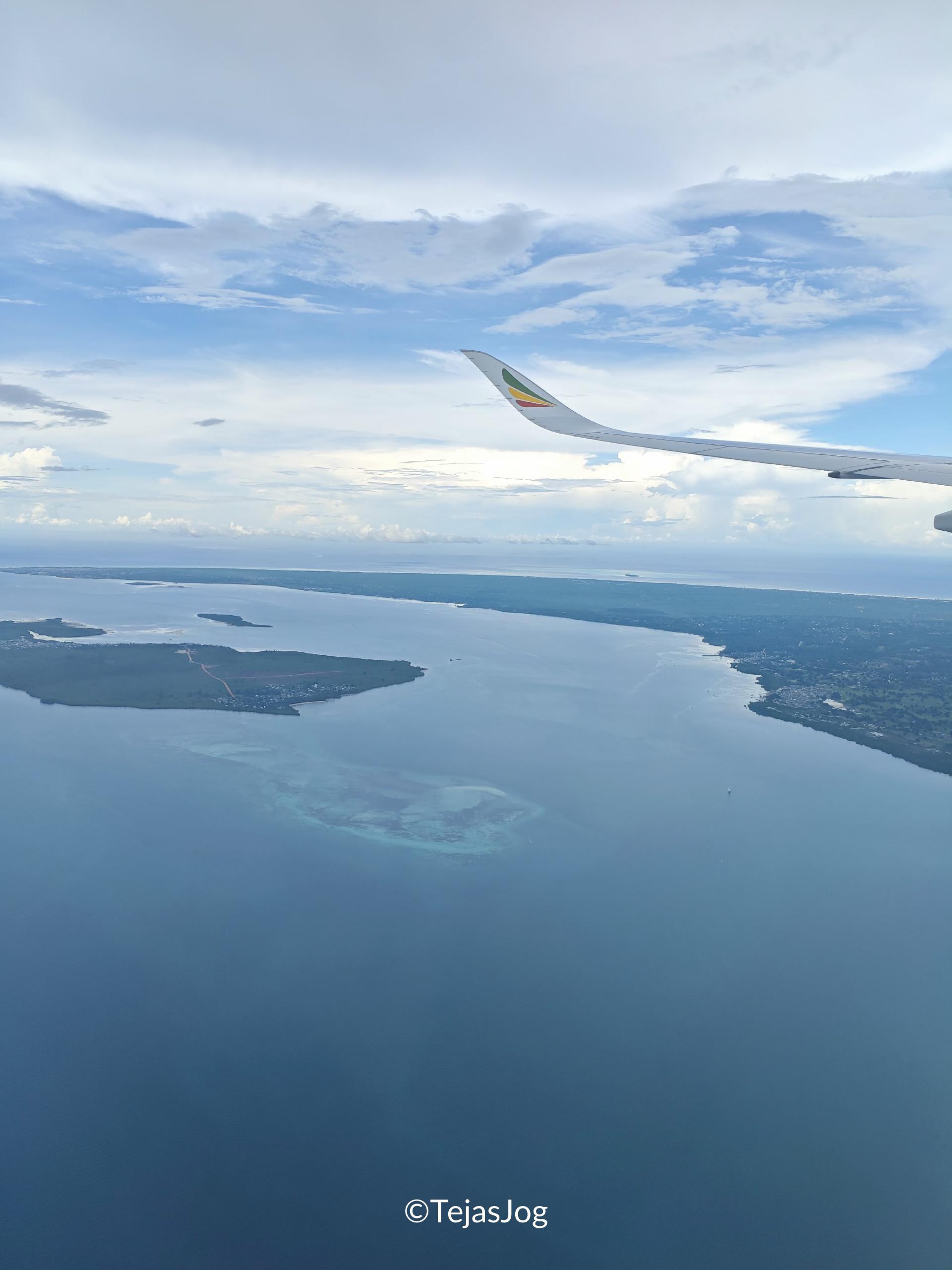 We started our journey for a quick trip to Zanzibar today. Our first flight was on Ethiopian Airlines from Mumbai to Addis Ababa. I had booked a window seat for myself and an aisle seat for my wife in the last row of economy with the hope that the middle seat would remain empty. However, the flight was completely full, and a co-passenger was assigned to the middle seat. While he likely would have agreed to exchange his middle seat for a window or aisle, we decided to stick with our assigned seats where we were both individually comfortable. The flight was uneventful, and I slept most of the time. Breakfast was served shortly before we landed.