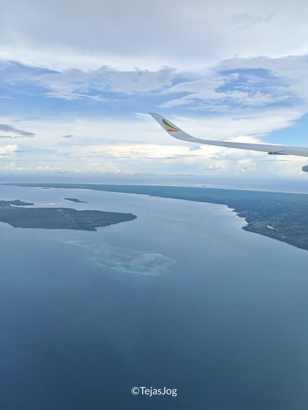 We started our journey for a quick trip to Zanzibar today. Our first flight would be on Ethiopian Airlines from Mumbai to Addis Ababa. I had booked a window seat for myself and an aisle seat for the wife in the last row of economy with the hope that the middle seat would remain empty. But the flight was completely full and we had a co-passenger who was assigned the middle seat. He would have agreed to take the window or aisle in exchange for his middle seat but we just decided to continue with our assinged window and aisle seats where both of us were individually comfortable. The flight was uneventful and I slept most of the time. There was breakfast service before we landed.