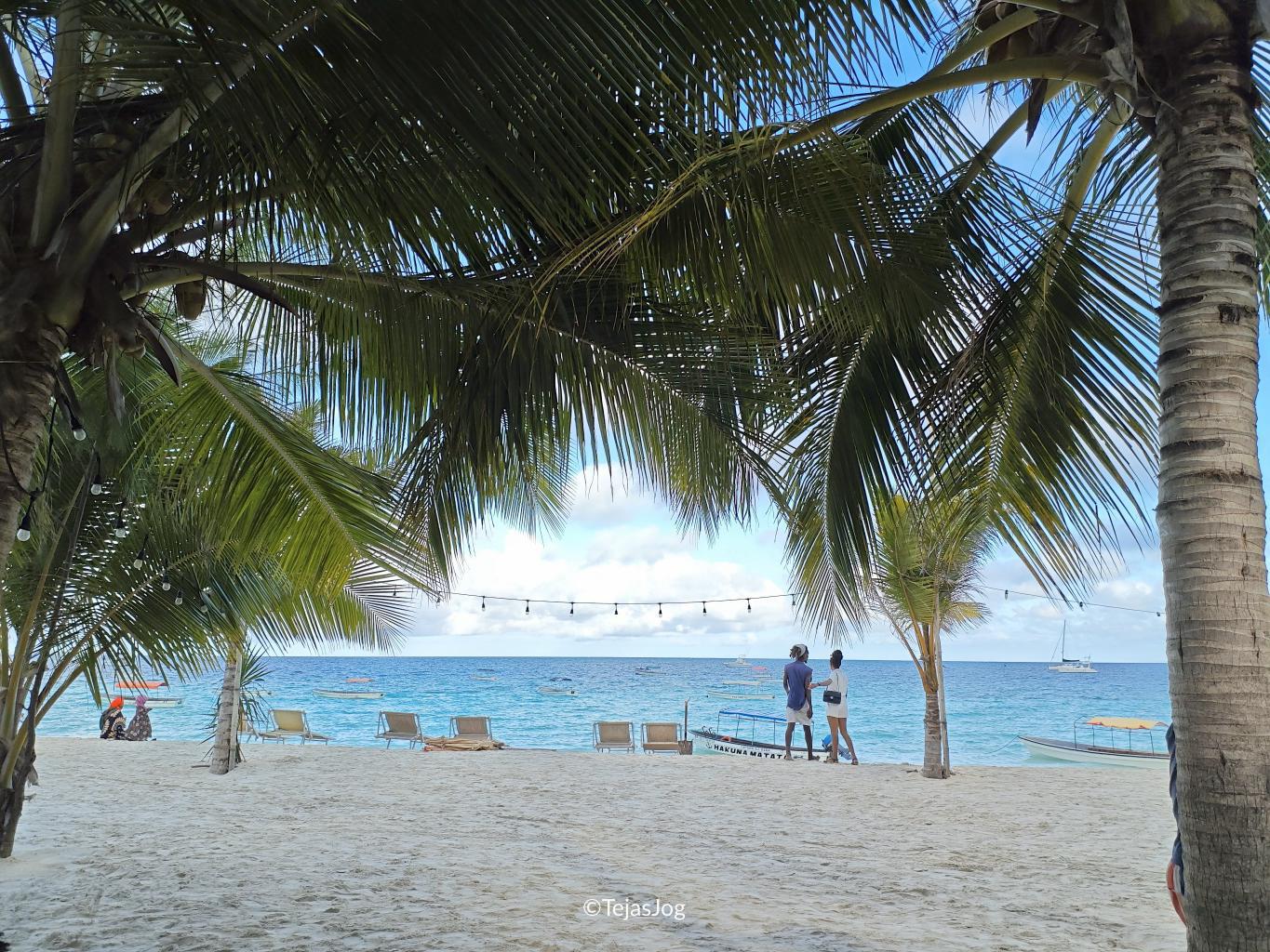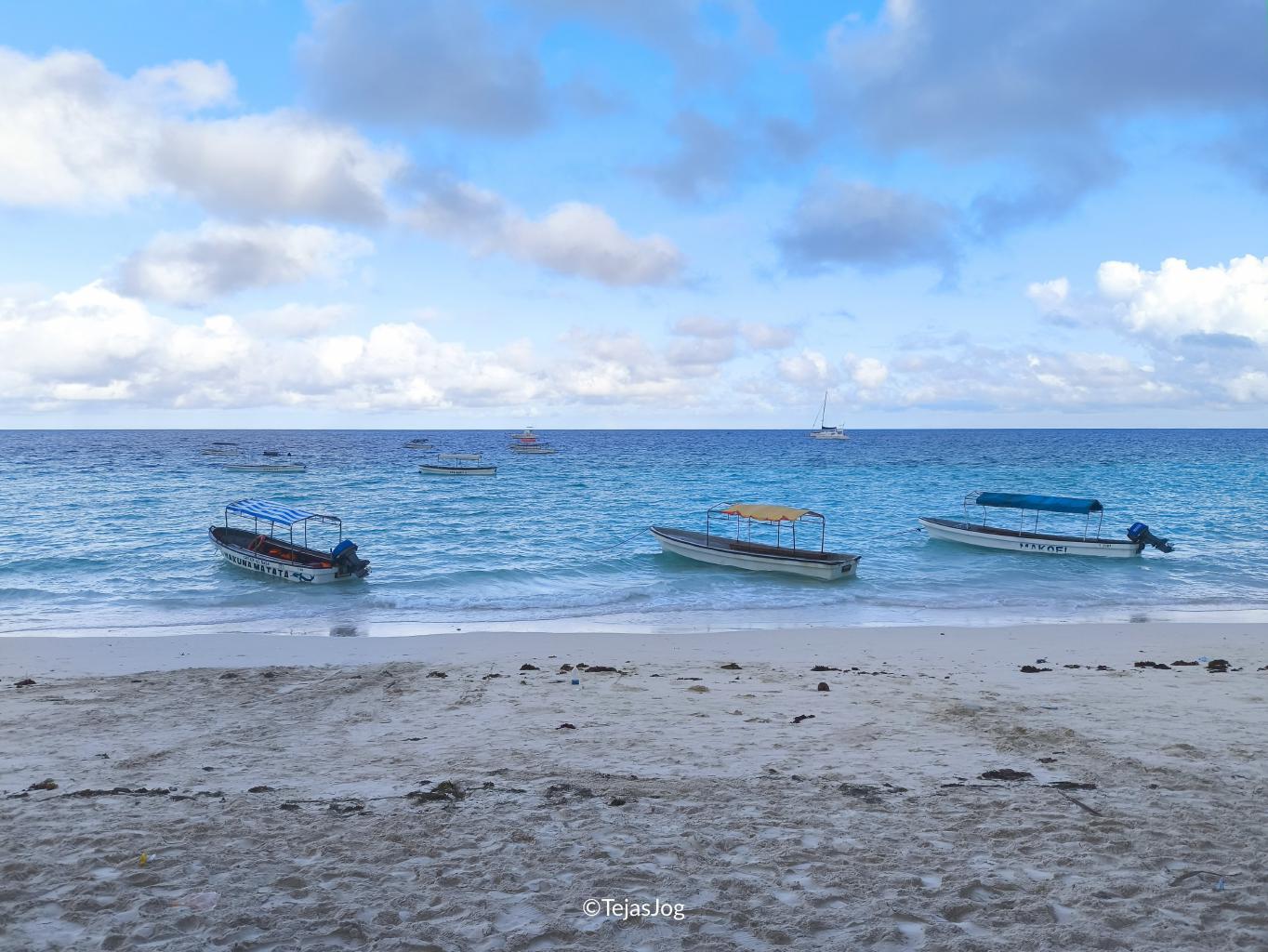 We had booked the Mnemba Snorkeling And Dolphin Tour from Nungwi on https://www.getyourguide.com/. We walked from our hotel to the meeting point for the tour which was opposite the Nungwi Inn Beach Restaurant. Someone figured out who were were and took us to one of the shops to try out fins as per our foot size. We had bought our own snorkeling masks so didn’t need those. We were then asked us to sit there till the rest of the people who had booked the tour showed up.