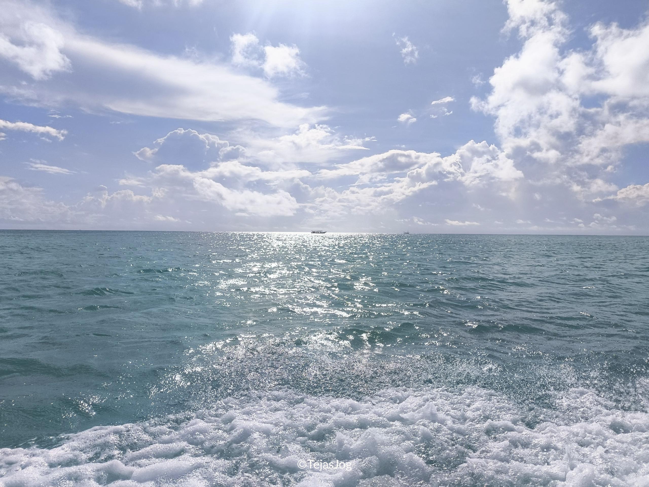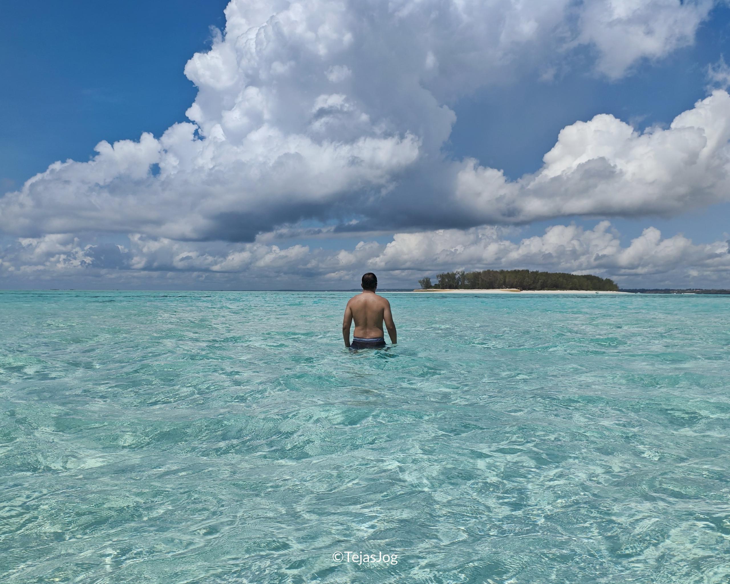 Next, we stopped at a sandbank a little further away. Here, the water varied from ankle-deep to waist-deep as we moved further from the main sandbank. We were able to get off the boat, walk around, and enjoy the experience.