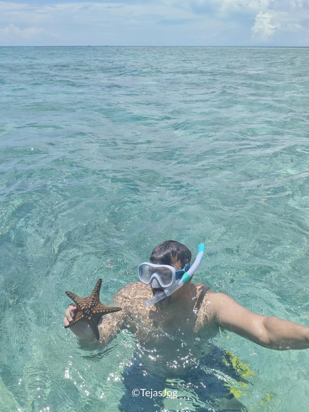 I got back on to our boat and we headed to the last stop for the tour. And just like that the sun was out and it was like the storm and rain never happened. We reached a shalow area of the sea north of the northern end of the island. This place was famous for starfish. Huge startfish. The water was calm and not too deep so we could see the sea floor cleary. I swam around and got to see lots of starfish.