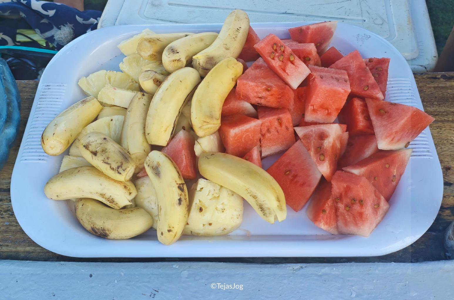 Our tour operartor had arranged for fresh fruits for all of us, bananas, pineapples and watermelons. It was a welcome treat after being in the water for so long and also in the sun. Little did we know that the weather would turn rather quickly.