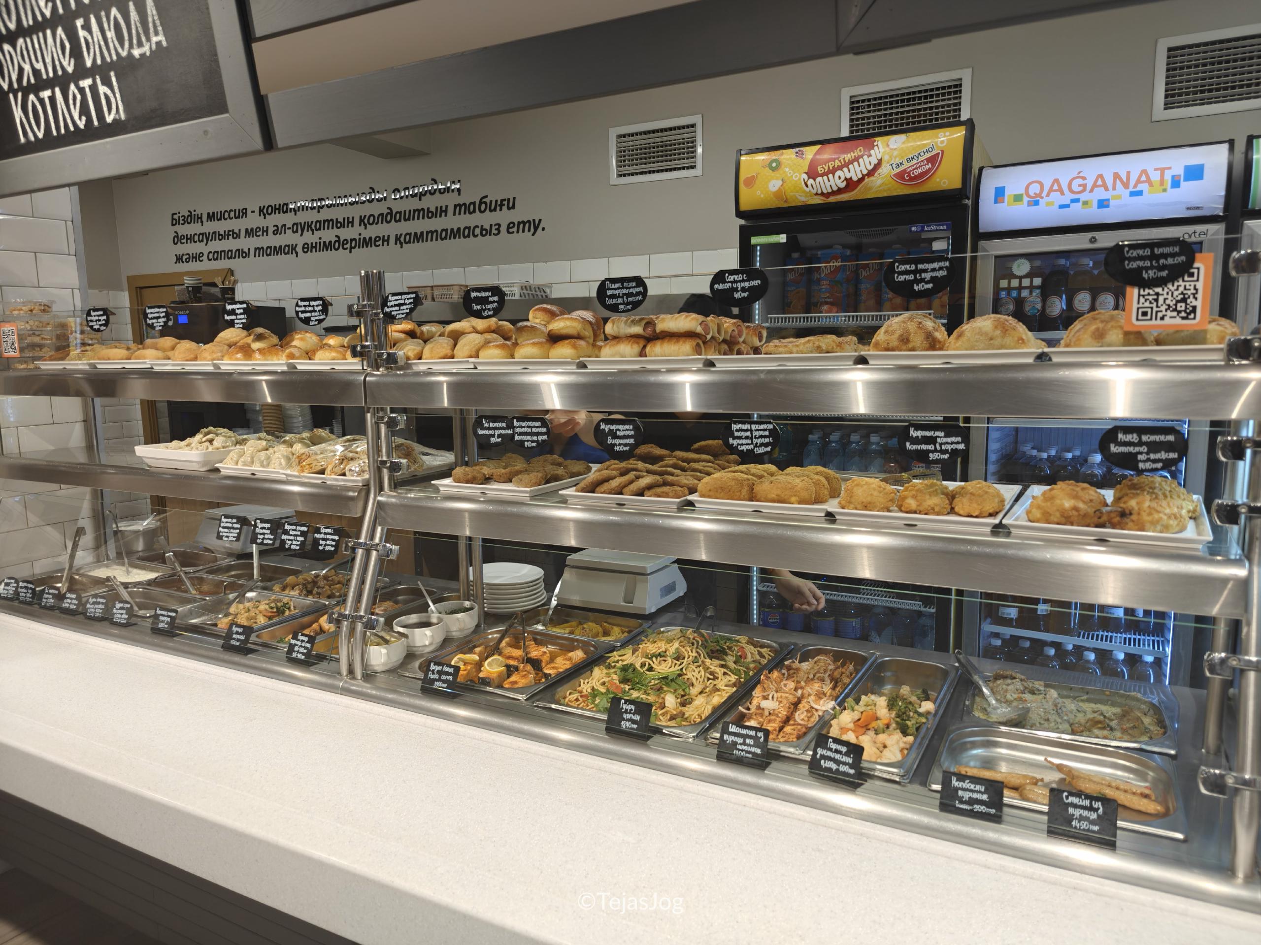 For lunch, we looked for options nearby and decided to go to Qaganat, a chain of self-service cafeterias in Kazakhstan open 24/7.