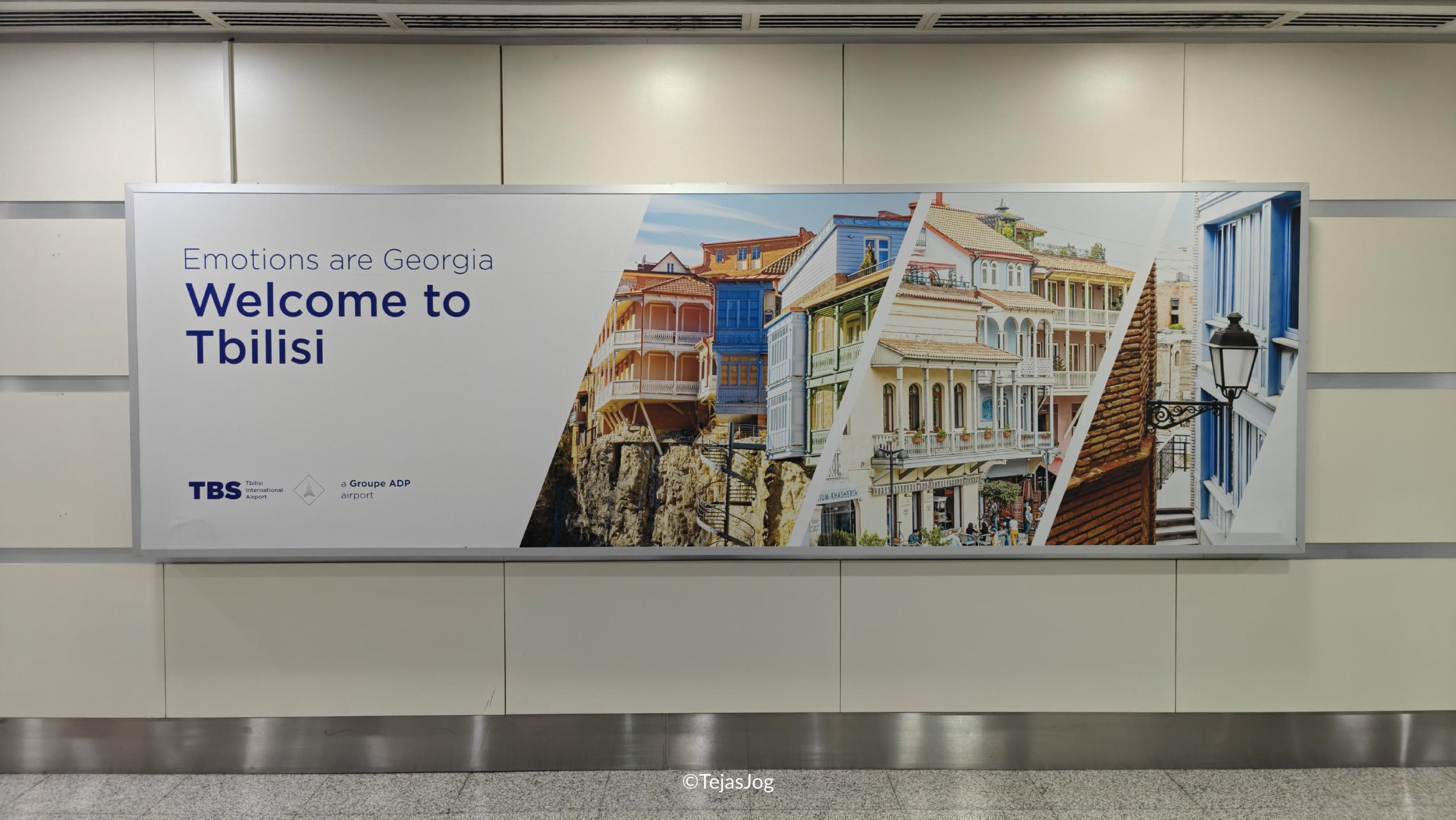 We booked a couple of taxis from here and headed back to the airport for our flight to Tbilisi. The mountains flanking the city from the south were even more visible from the airport. The flight had a dinner service onboard; the meal was adequate and the journey was comfortable. We landed in Tbilisi on time. Indian passport holders can enter Georgia visa-free with valid visas from the USA, UK, Schengen area, or Japan. All of us had B1/B2 visas for the USA, and immigration was smooth. We collected our bags and headed out of the terminal building.