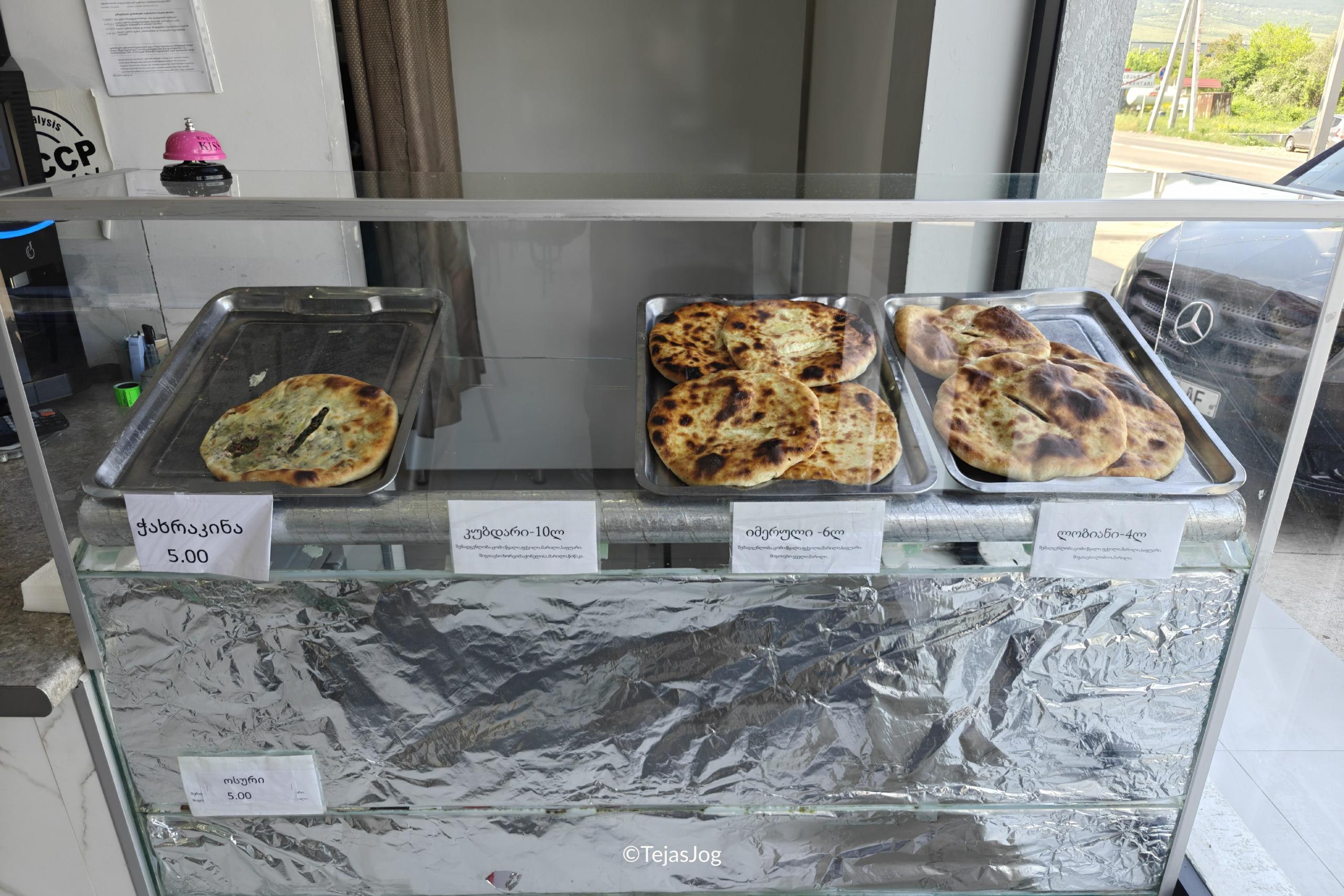 We stopped at a small roadside eatery for a quick breakfast. We had been driving for a couple of hours and everyone was hungry. We tried three types of khachapuri and some coffee (which was from a machine and not great).