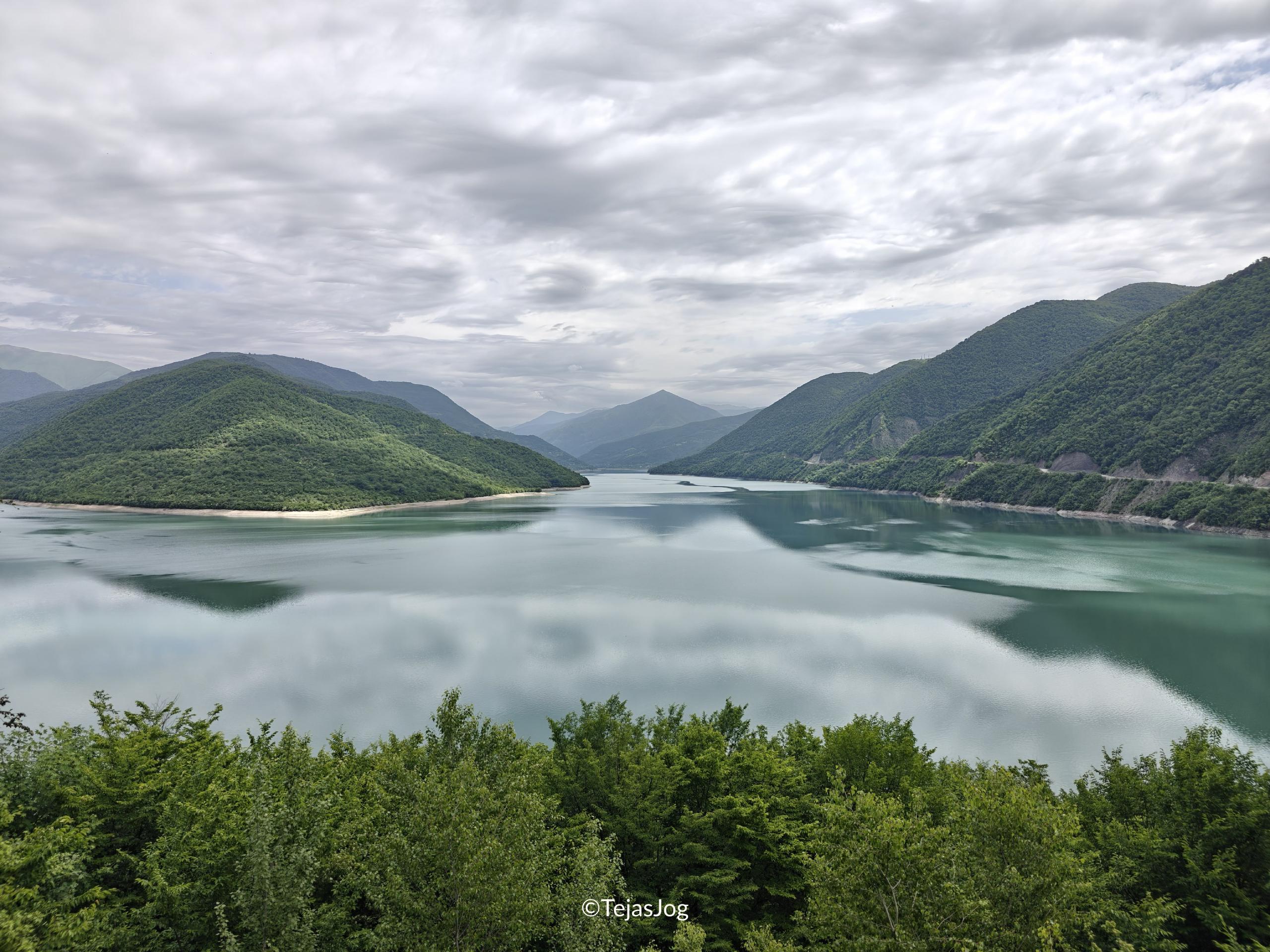 We then drove along the Zhinvali Reservoir. There were multiple spots with small souvenir shops along the way where we could stop to take in the views of the hills and the water.