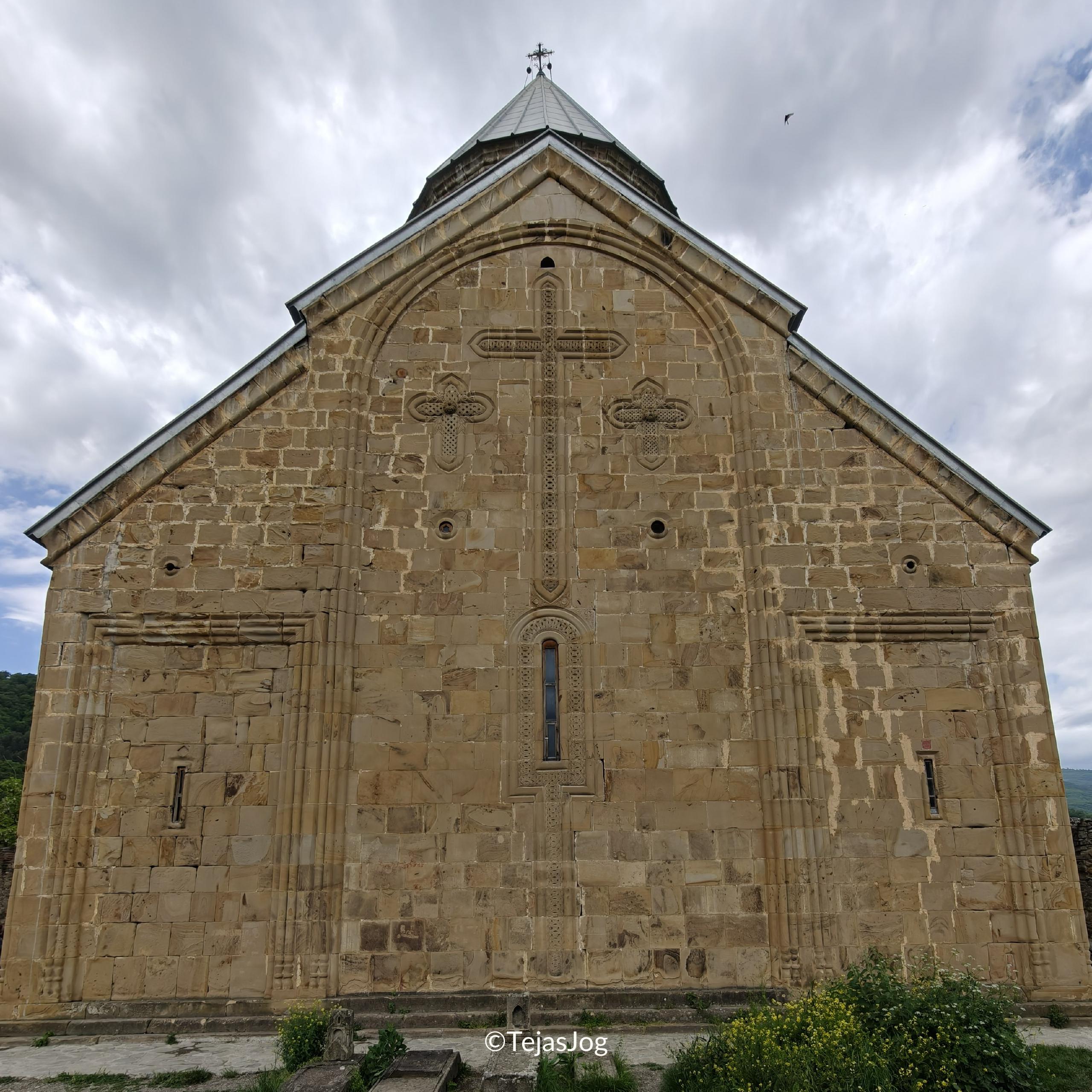 Our next stop was the Ananuri Fortress Complex. There was a parking lot here which cost 3โ5 GEL. We headed inside to explore the complex. There were many places where we could walk along the walls or up the stairs in the towers, providing great photo opportunities. We could also see the backwaters of the Zhinvali Reservoir.
