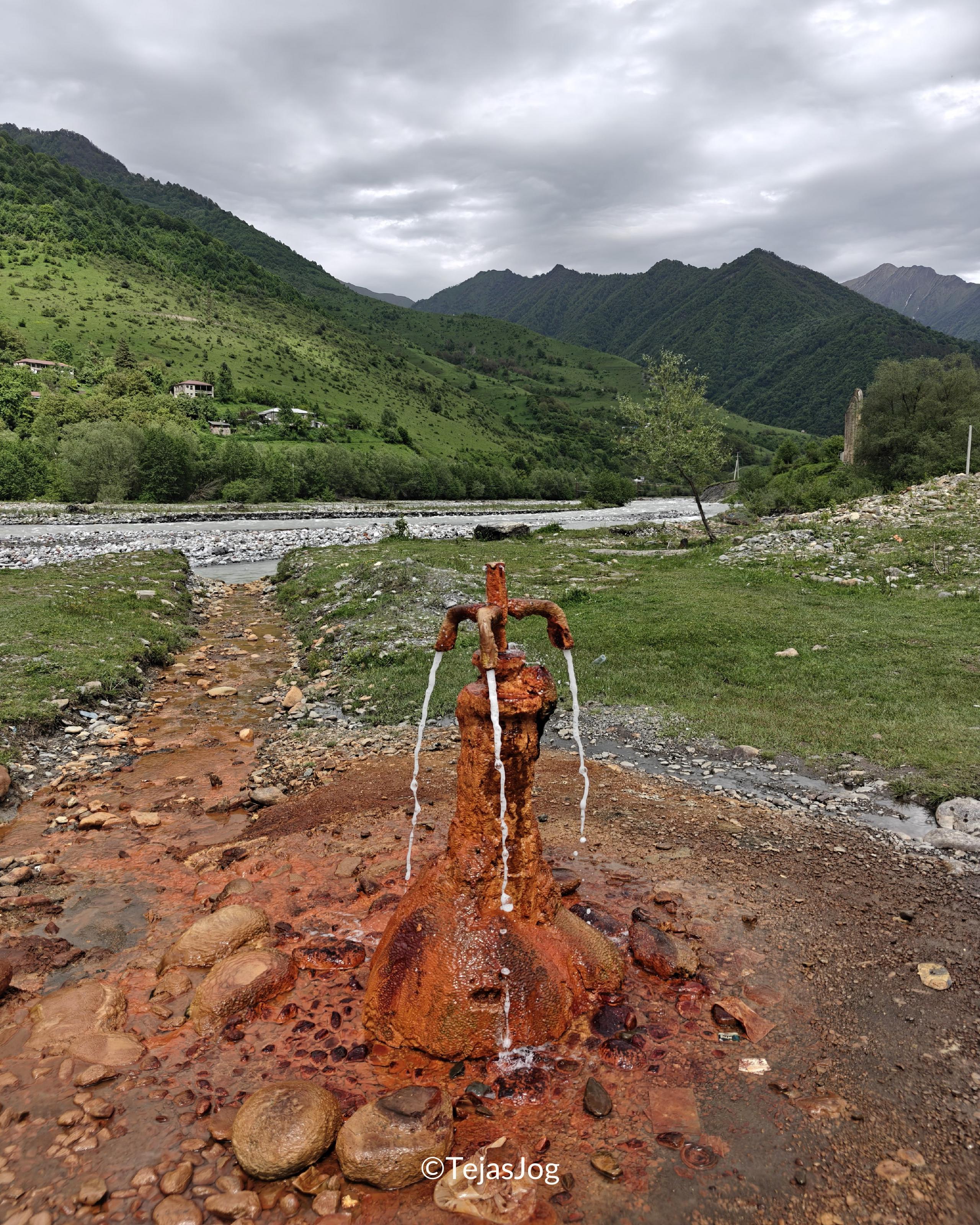 Driving further north, we saw the Statue of Sulkhan-Saba Orbeliani and stopped to see the Spring Water Nadibani. Another driver before us had taken his vehicle down there and drank the water from the spring before waving and driving past us. Seeing him, we took a sip of the water as well. Based on the taste, it was definitely rich in mineralsโpossibly iron and sulfur. However, the most interesting part was that it was mildly carbonated. This was something none of us had experienced before.