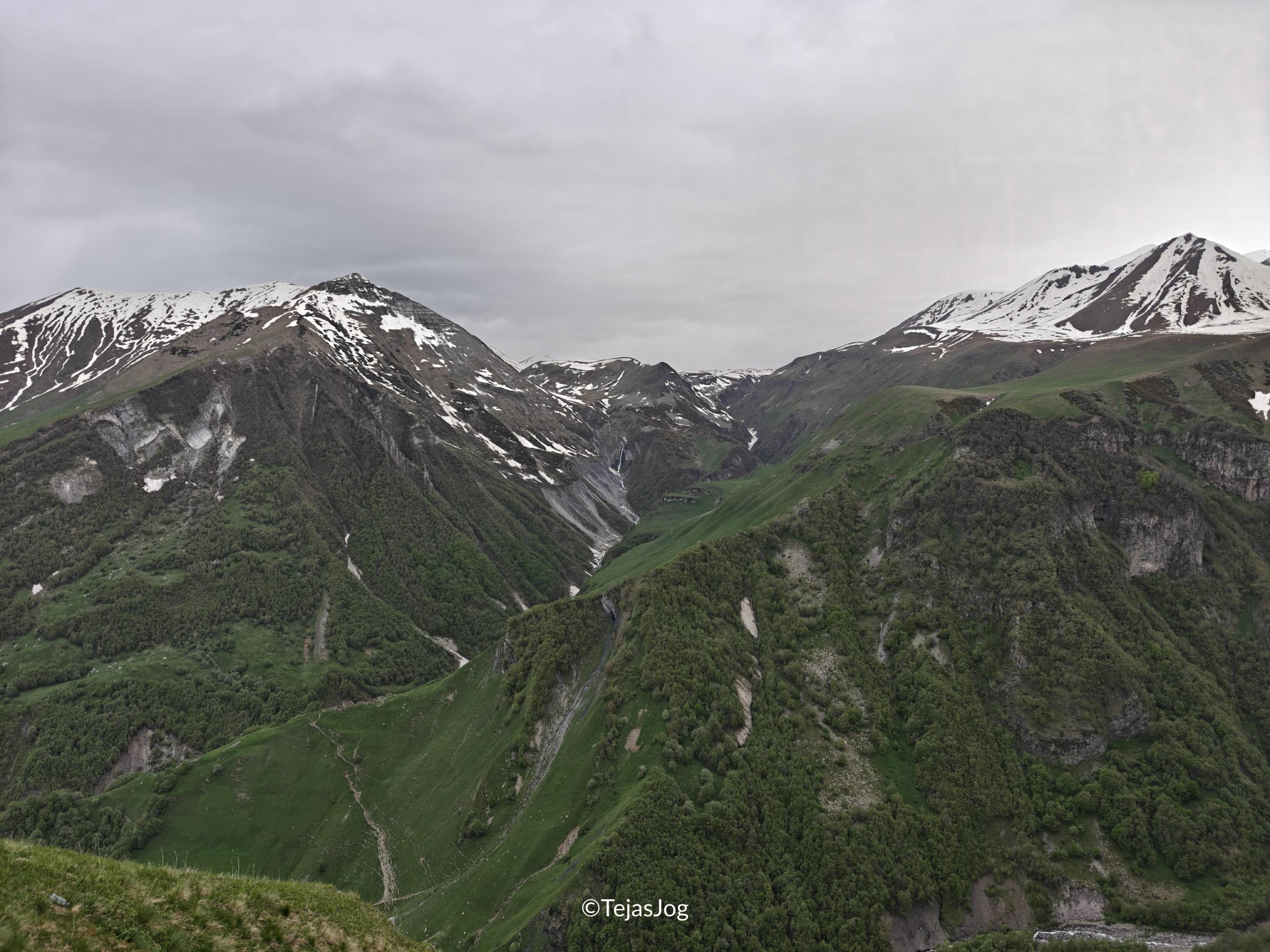 We left Kutaisi early in the morning because we had a long drive ahead of us. We fueled up the car before joining the main highway heading east. The drive was pleasant as we passed through the Georgian countryside. As we approached Mtskheta, the highway exits were tricky; after some back-and-forth, we finally joined the Georgian Military Road.