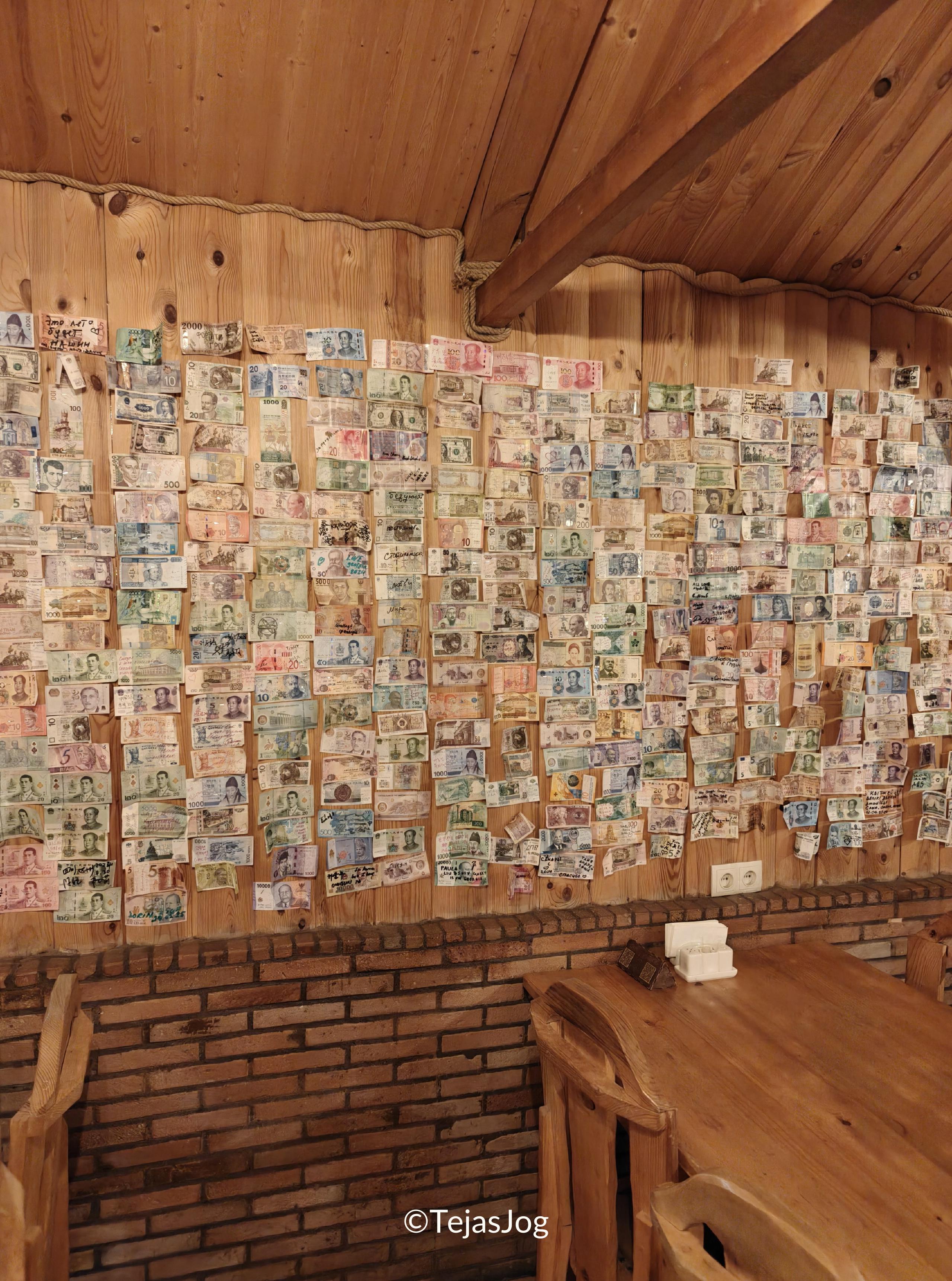 We went to Restaurant Cozy Corner, which had a nice outdoor garden with a small stream and tables on the grass. However, it was getting cold, so we chose to sit indoors. Interestingly, they had currency notes from all over the world stapled to the walls. One odd thing was that we were not allowed to consume the water bottles we had purchased at the town center earlier. This seemed quite strange to me. After dinner, we headed back to the hotel and called it a day, ready for the final day of our trip tomorrow.