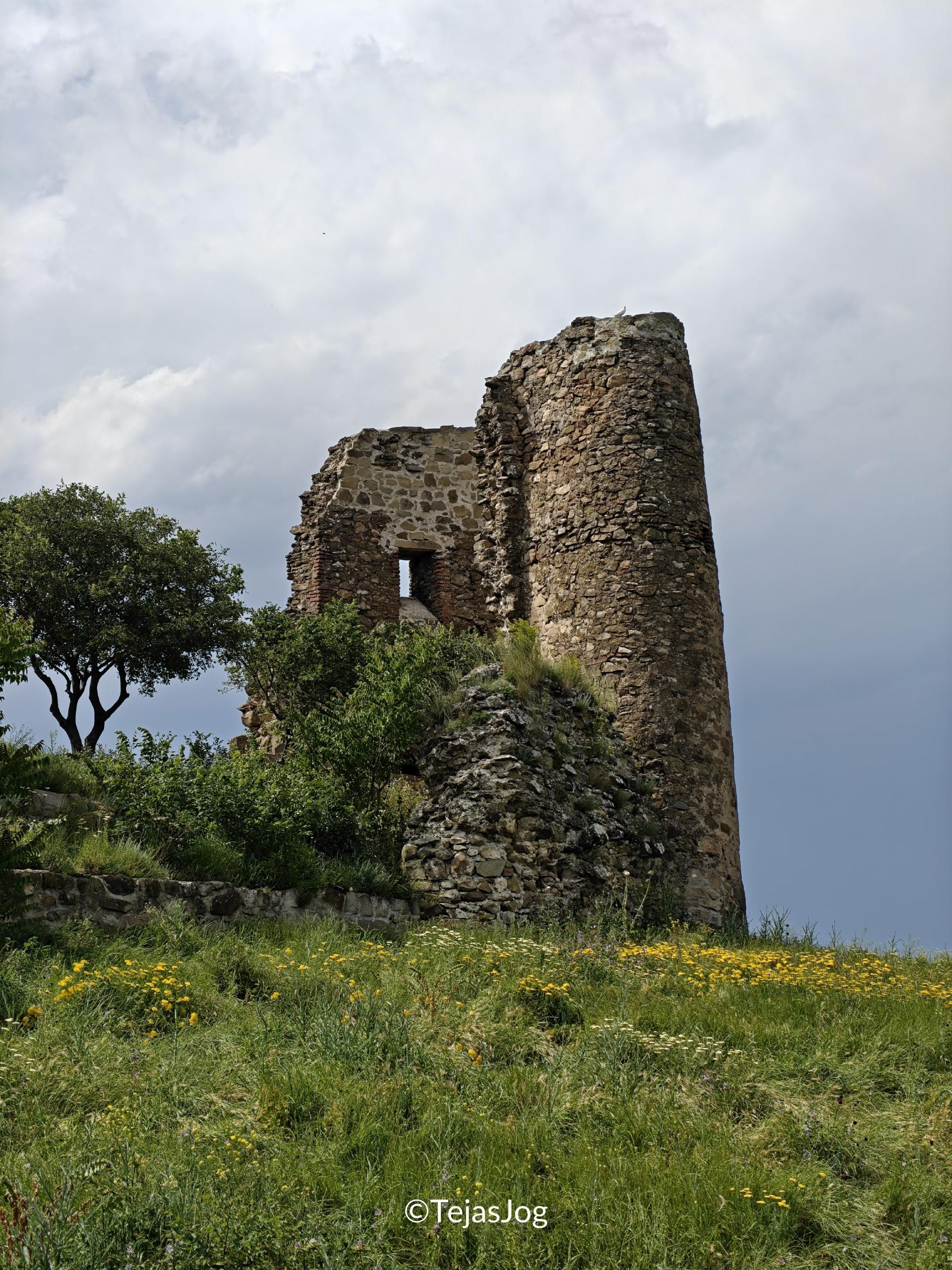 After a hearty breakfast, we left Stepantsminda and started our drive back towards Tbilisi and the airport. We passed by all the sites we had stopped to see on our way there yesterday. Our first stop today was going to be the Jvari Monastery. The road going up was flanked with trees with yellow flowers.