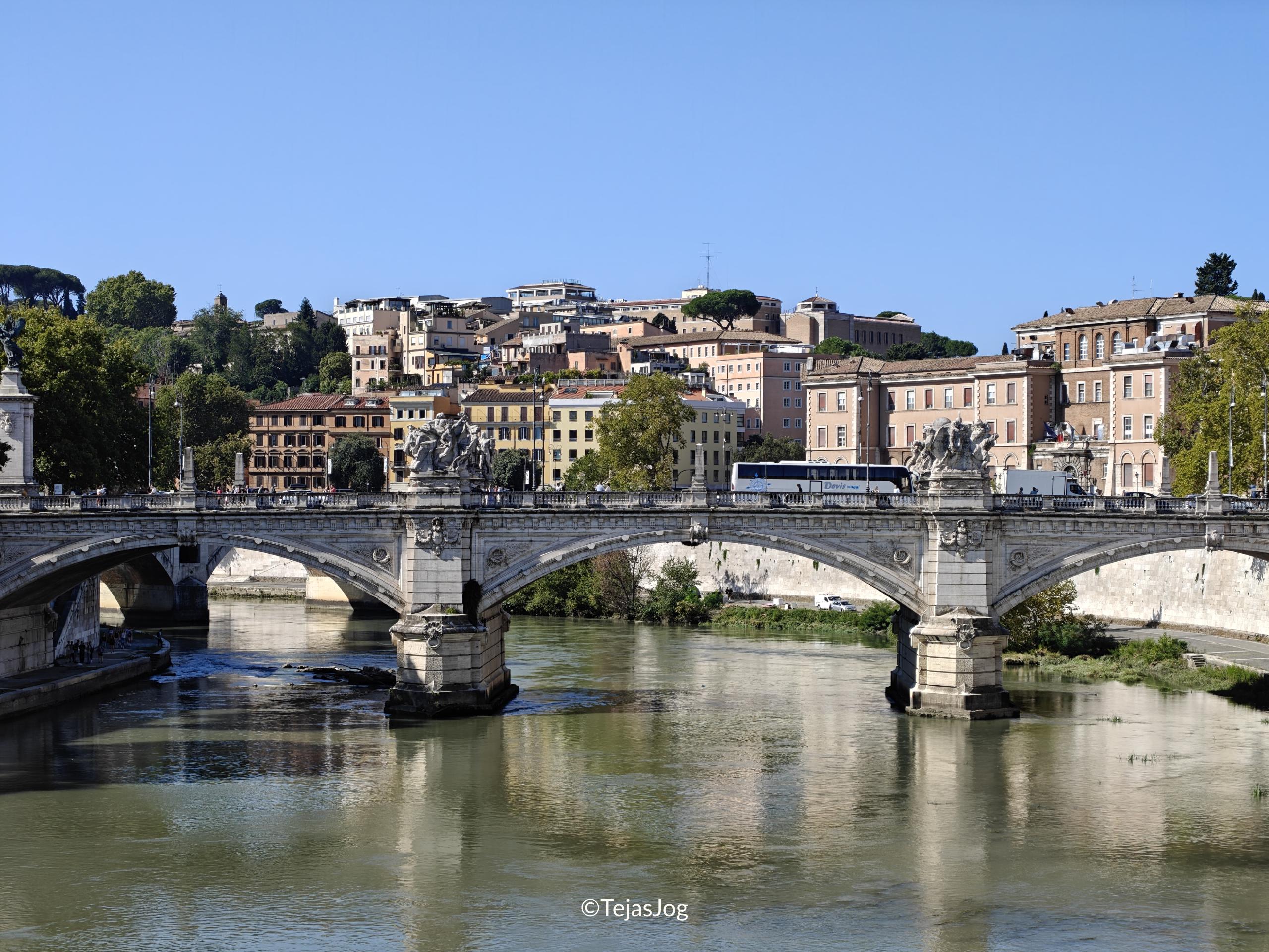 I walked along the Via della Conciliazione to see the Castel Sant’Angelo first. I saw the Ponte Vittorio Emanuele II with the Roman cityscape in the background and the St. Angelo Bridge over the Tiber River.