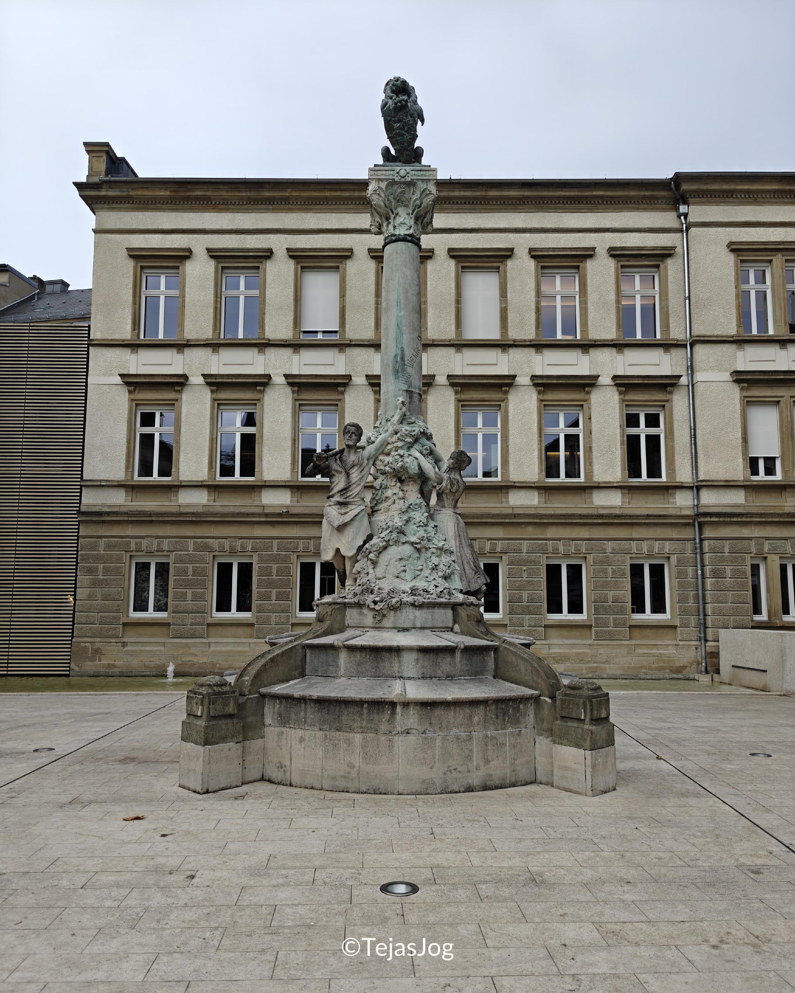 Walking to the Justice quarter, I saw Parquet du Tribunal d’arrondissement de Luxembourg and Parcare Saint-Esprit, followed by the Fontaine aux Colombes and Justice de Paix de Luxembourg.