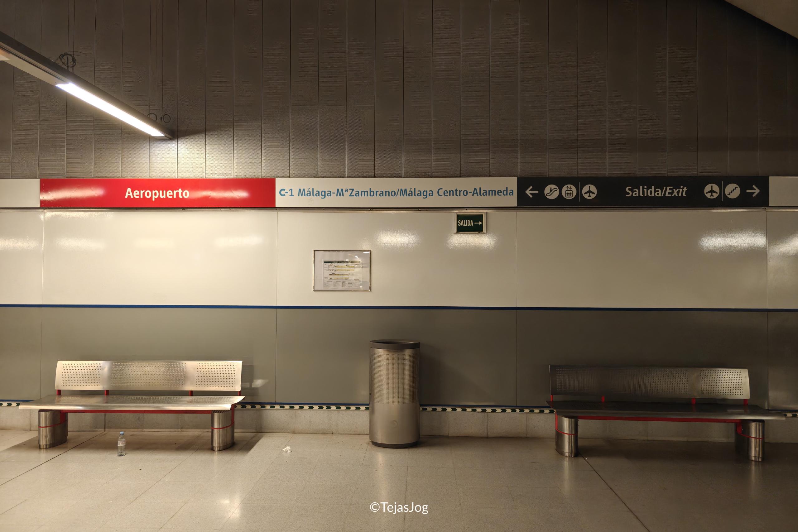I reached Malaga a little after midnight and, despite running through the airport to exit, I just missed the second-to-last train because, after multiple attempts at the ticket vending machine, I was not able to buy the ticket. Eventually, I was able to tap my credit card and pass through the turnstile, but I heard the train depart before I could reach the platform. There was only one other person there, but some more people also showed up as we waited for the last Cercanías Málaga C1 train from Málaga-Aeropuerto to the city center.