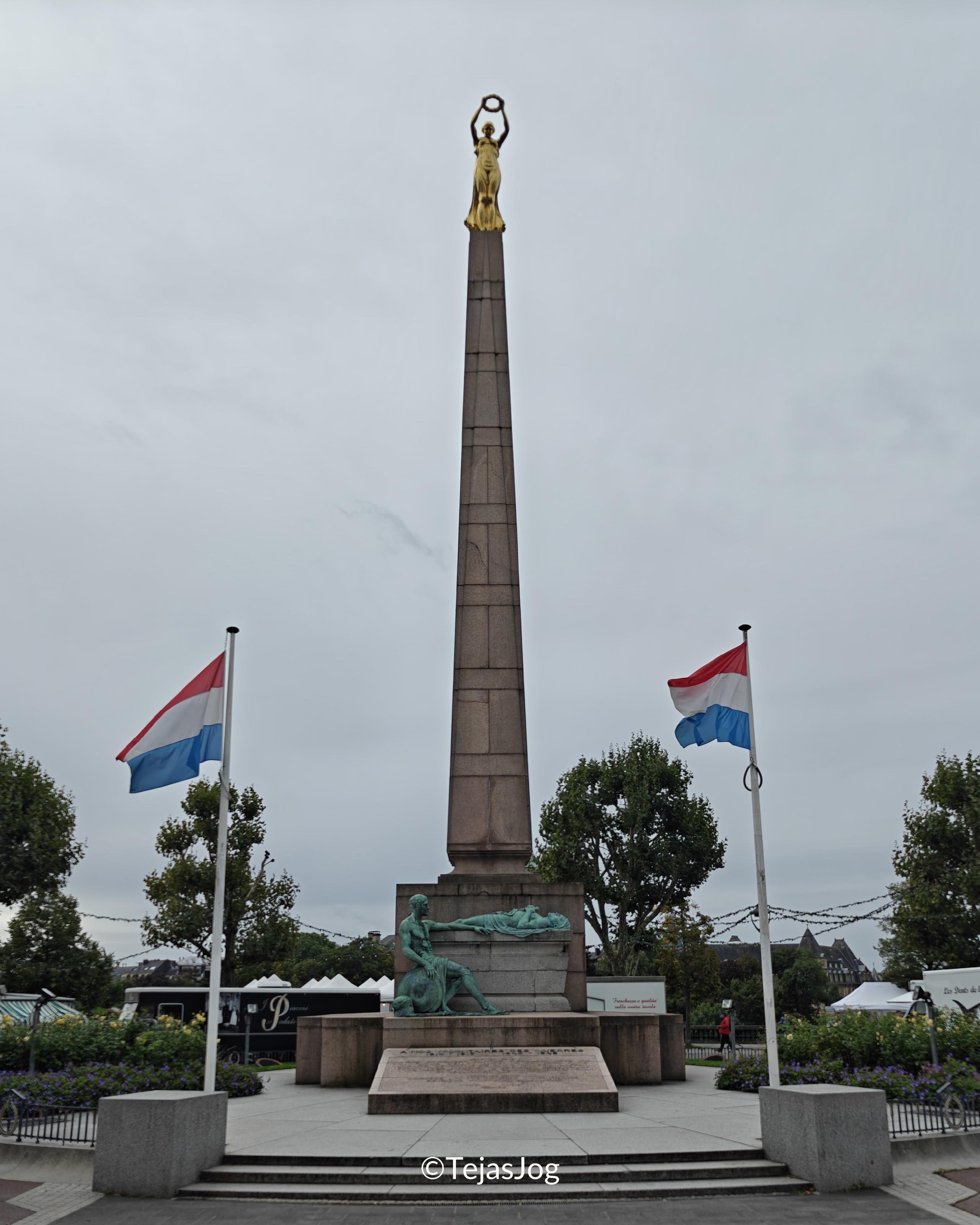 Walking further, I saw the Monument of Remembrance / Gëlle Fra. This granite obelisk and war memorial, nicknamed “Golden Lady” for its gilded statue of a woman on top, was a national monument to remember the Luxembourg war heroes who fell in the French battlefields.