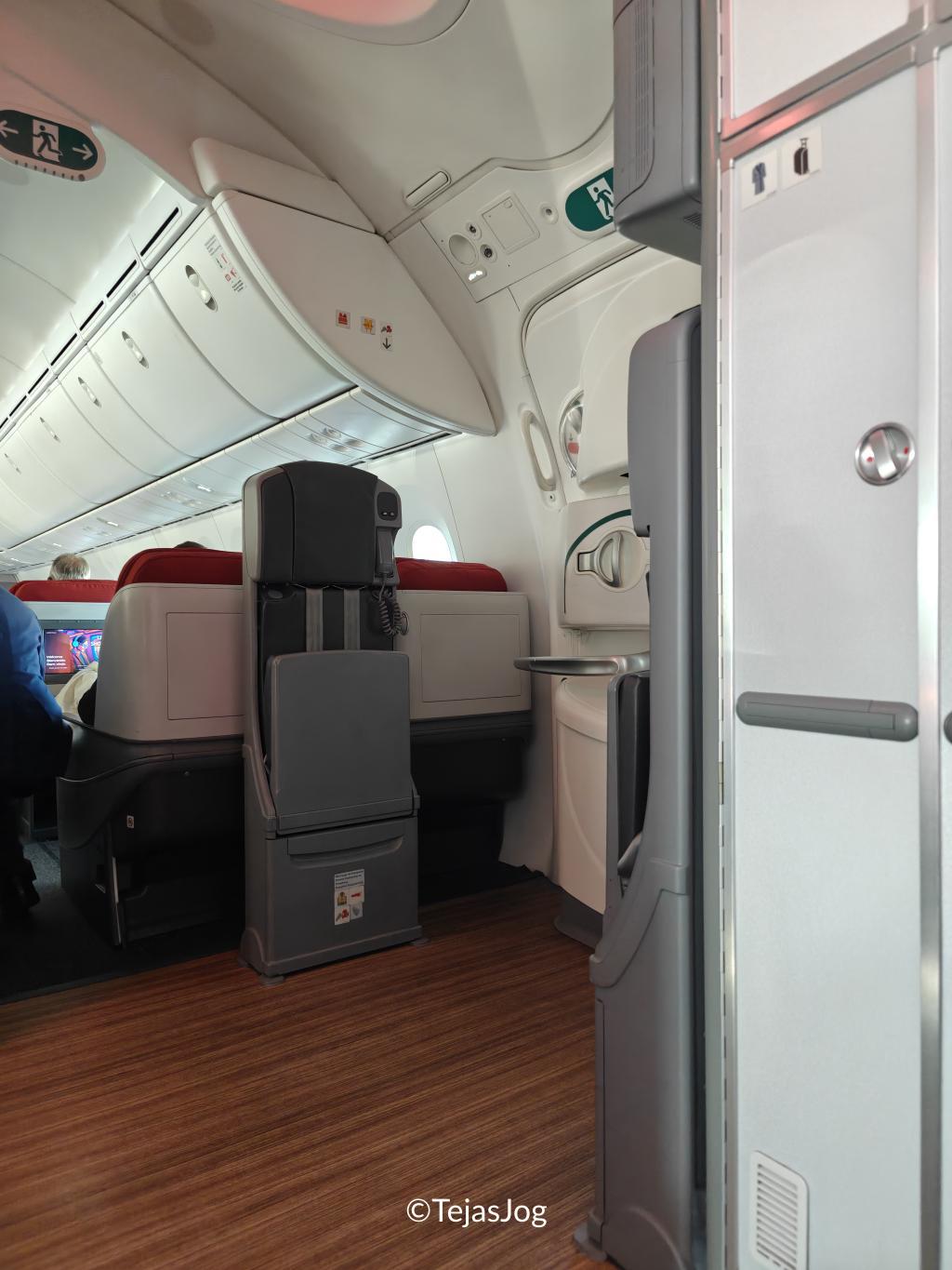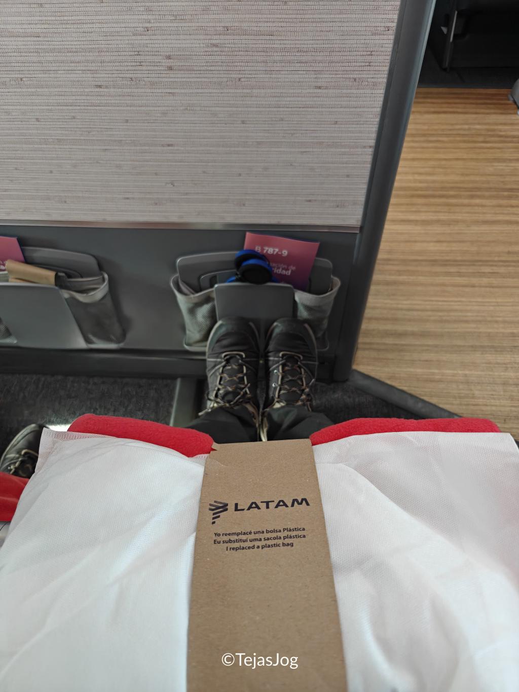 We were assigned seats in the first row of economy class just behind the bulkhead. There was ample leg room and the seats were nice. Shortly before take-off, our neighbour moved to another seat, so we had 3 seats between the 2 of us, which made it even more comfortable. LATAM seemed very spacious and posh even near the doors and boarding areas.